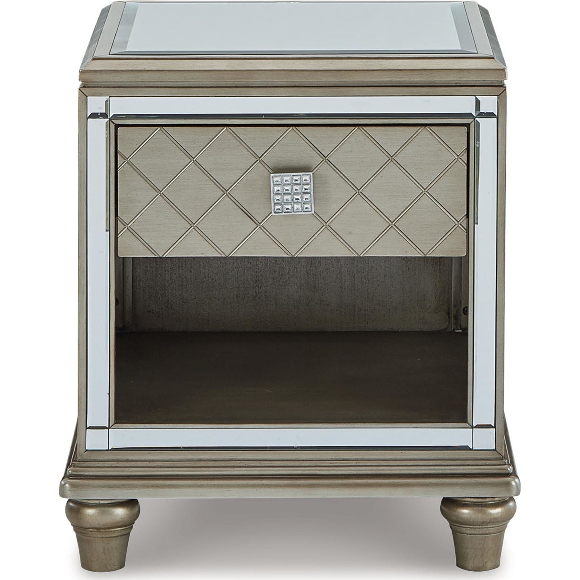 Glamour, chic et raffinée, la table d'appoint rectangulaire Chevanna arbore une finition argentée métallisée, des panneaux de miroir biseautés incrustés et des poignées de tiroir ornées de faux cristaux. Quel que soit votre style, cette table apportera une touche d'élégance à votre décoration contemporaine.