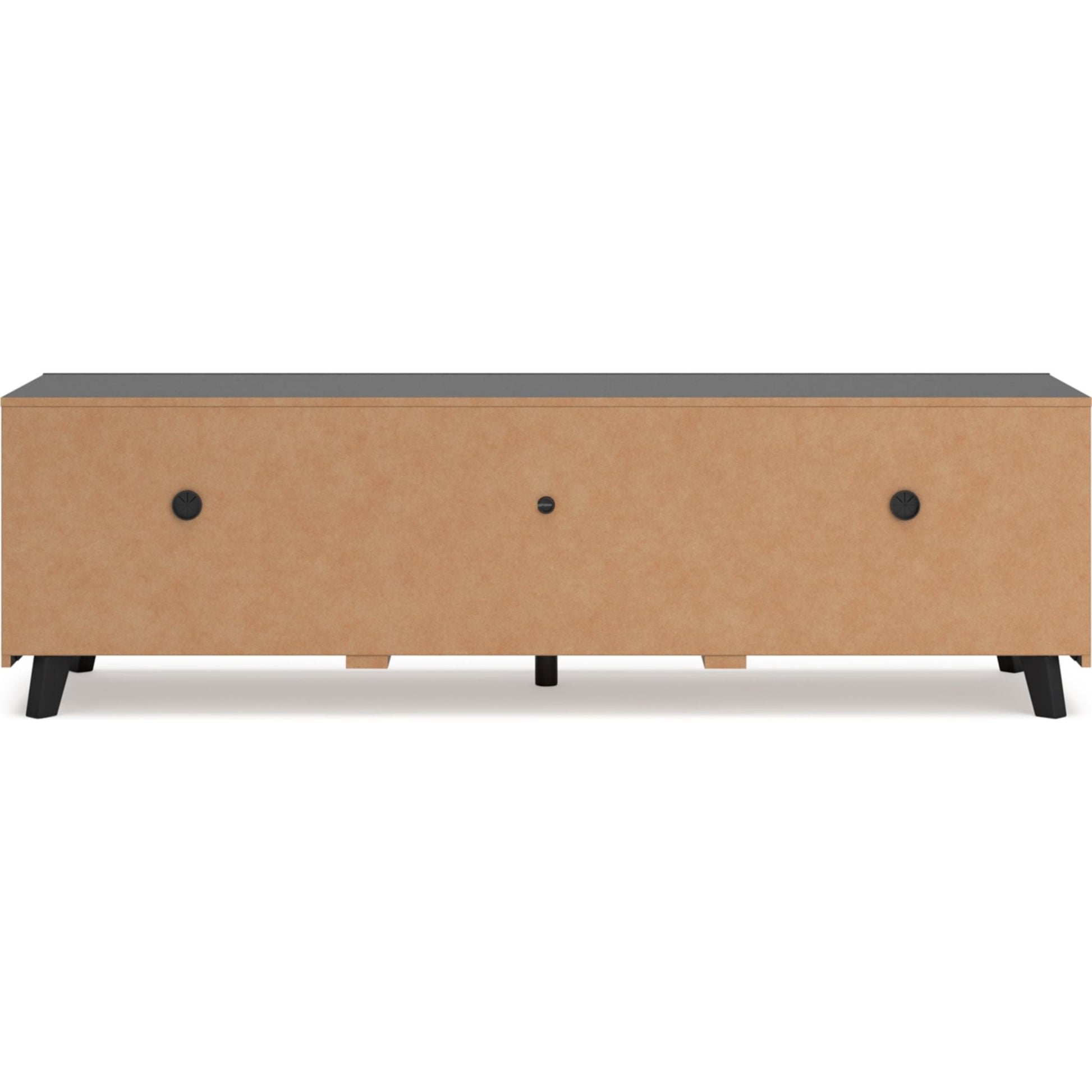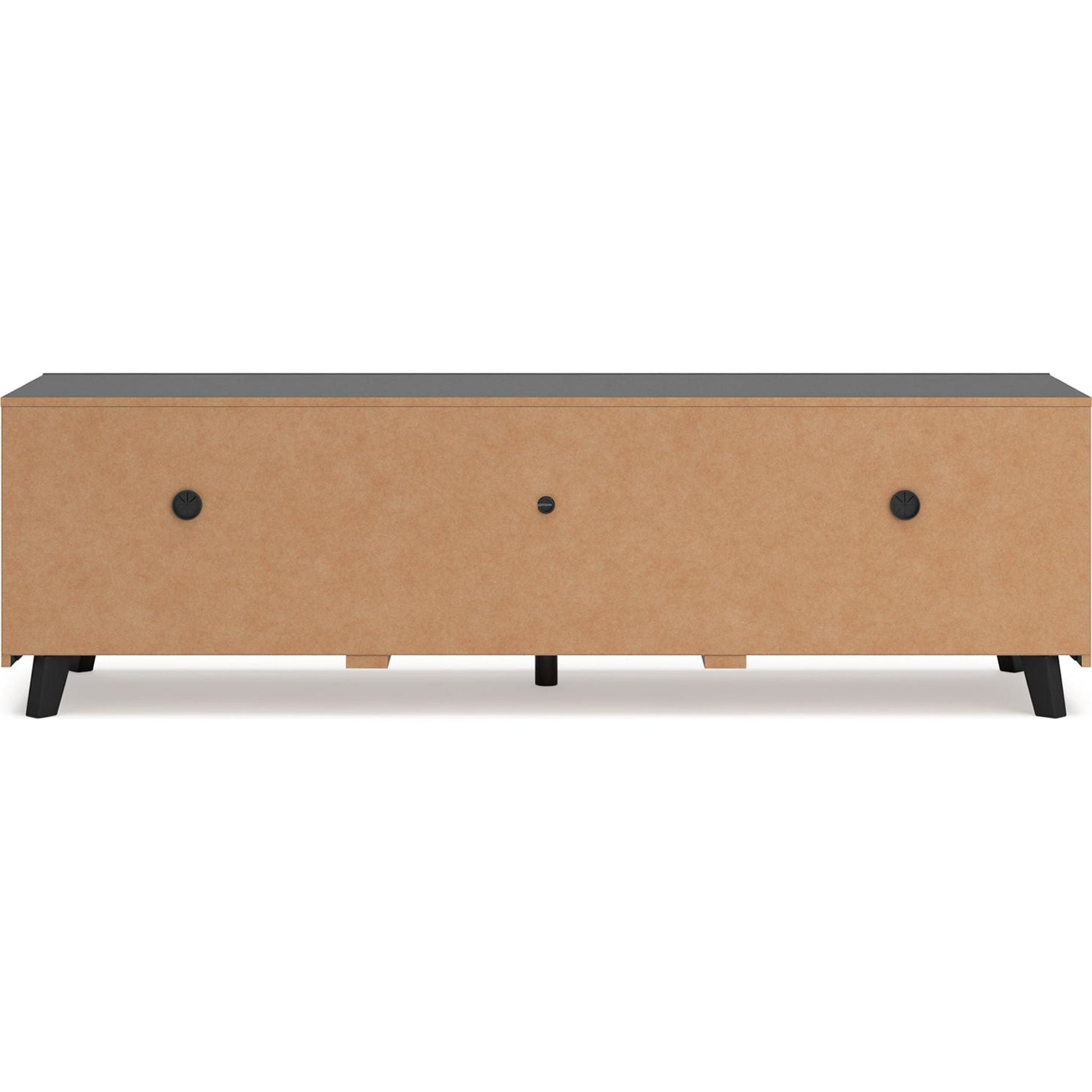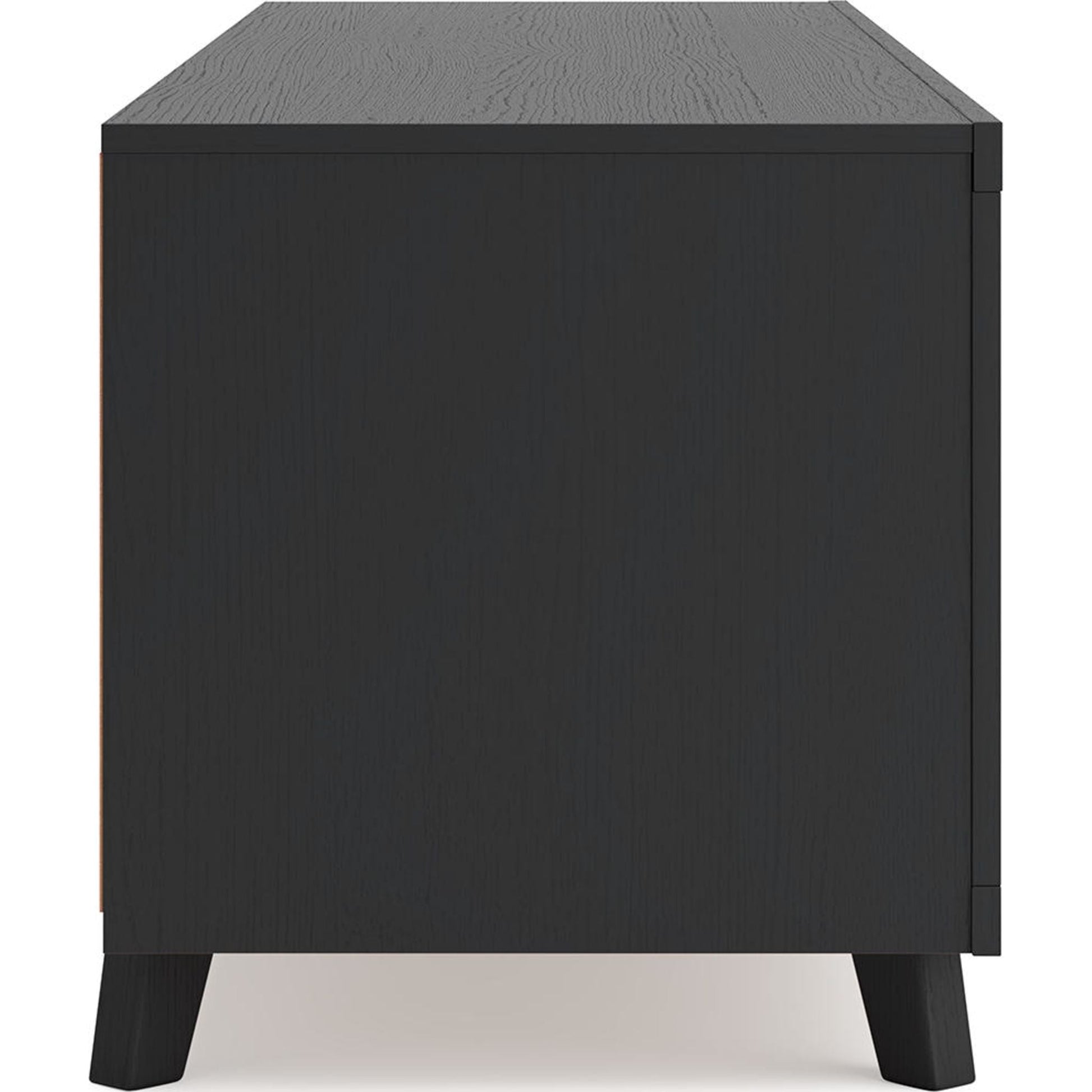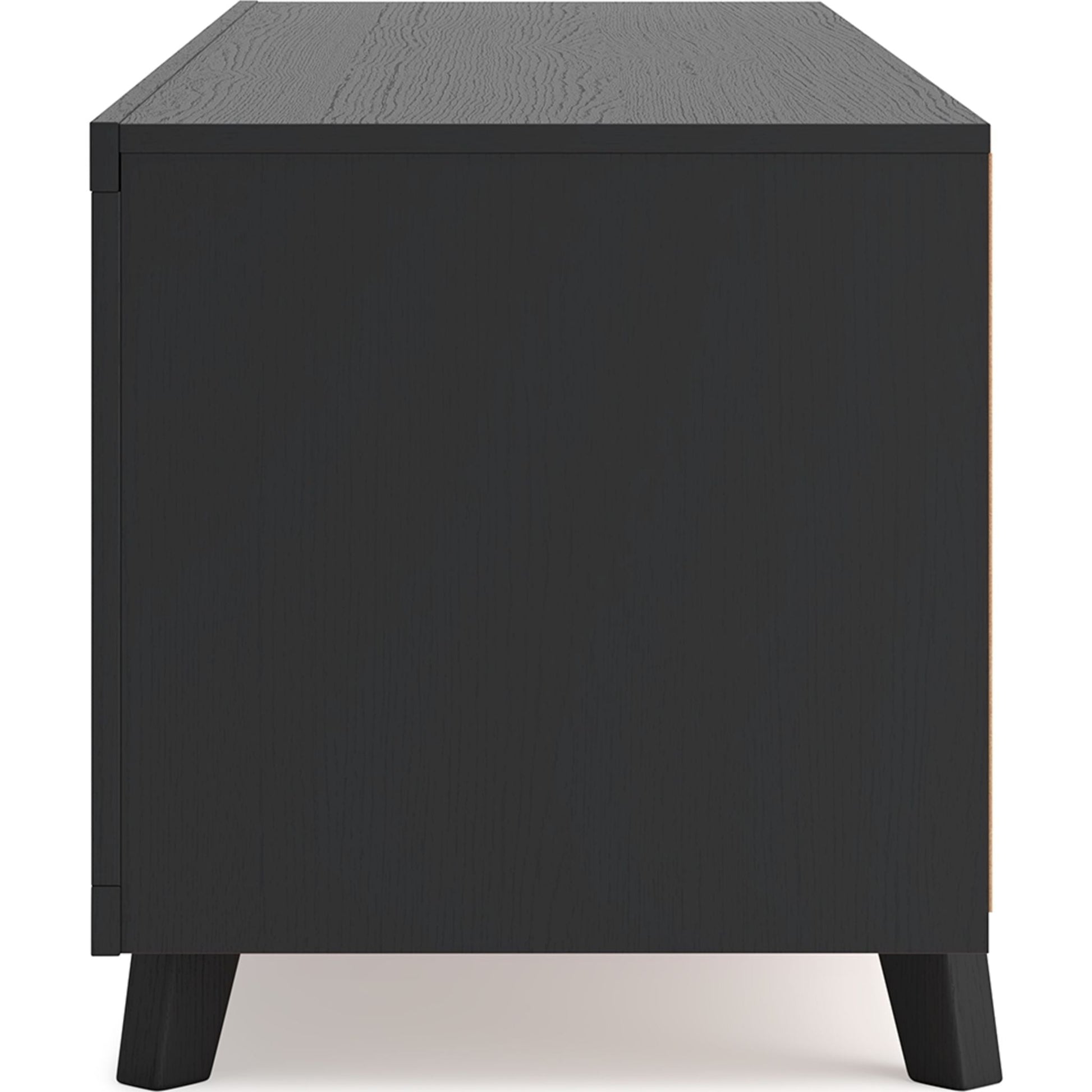 Sublimez votre intérieur avec le meuble TV Danziar. Son subtil veinage de bois et sa finition noire mate tendance s'harmonisent parfaitement avec un design épuré. Deux portes coulissantes dissimulent des étagères réglables supplémentaires, idéales pour ranger vos consoles, DVD et jeux vidéo.