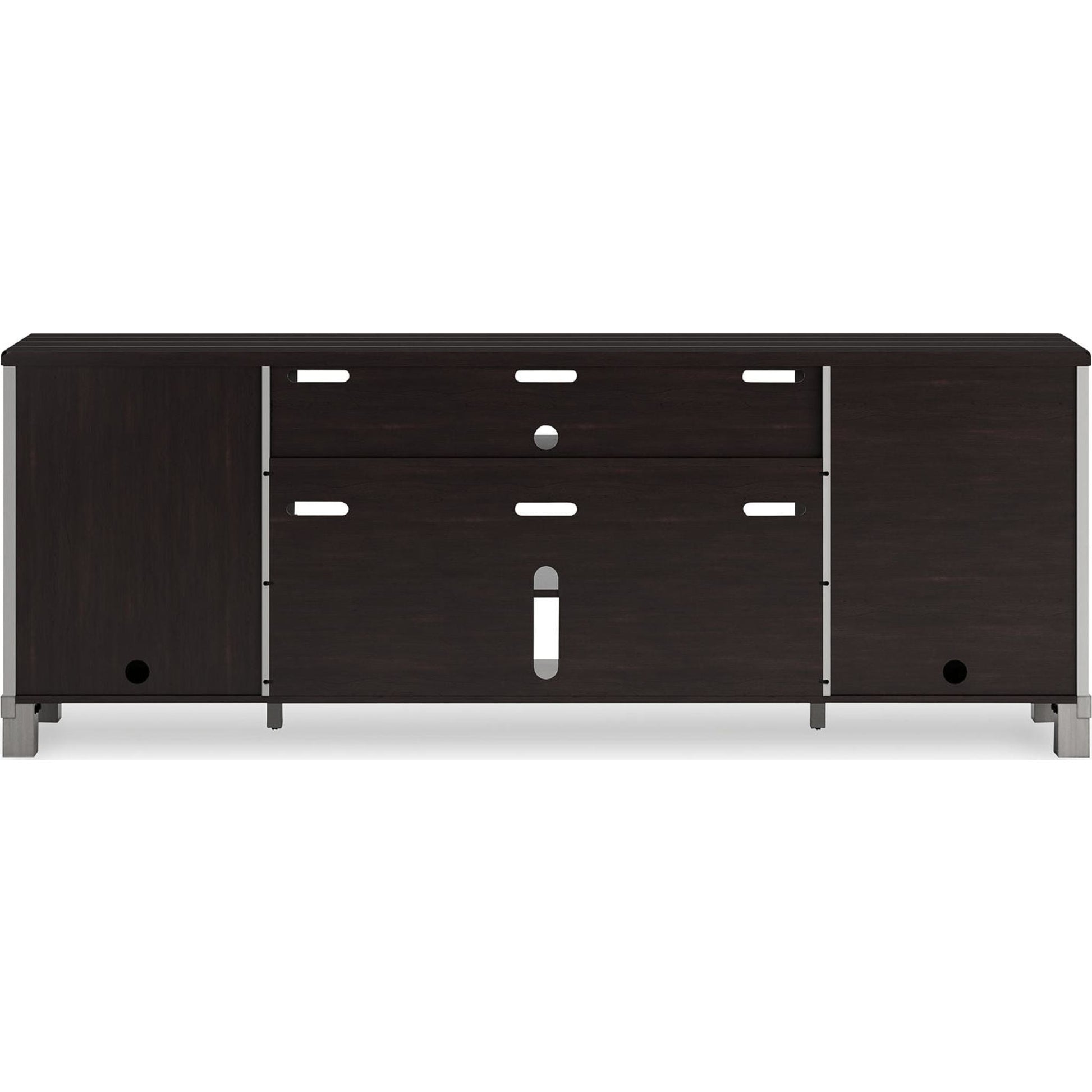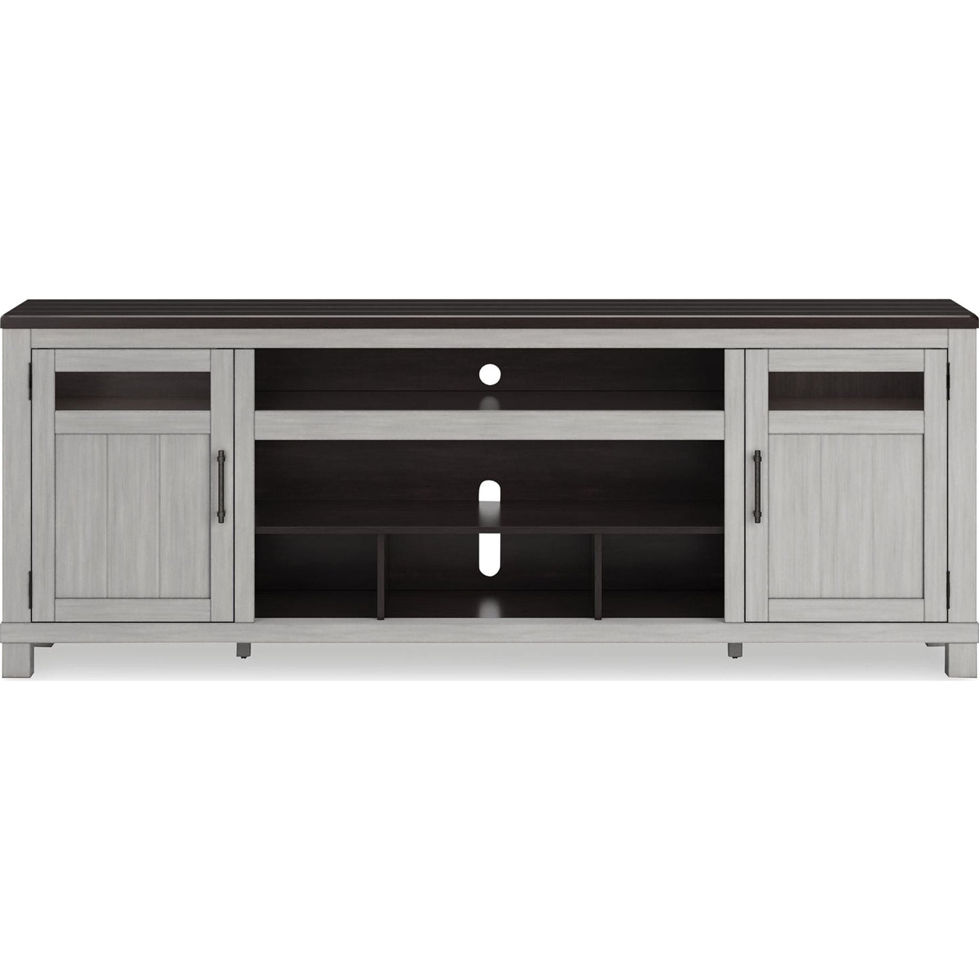 Créez une ambiance champêtre avec le meuble TV Darborn. Conçu pour durer, il arbore un effet planches et une finition bicolore épurée qui lui confèrent un charme vintage apaisant. Doté de deux placards (chacun avec une étagère réglable) et d'une niche ouverte, il offre un espace de rangement généreux pour tous vos appareils électroniques. Pour une expérience encore plus chaleureuse, l'insert de cheminée optionnel (vendu séparément) apporte une touche d'élégance à votre salon.