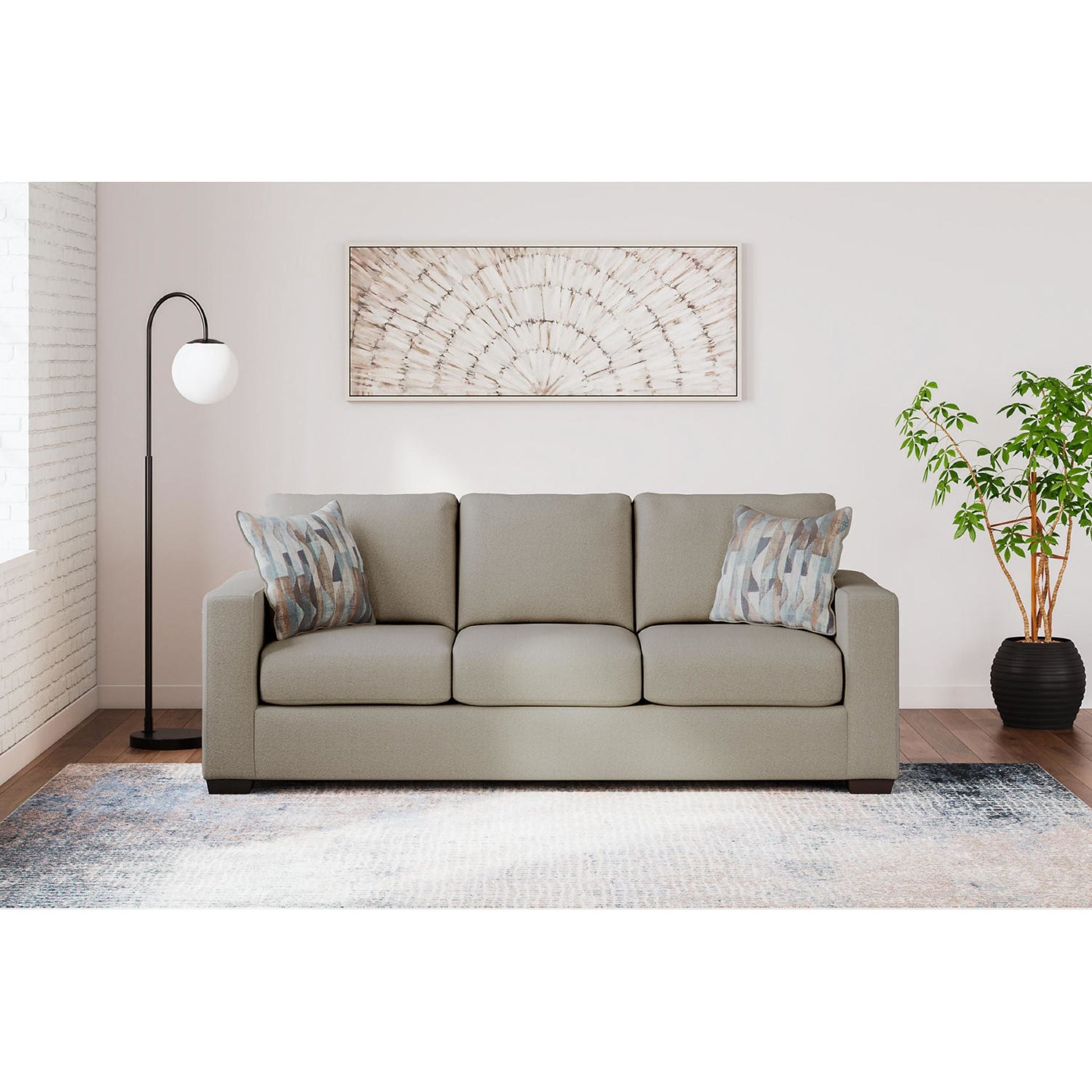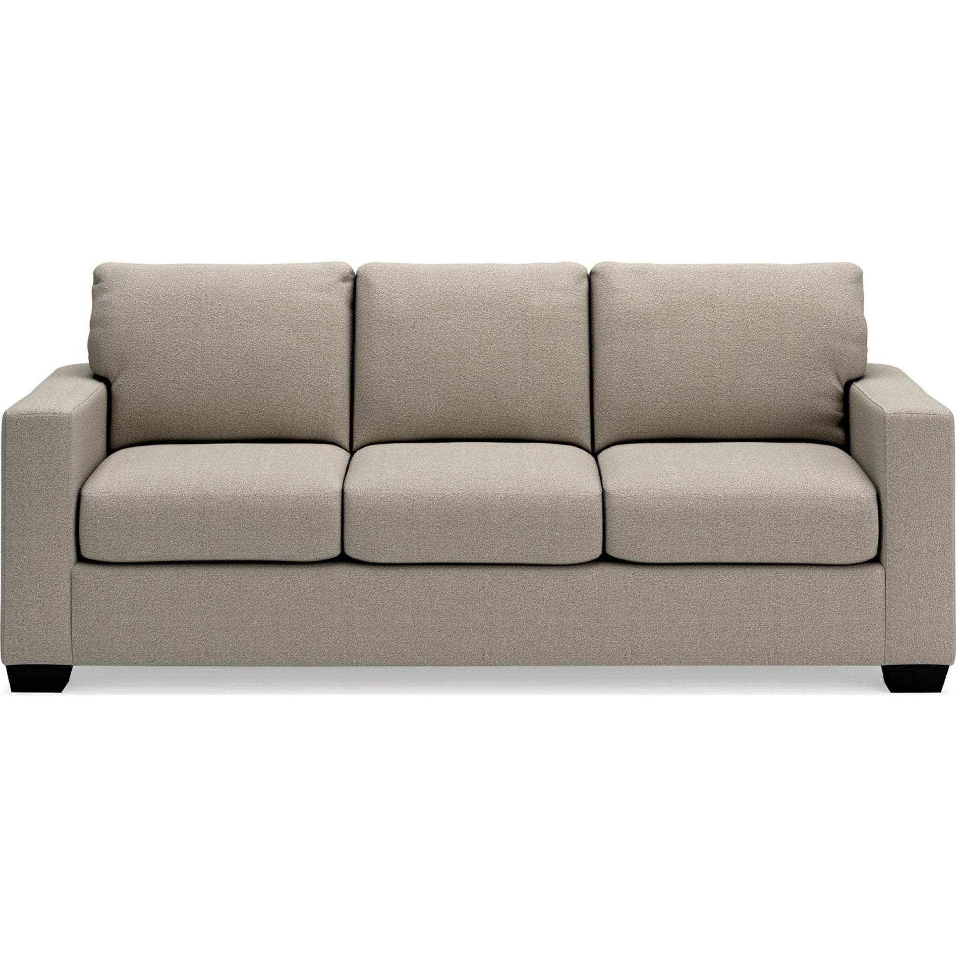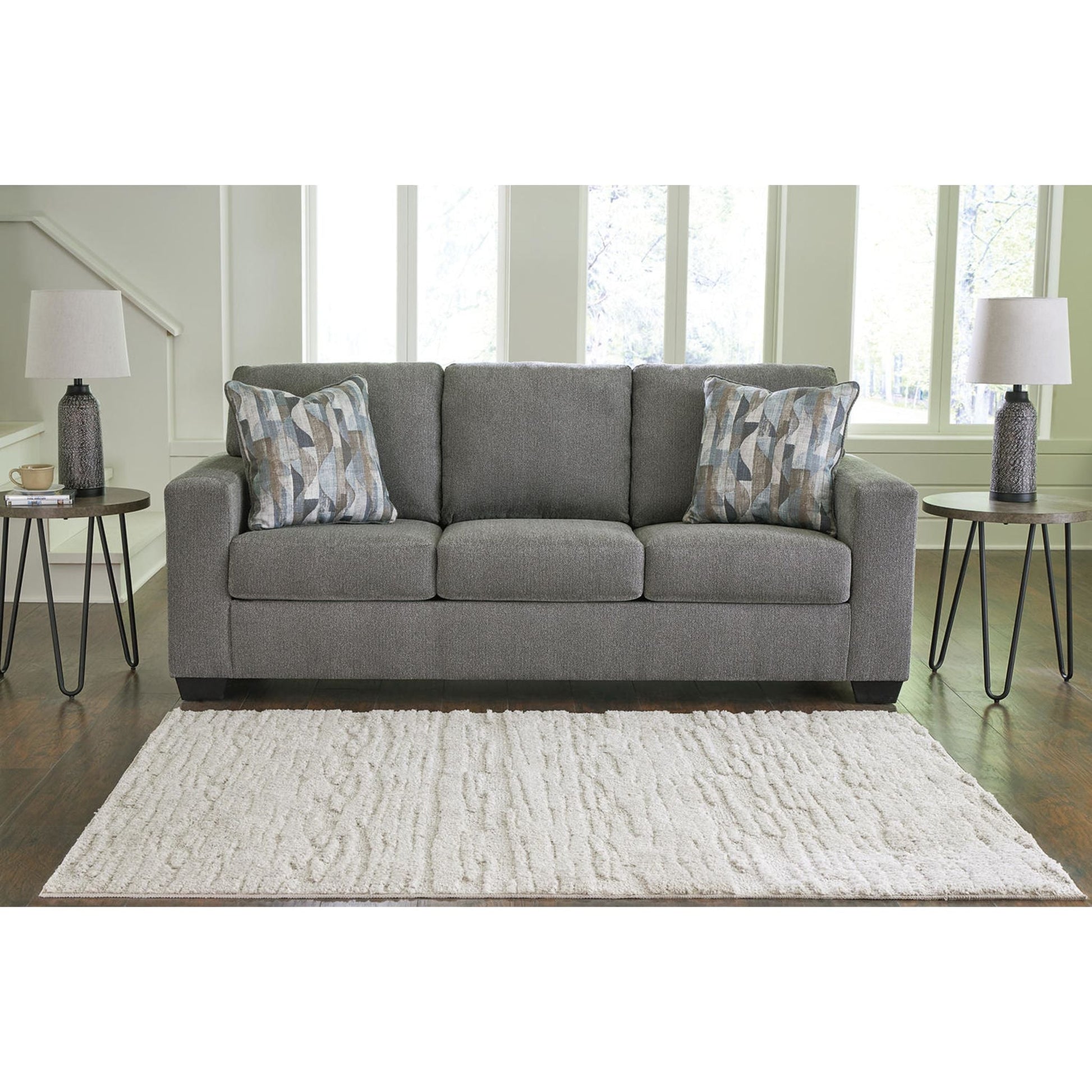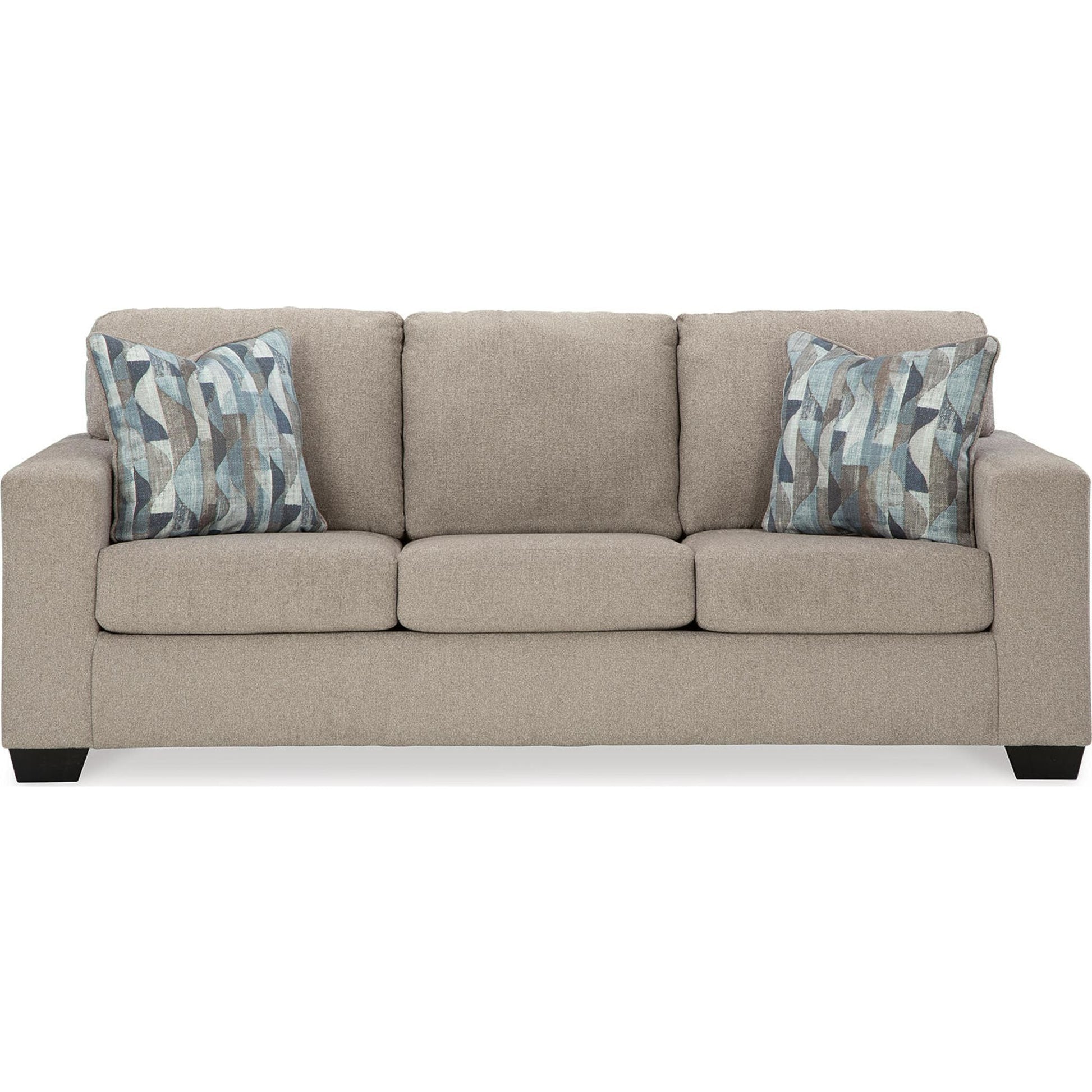 Le canapé Deltona vous réserve une belle surprise. Ses assises confortables sont revêtues d'un tissu doux et texturé, et ses larges accoudoirs vous invitent à la détente absolue. Des coussins décoratifs abstraits à l'aspect vieilli apportent une touche de modernité tout en rehaussant la couleur du canapé.