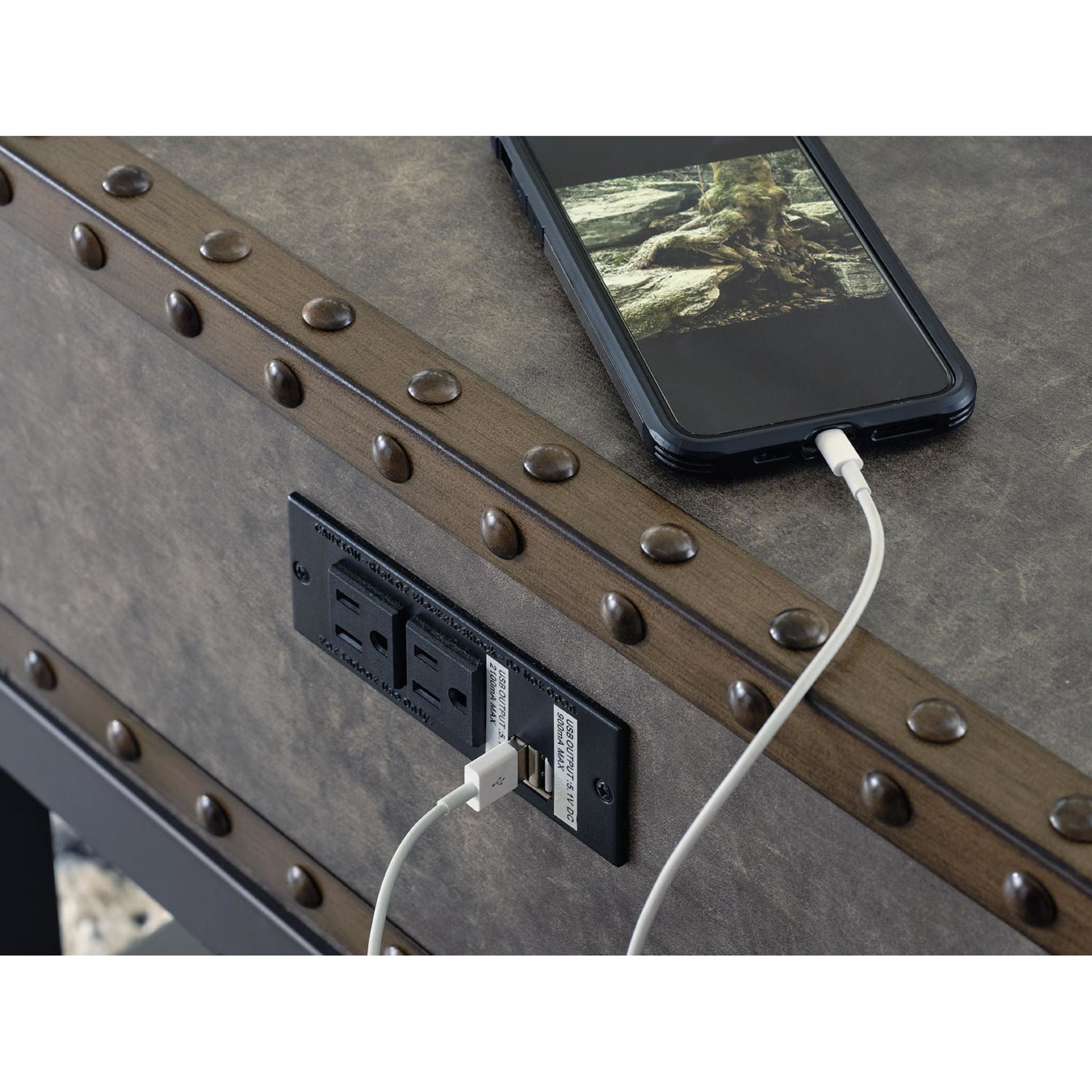 Réinventée pour notre époque, la table d'appoint Derrylin allie un design industriel vintage à une touche traditionnelle. Ses finitions métalliques et son piètement en métal couleur bronze sont parfaitement adaptés aux exigences du quotidien. Une étagère inférieure et un tiroir entièrement fini offrent un espace de rangement généreux, tandis que la prise intégrée avec double port USB permet de recharger vos appareils en toute tranquillité.