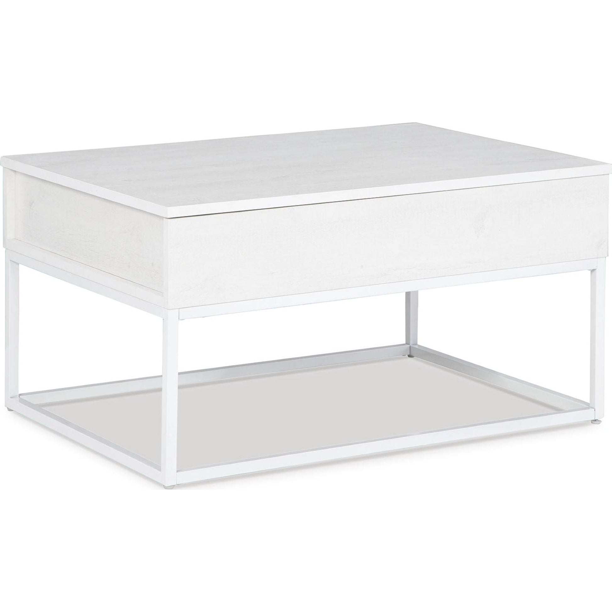 Donnez vie à votre vision d'un salon moderne avec la table basse relevable Deznee au design épuré. Sa structure linéaire et sa finition blanche lui confèrent une allure minimaliste. Le plateau relevable vous permet de garder votre café du matin, votre ordinateur portable ou votre livre préféré à portée de main, avec un style sobre et élégant. Deux petits compartiments de rangement sous le plateau complètent ce meuble polyvalent et remarquable.