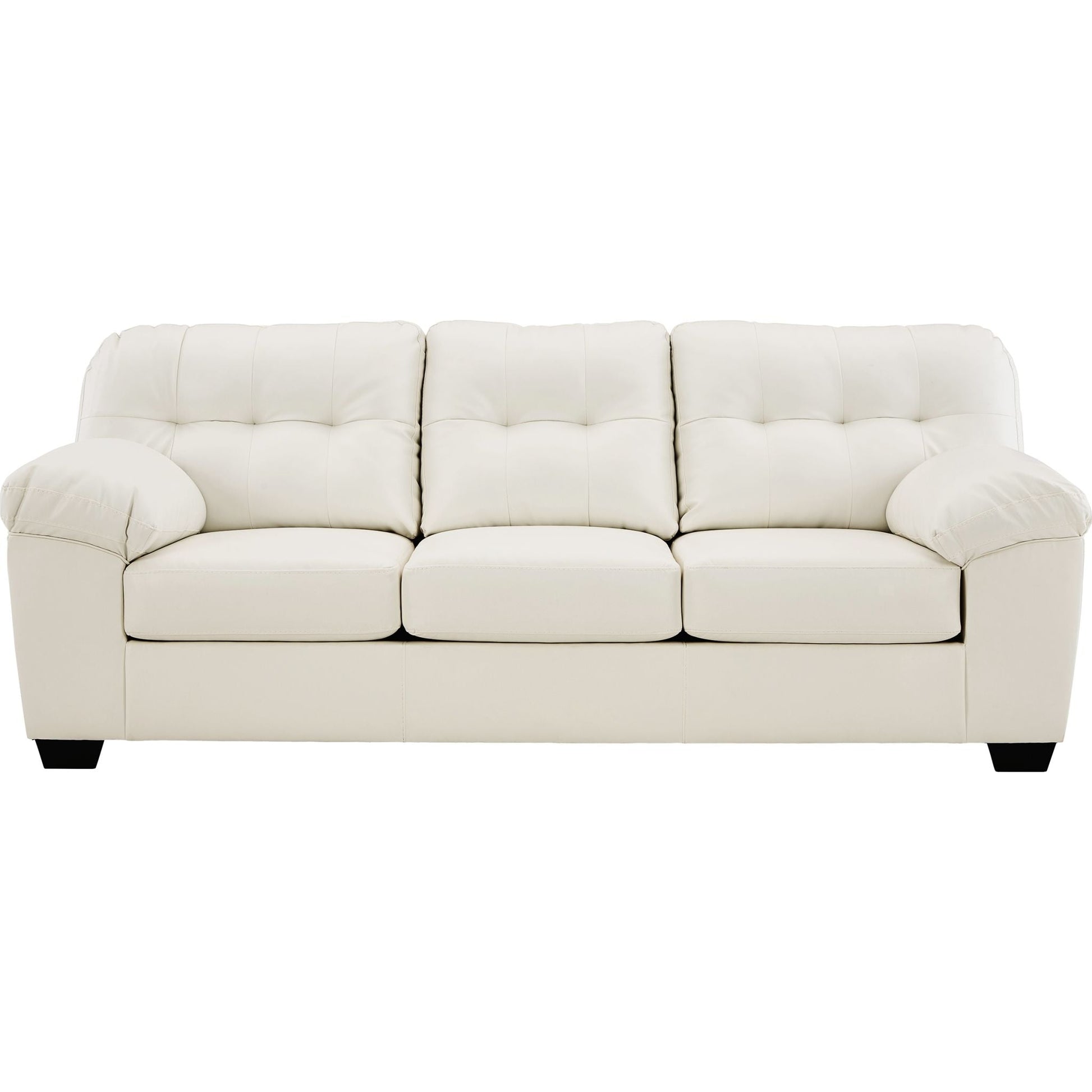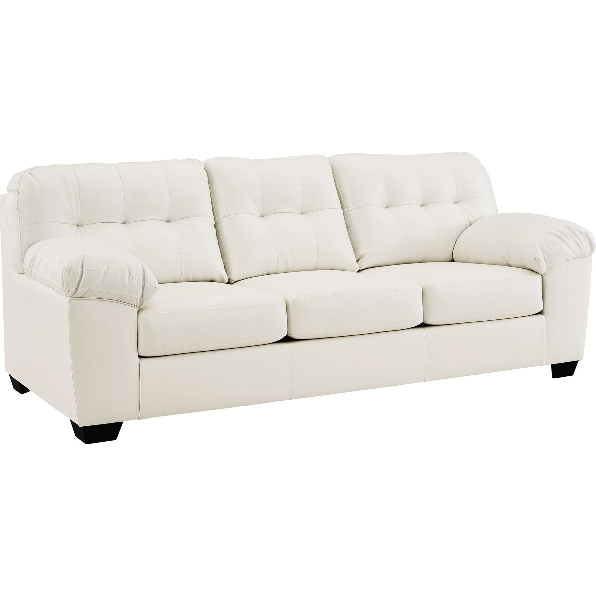 Revêtu d'un magnifique similicuir blanc, le canapé Donlen ne manquera pas d'attirer tous les regards. Avec son capitonnage raffiné, ses accoudoirs rembourrés et son design fuselé et élégant, il allie style et confort. Ses dimensions généreuses et sa fonction inclinable vous permettront de vous détendre pleinement, seul ou entre amis.