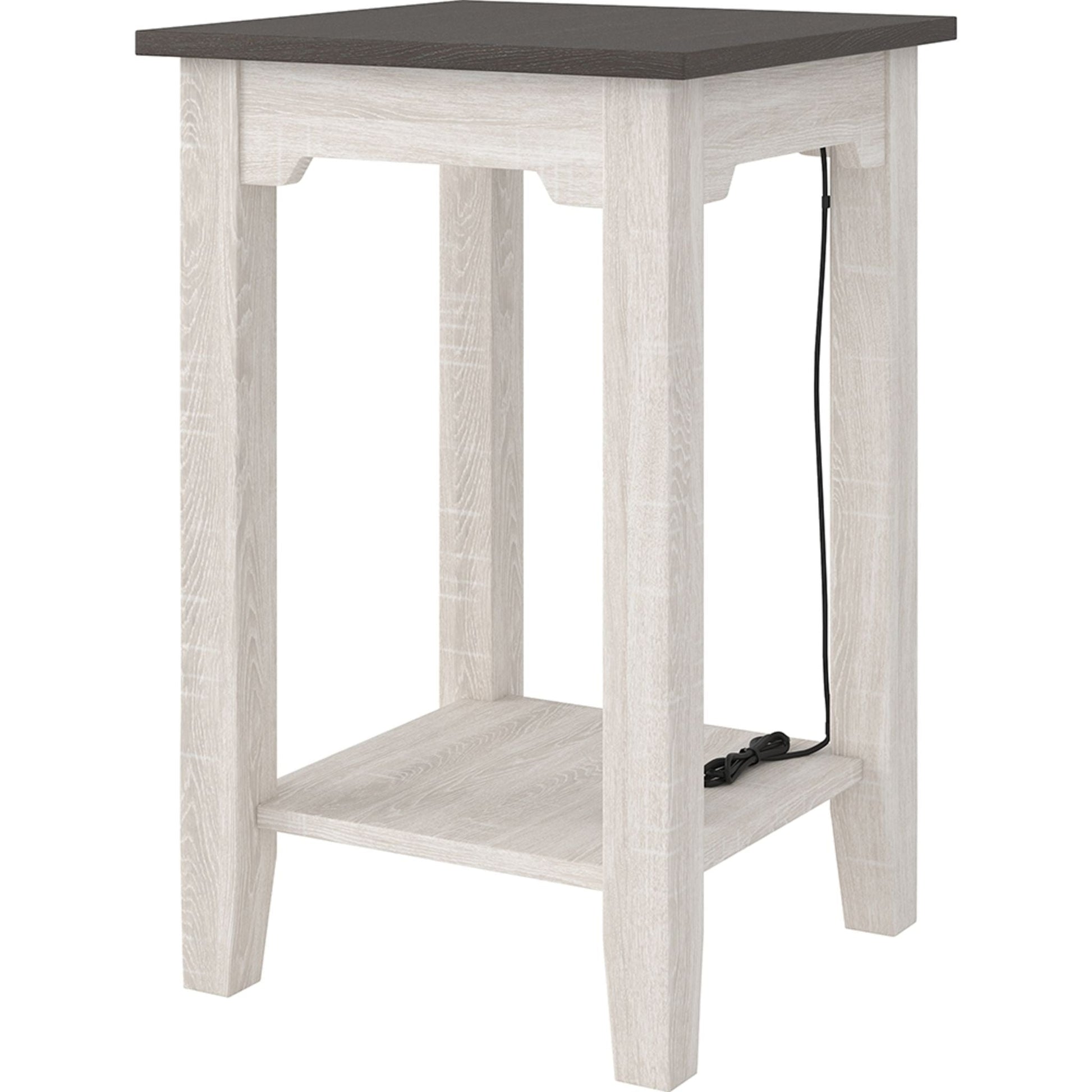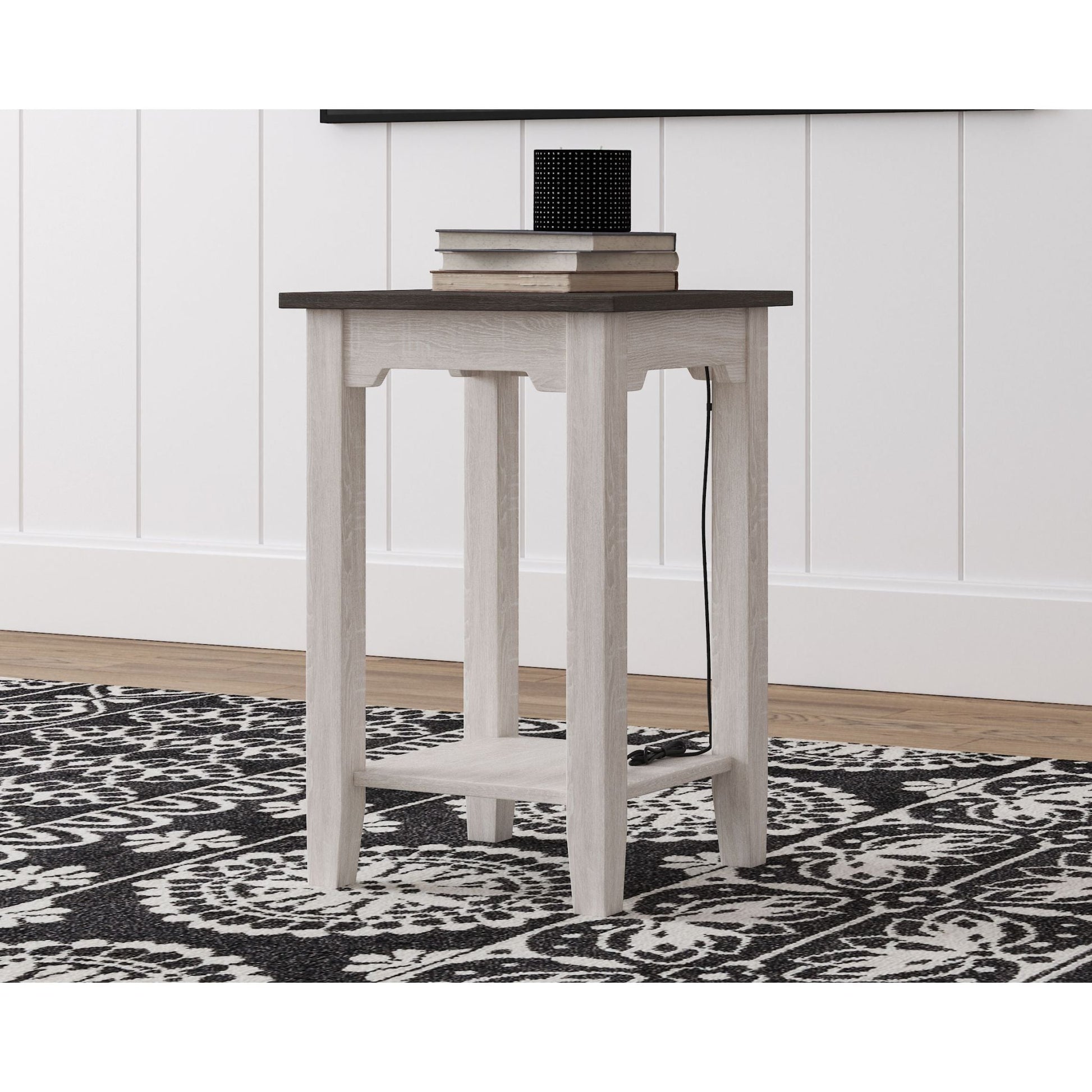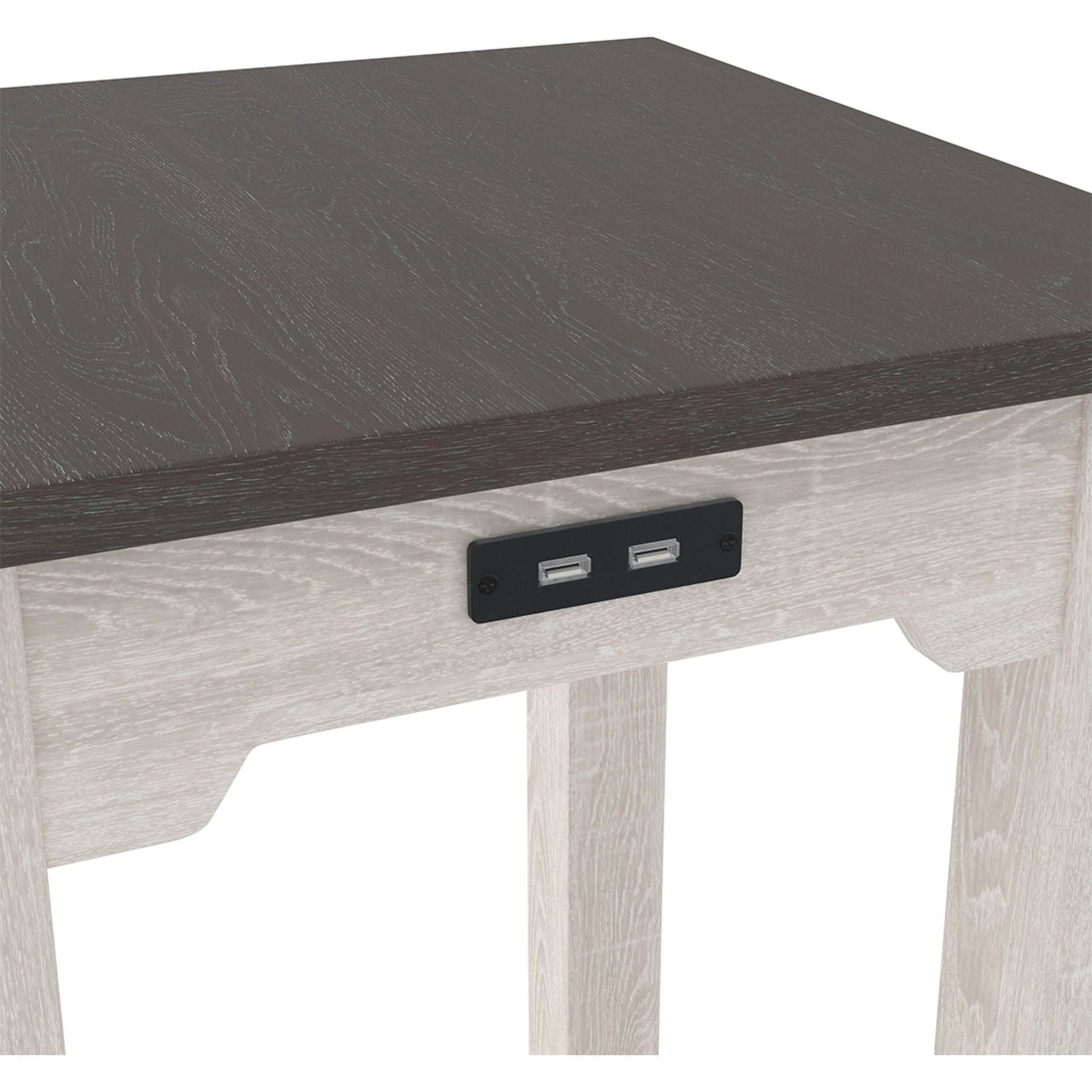 Rehaussez le style ferme moderne avec la table d'appoint Dorrinson. Son coloris bicolore gris et blanc vieilli lui confère une allure remarquable, quel que soit l'endroit où elle se trouve. Dotée de deux ports de chargement USB, cette pièce indispensable pour la maison offre une multitude de possibilités.