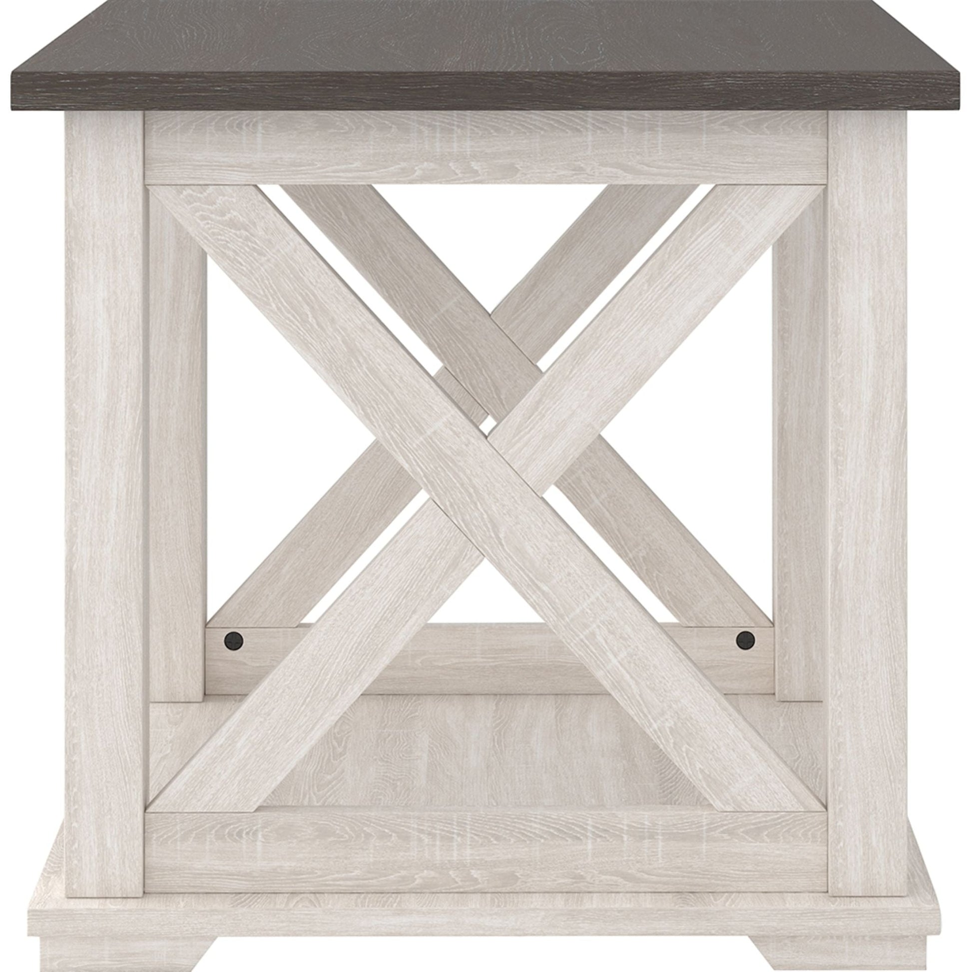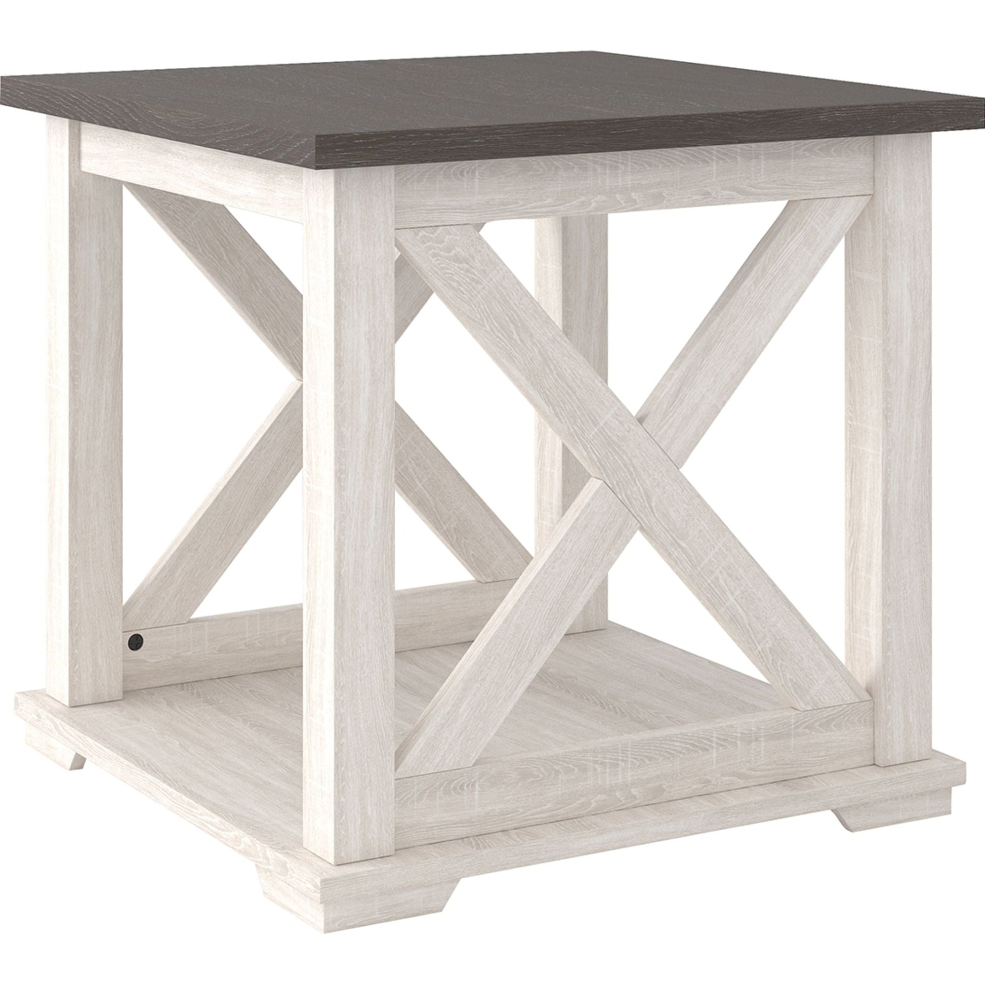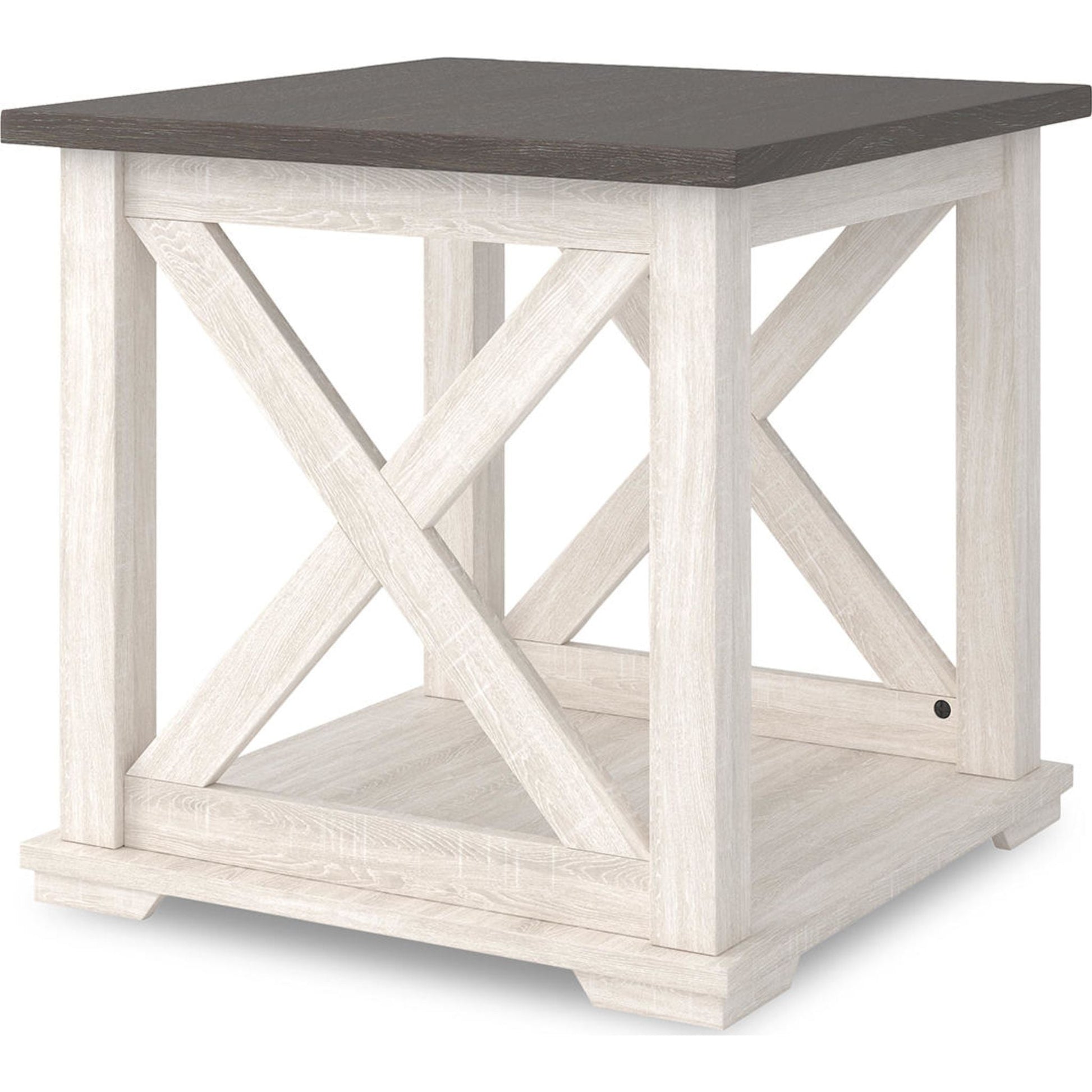 Rehaussez le style ferme moderne avec la table d'appoint Dorrinson. Arborant une palette bicolore de gris et de blanc vieilli et un design à croisillons, cette table affirme son caractère où qu'elle se trouve. Grâce à ses étagères généreuses, ce meuble indispensable offre une multitude de possibilités.