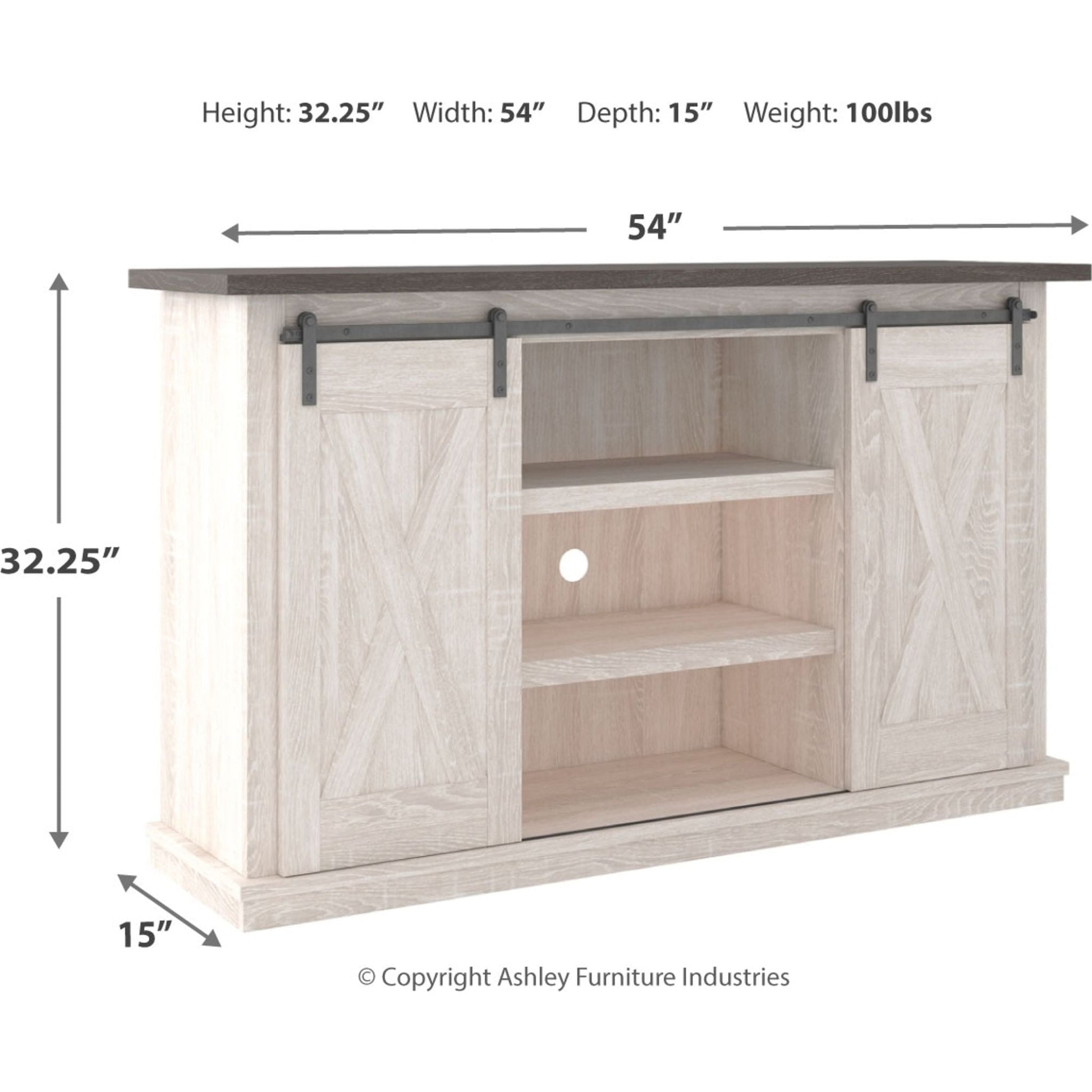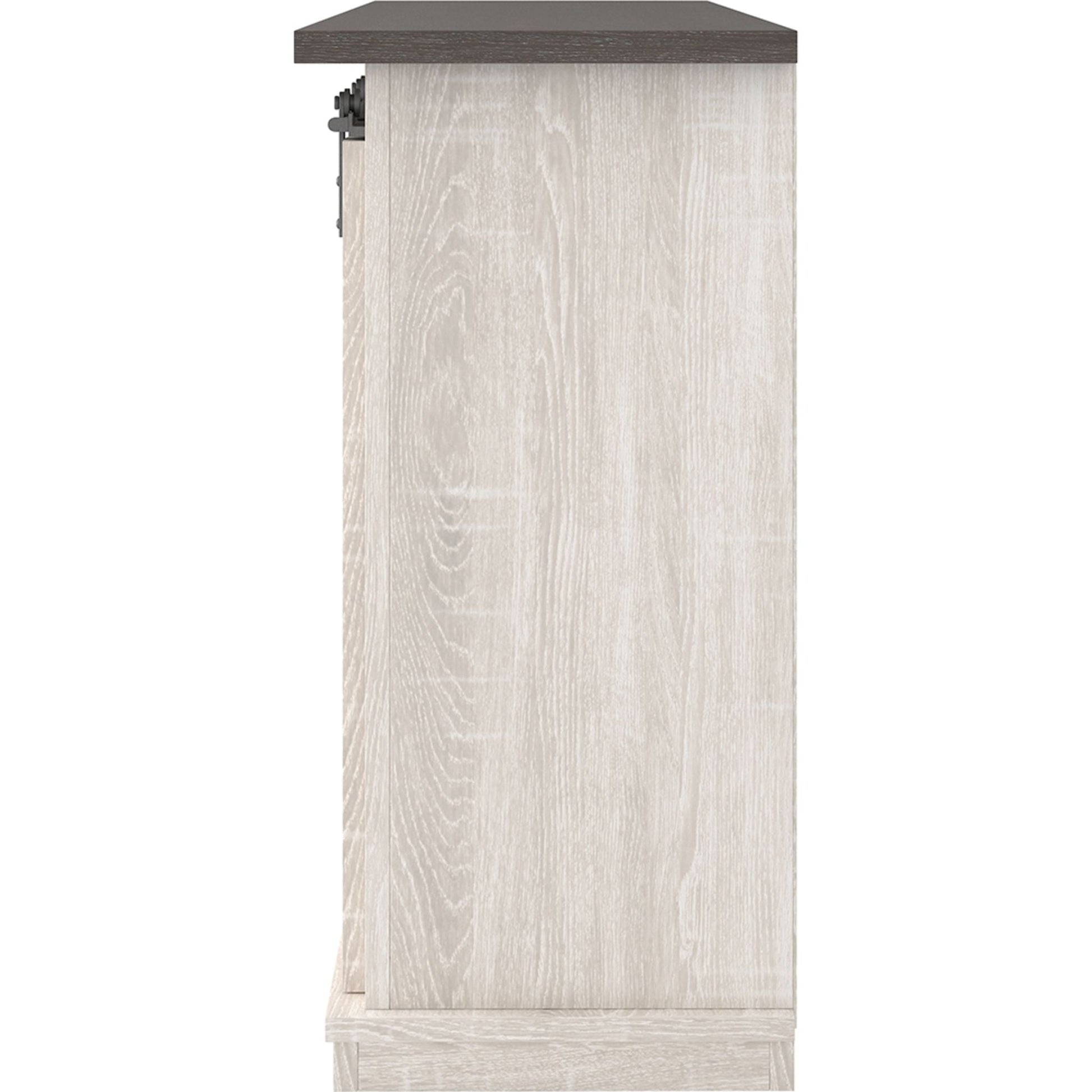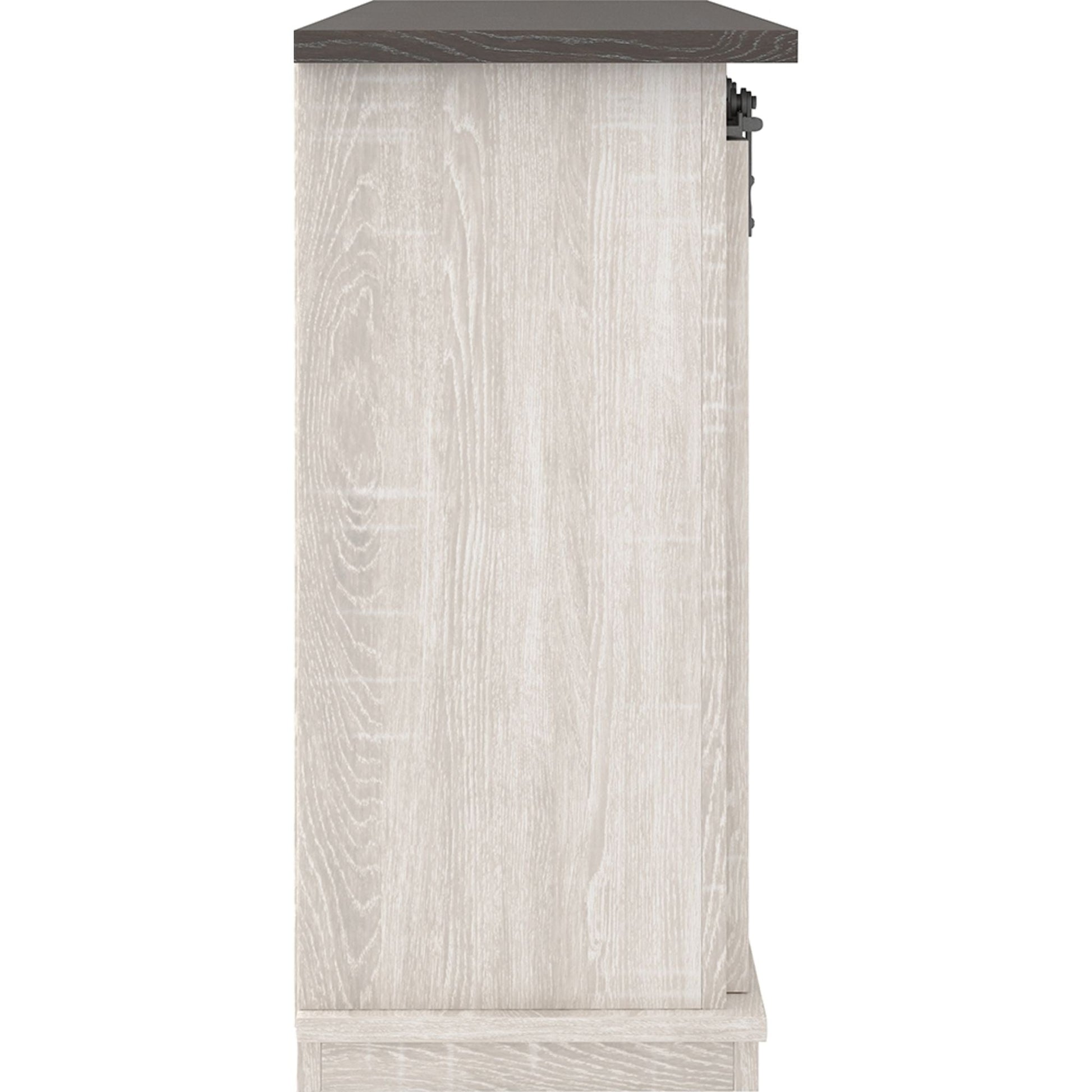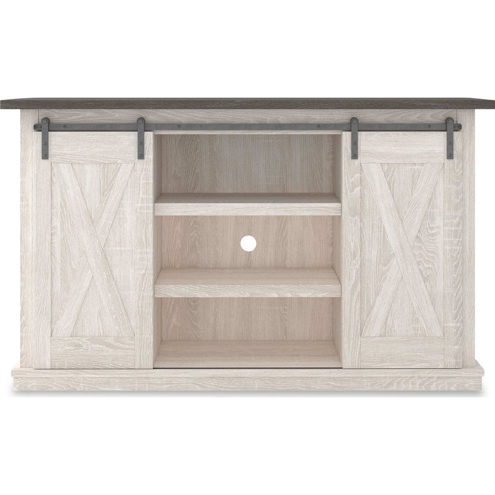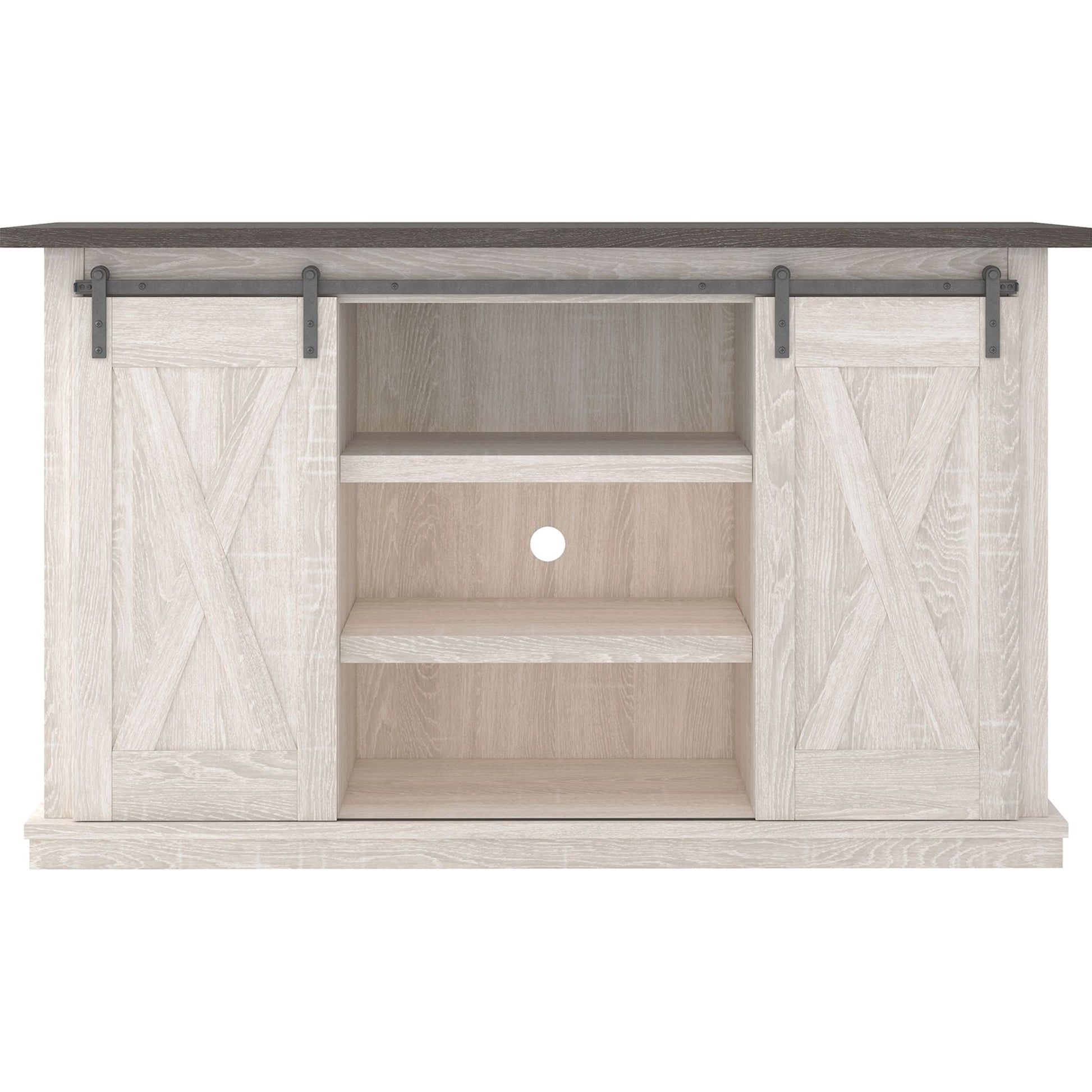 Avec sa finition bicolore, ses détails en croisillons et son charme authentique, le meuble TV Dorrinson s'accorde parfaitement à votre style décontracté et raffiné. Conçu avec soin pour accueillir vos appareils multimédias, il est doté d'étagères réglables, de passe-câbles et, bien sûr, de deux portes coulissantes de style grange que vous pouvez centrer ou placer sur le côté. Un véritable chef-d'œuvre d'élégance rustique contemporaine.