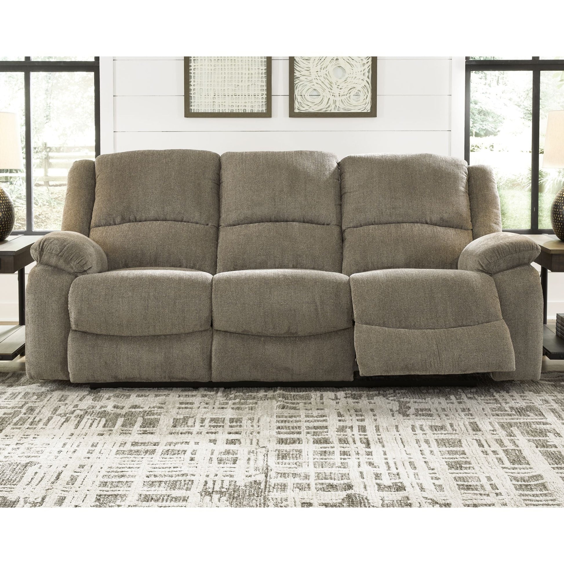 Conçu pour le luxe, le canapé inclinable Draycoll vous permet de vous détendre avec style et fiabilité. Son épais revêtement en chenille douce au toucher offre une surface confortable pour se prélasser. Grâce à son dossier capitonné et ses accoudoirs généreusement rembourrés, ce canapé vous apporte le soutien nécessaire pour décompresser après une journée éprouvante.