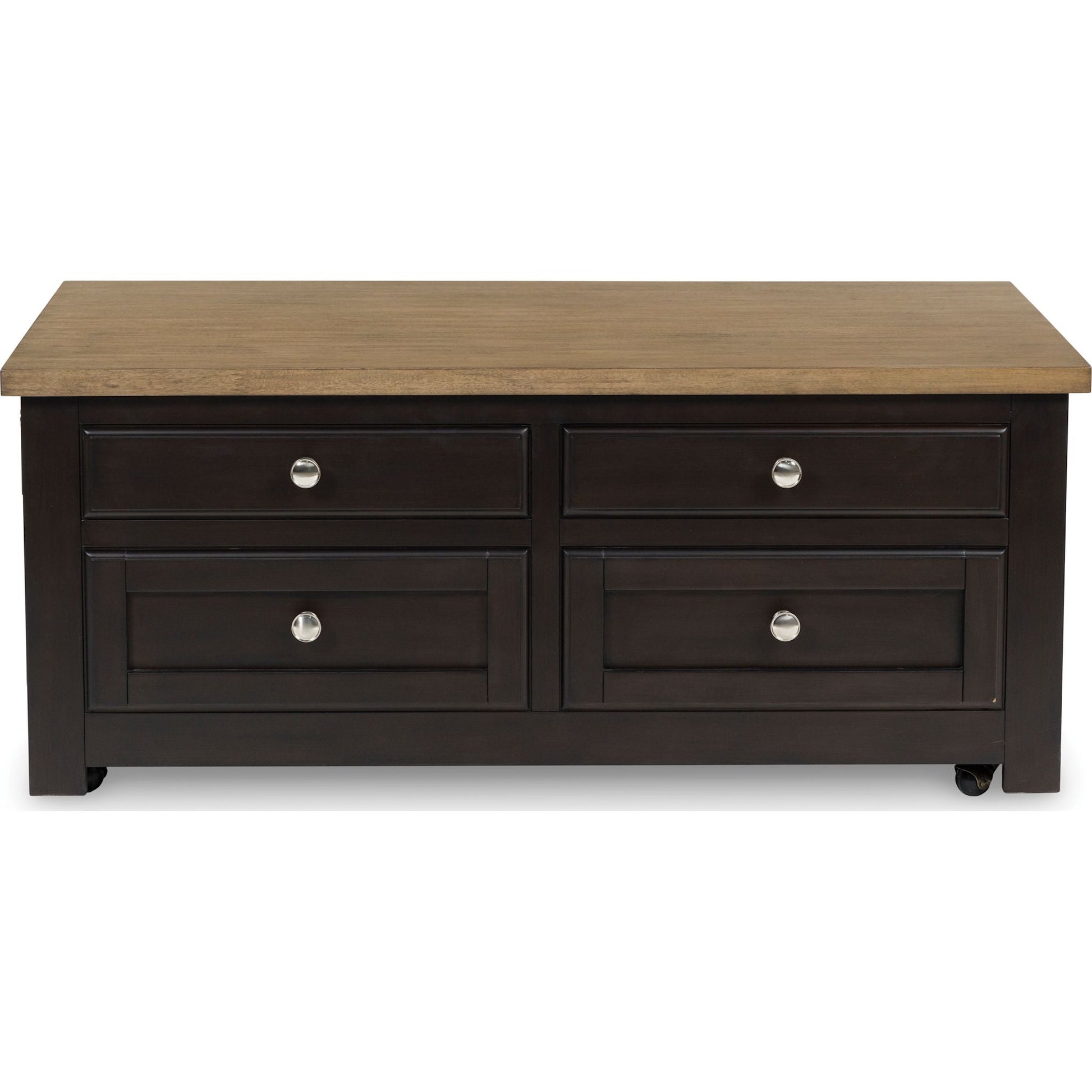 Pour aménager votre salon, le confort est primordial. La table basse relevable Drazmine allie style décontracté et fonctionnalité. Son plateau relevable dissimulé offre un confort optimal pour le télétravail ou pour se détendre devant la télévision pendant le dîner. Besoin de réorganiser votre espace ? Grâce à ses roulettes intégrées, déplacez-la facilement. Ce meuble à la fois élégant et pratique associe un brun chocolat foncé à une teinte bois clair, s'harmonisant ainsi avec de nombreuses palettes de couleurs.