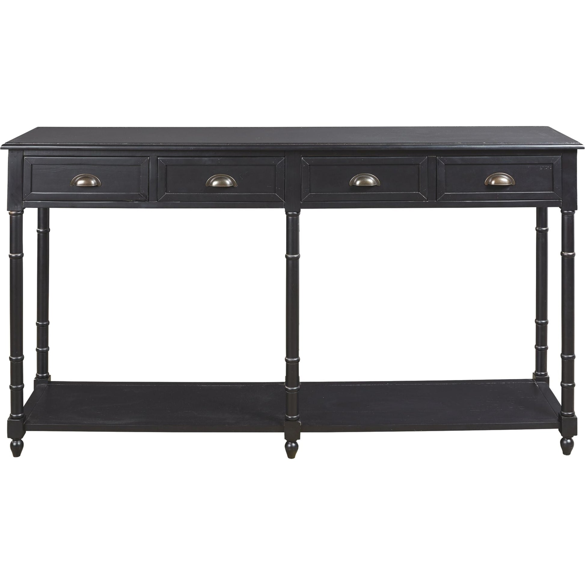 Besoin d'un grand espace de rangement pour vos objets décoratifs ? Cette longue console vous offre un vaste espace de travail, ainsi que des tiroirs pratiques pour un plateau toujours bien rangé. Ses détails vintage, comme ses pieds tournés, ses poignées de tiroir incurvées et ses façades de tiroir encadrées, en font une pièce maîtresse qui ne passera pas inaperçue.