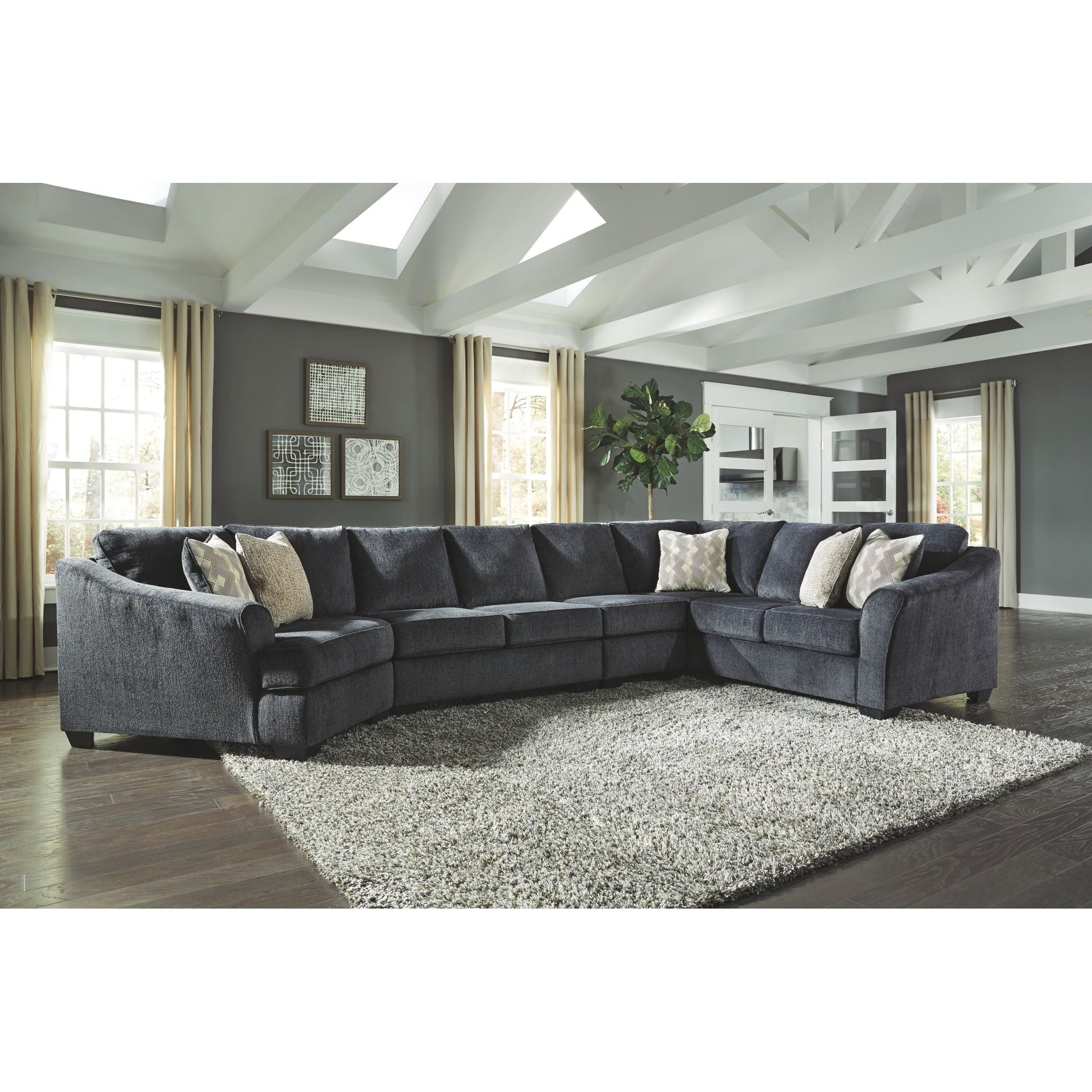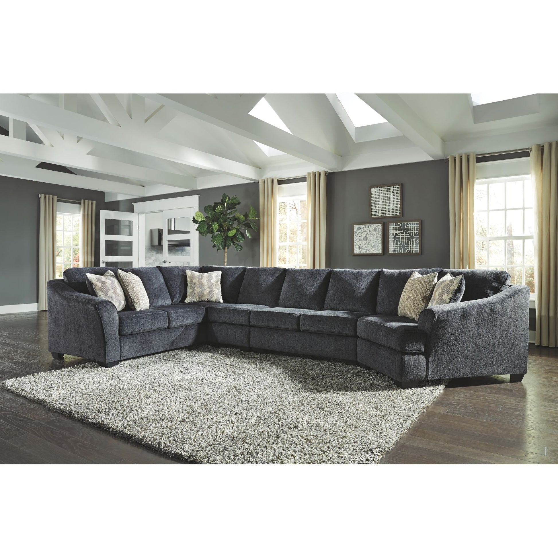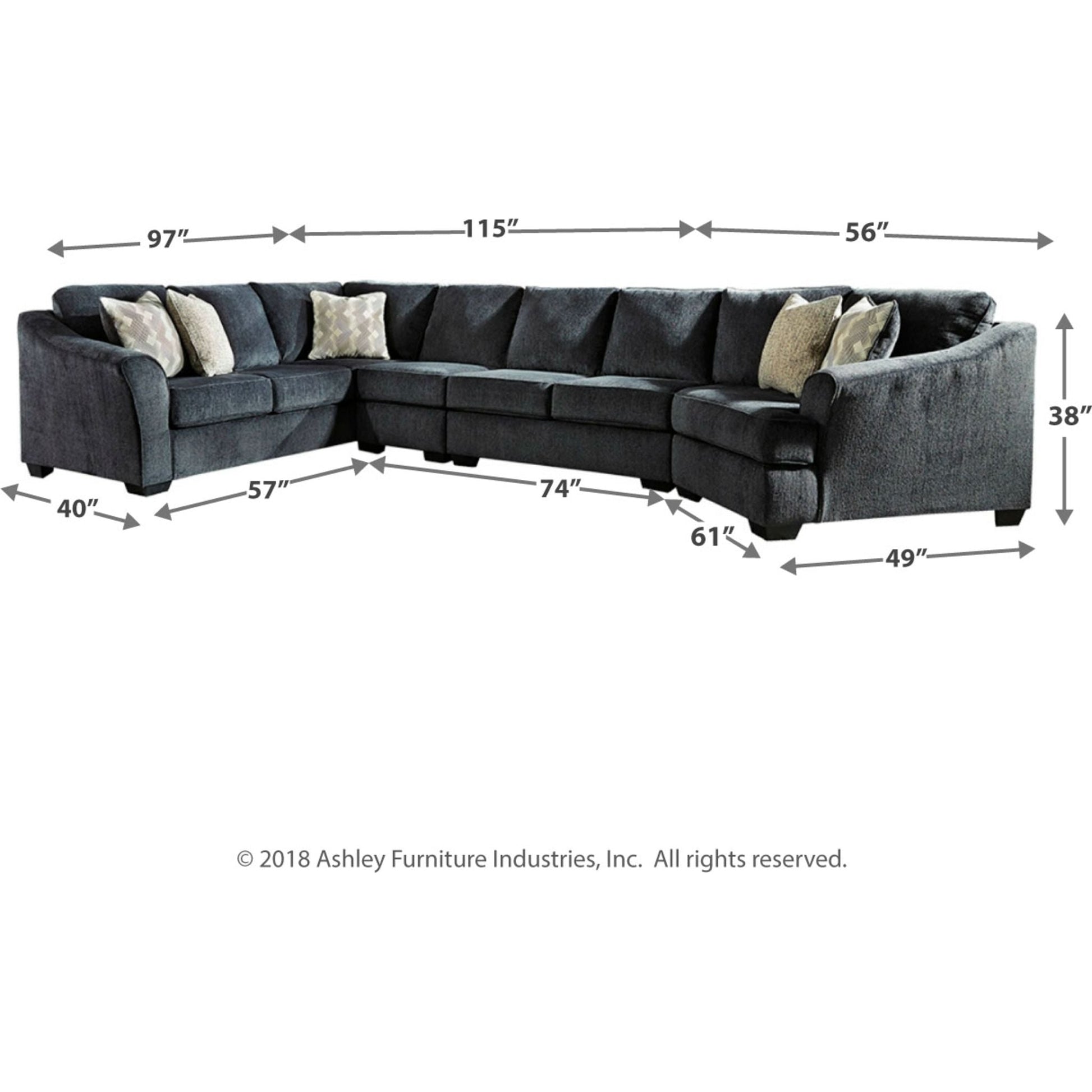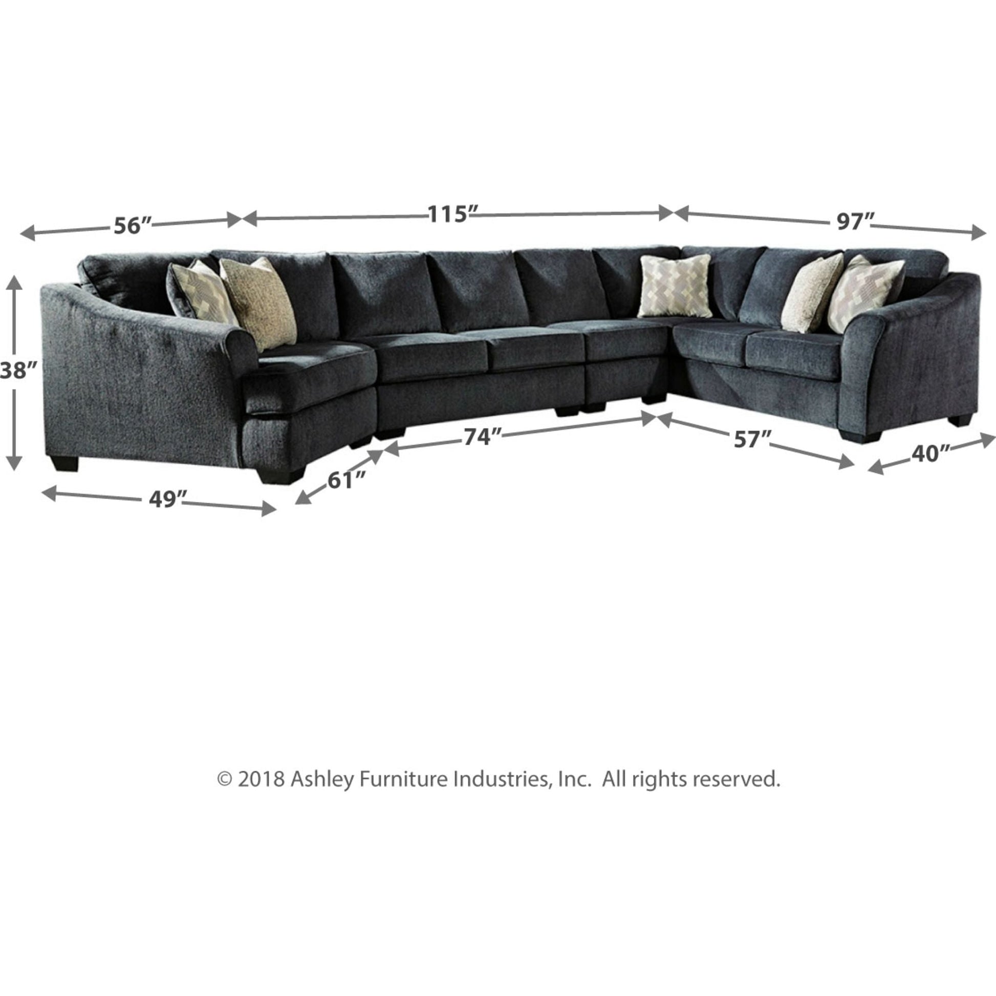 Créez votre propre cocon douillet avec le canapé d'angle Eltmann gris ardoise. Ses éléments chics et uniques, comme la méridienne d'angle et le canapé avec son angle, réinventent le confort et l'attrait des grands meubles. Revêtu d'un tissu chenille doux et texturé, ce magnifique canapé d'angle gris est élégamment confectionné avec des accoudoirs évasés et inclinés qui accentuent son allure accueillante et son style contemporain.