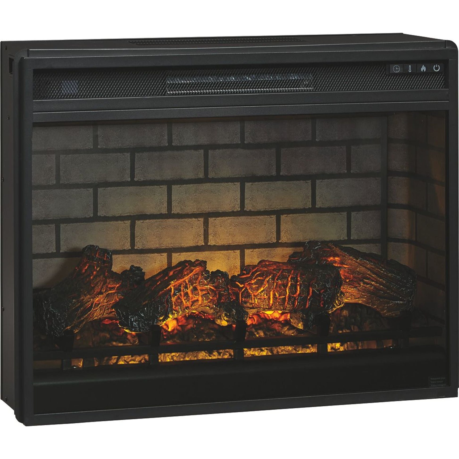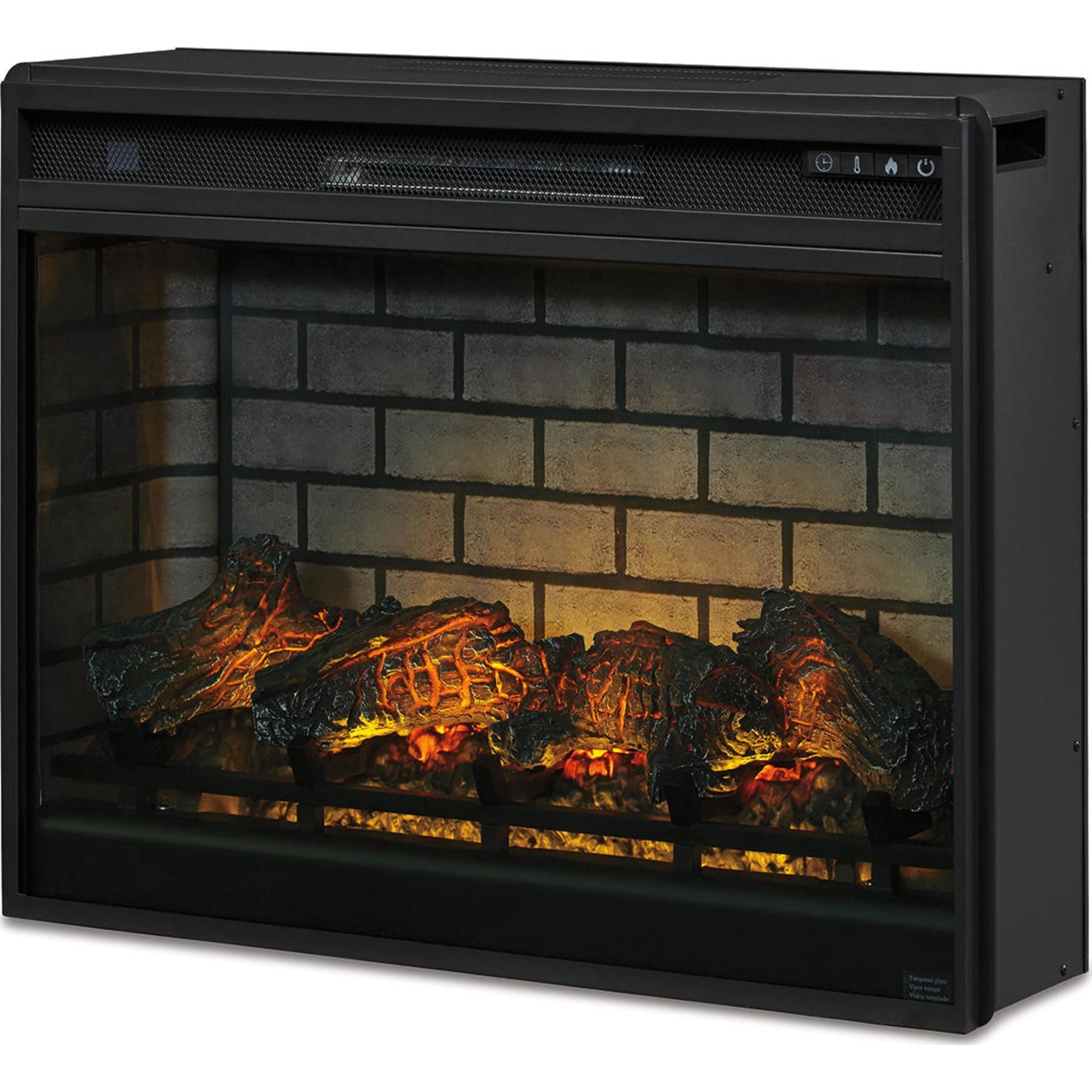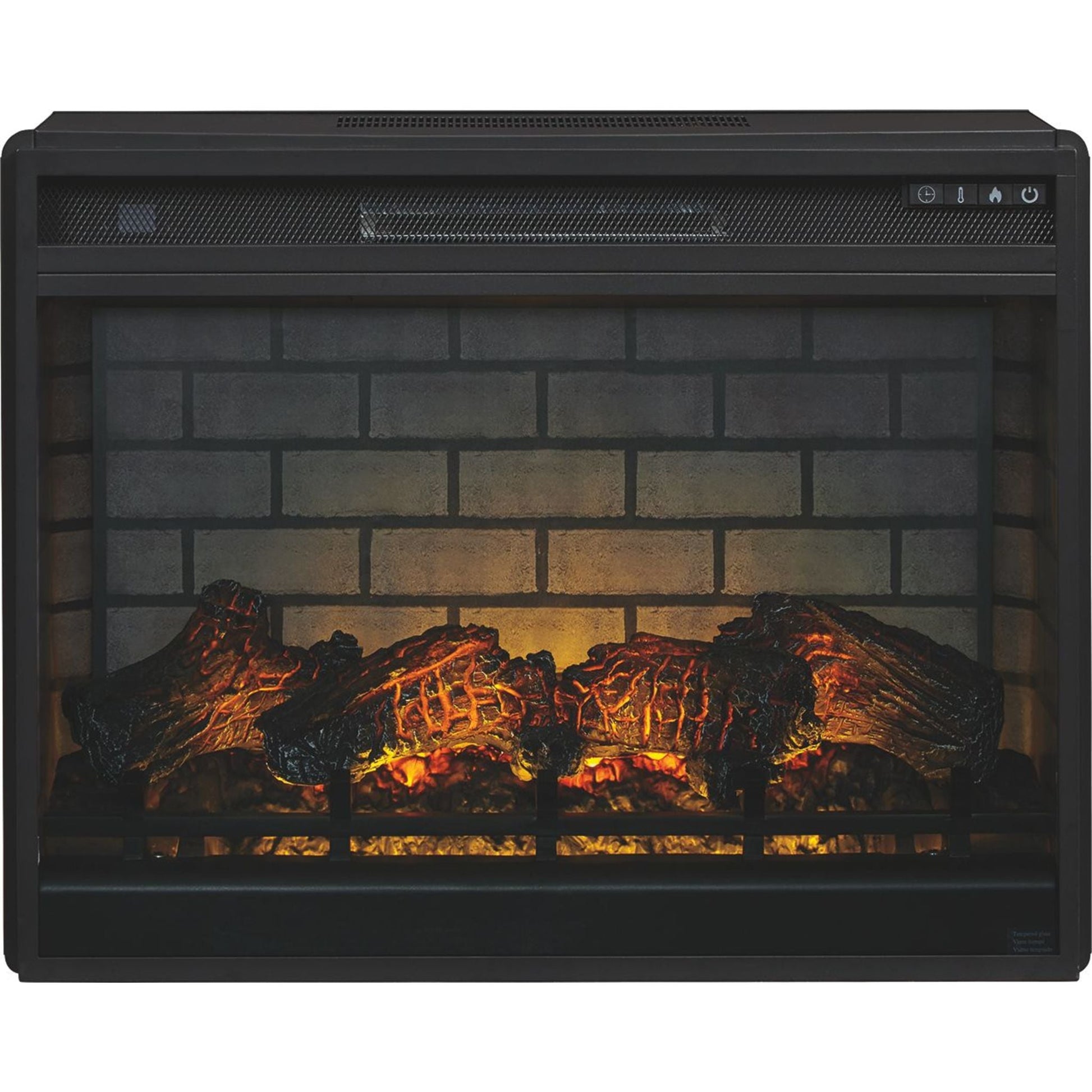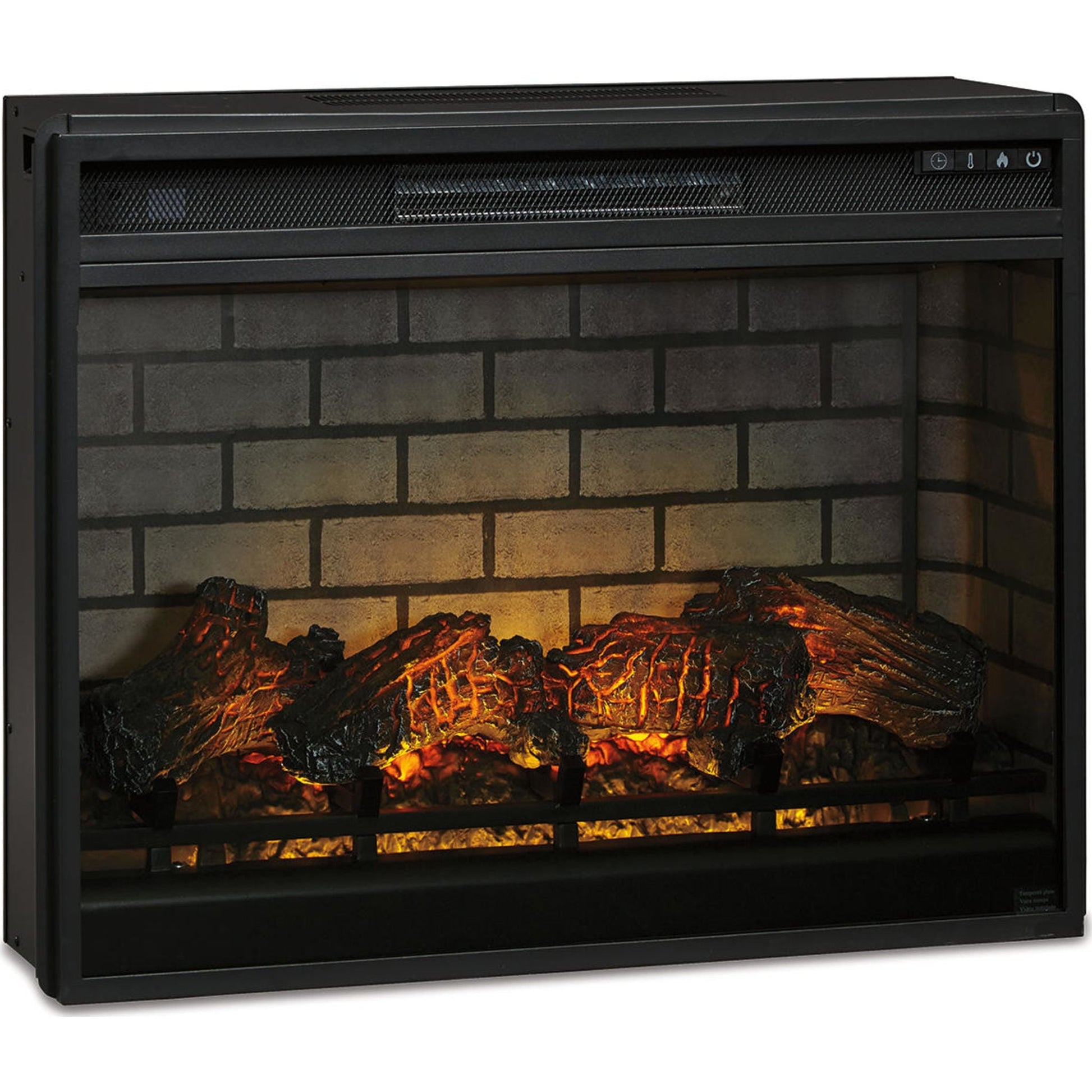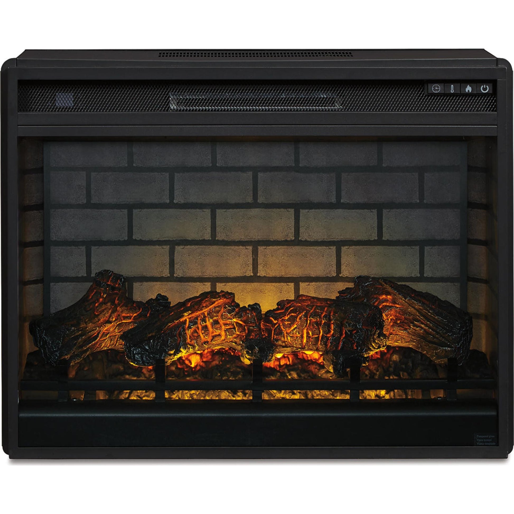 Profitez de l'ambiance chaleureuse d'un feu de cheminée crépitant sans les inconvénients, l'entretien et le nettoyage. Disponible en option sur certains meubles TV et centres multimédias, cet insert de cheminée avec entourage en fausses briques réfractaires fonctionne avec ou sans chauffage infrarouge et propose un effet de flammes multiples, 7 niveaux de température, 5 niveaux de luminosité et un effet de braises incandescentes à LED.