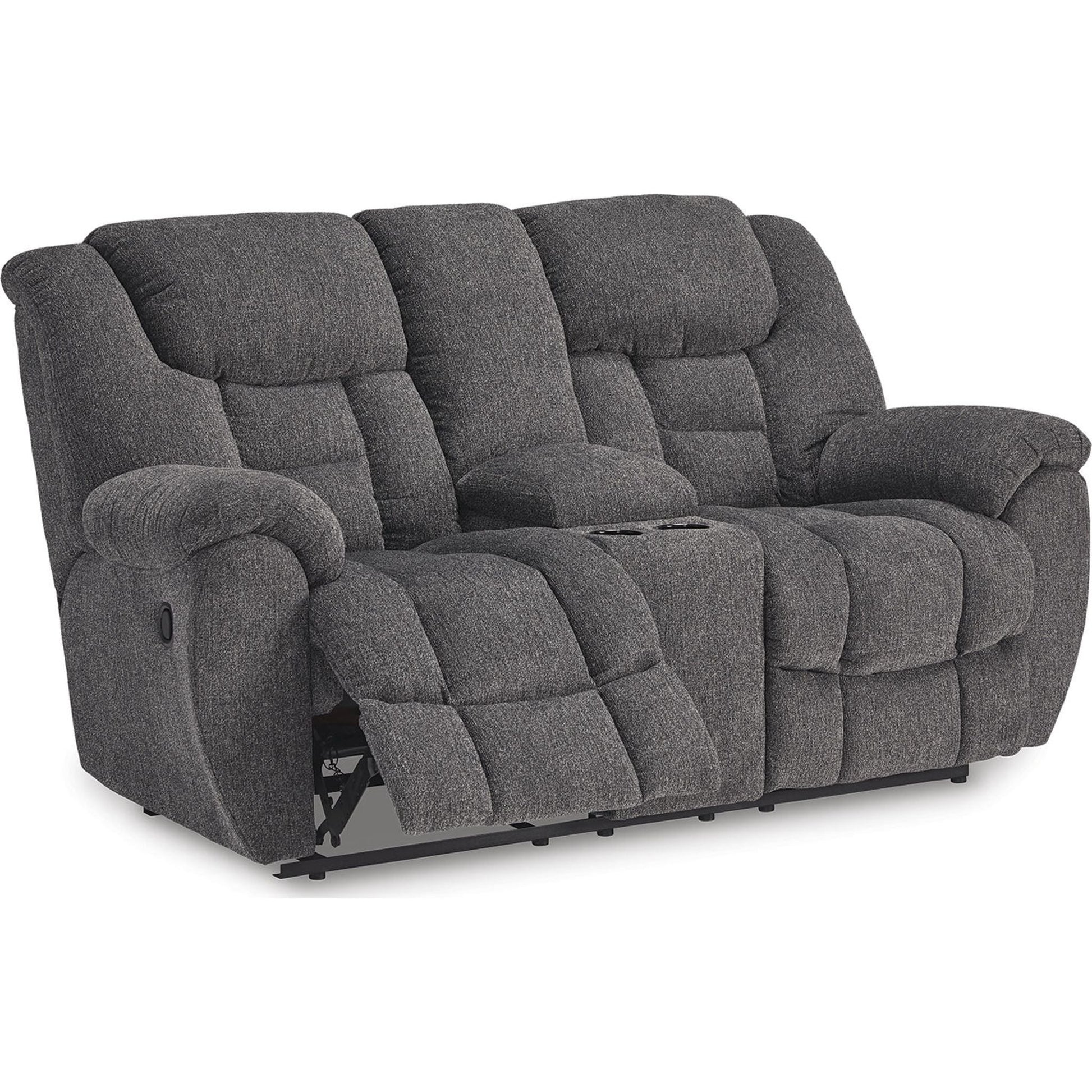 Il faut parfois le voir pour le croire. Et soyez assuré que le canapé inclinable Foreside avec console est aussi luxueux qu'il en a l'air. Conçu pour vous offrir un confort absolu, ce canapé aux dimensions généreuses, revêtu d'un tissu Next-Gen Nuvella™ gris anthracite merveilleusement moelleux et pratique, est doté d'accoudoirs rembourrés et d'un appui-tête et nuque aux courbes harmonieuses pour un bien-être optimal.