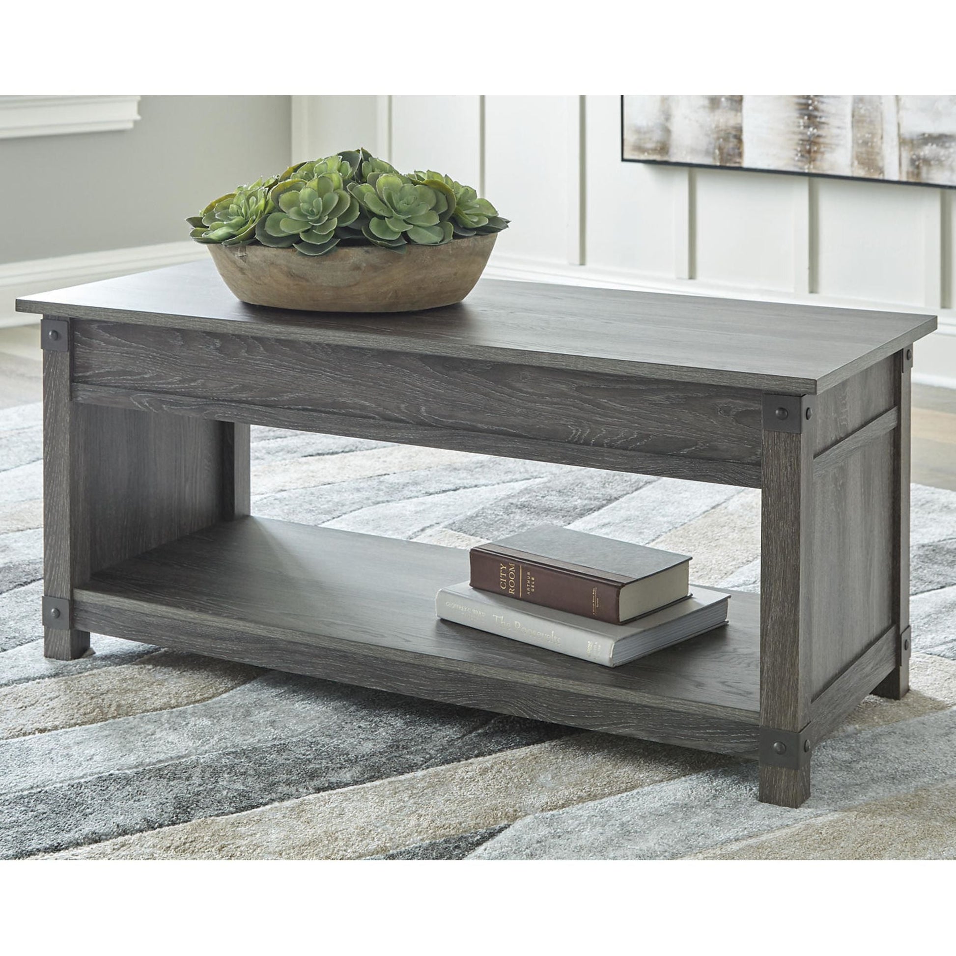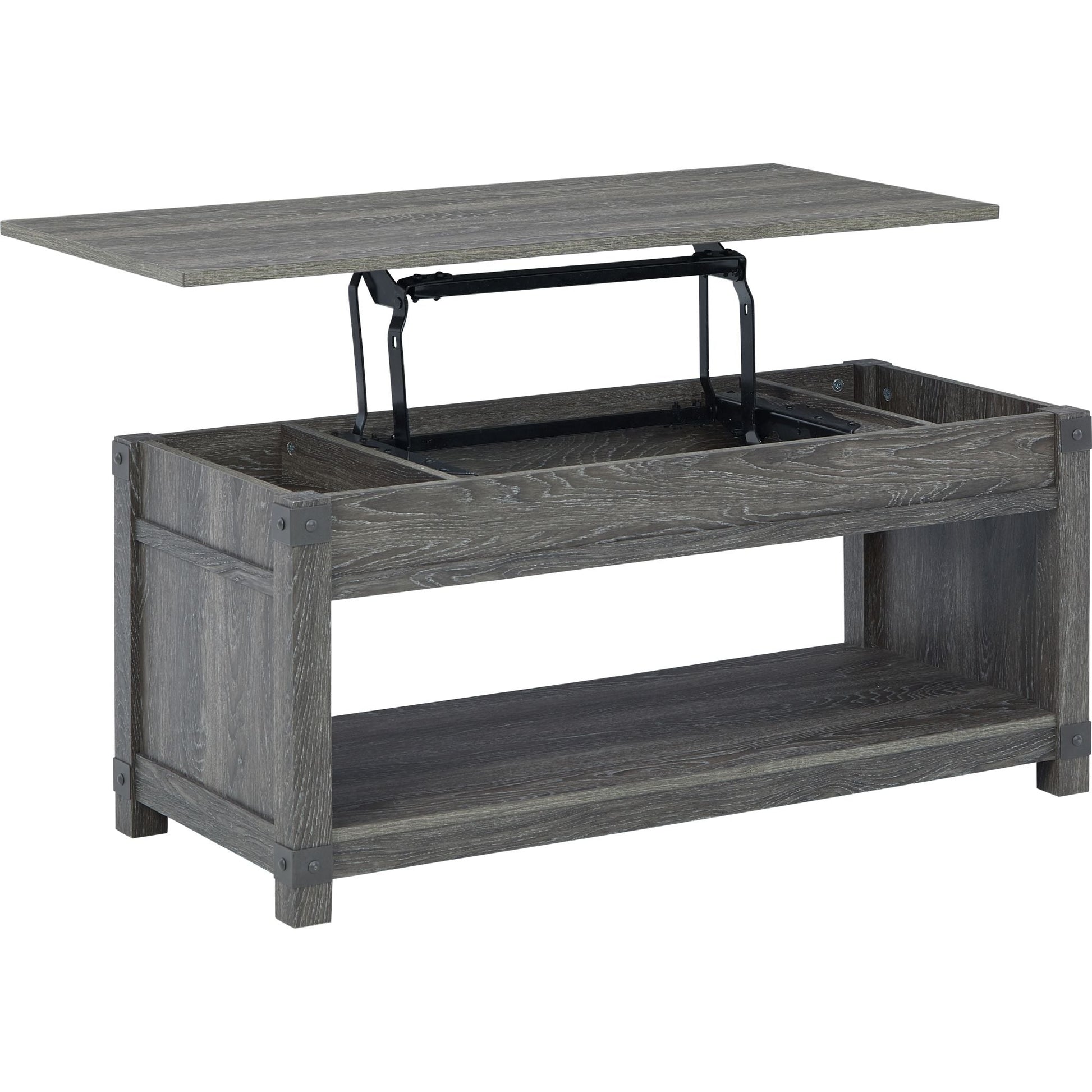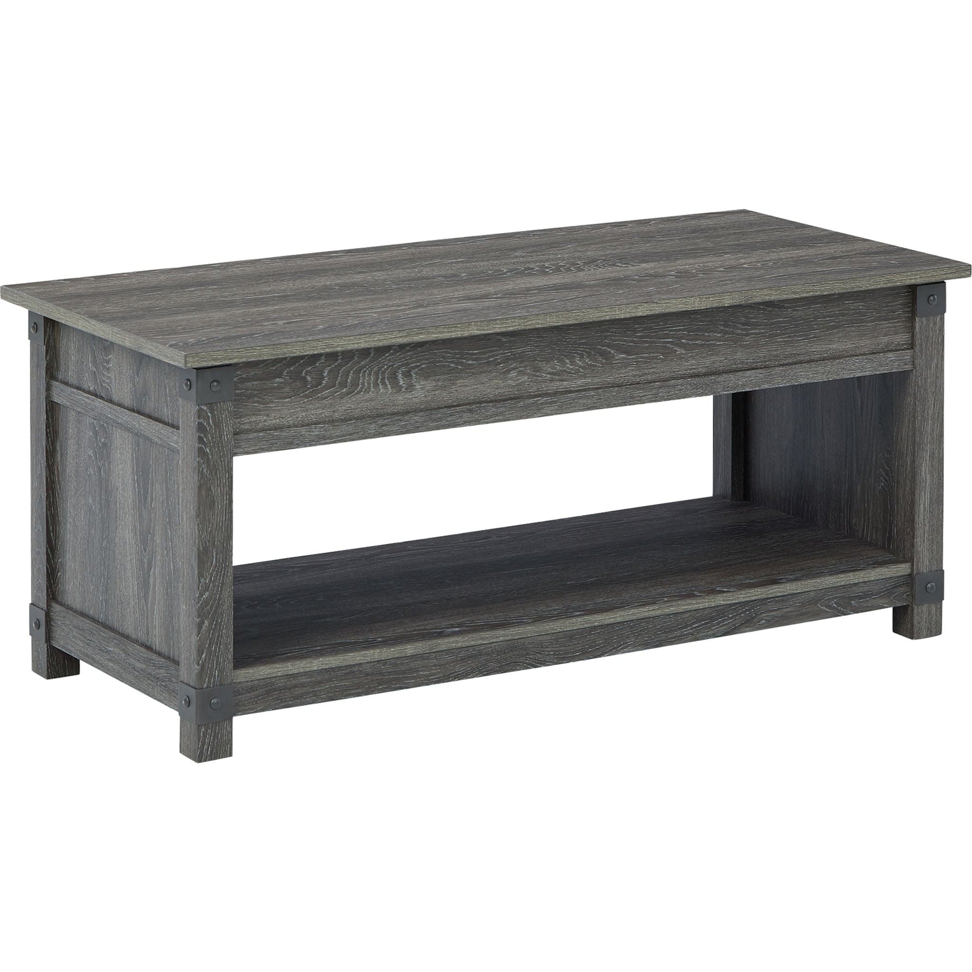 Découvrez le style champêtre moderne avec la table basse relevable Freedan. Son magnifique aspect bois et ses accents métalliques classiques en forme de croix apportent une touche d'élégance, tandis que l'étagère inférieure offre un espace pratique pour vos accessoires de décoration. Dotée d'un revêtement gris imitation bois, sa table est équipée d'un mécanisme à ressort ingénieux qui rapproche le plateau de vous. Polyvalente, elle vous permet de manger, travailler ou vous divertir confortablement installé(e) dans votre canapé.