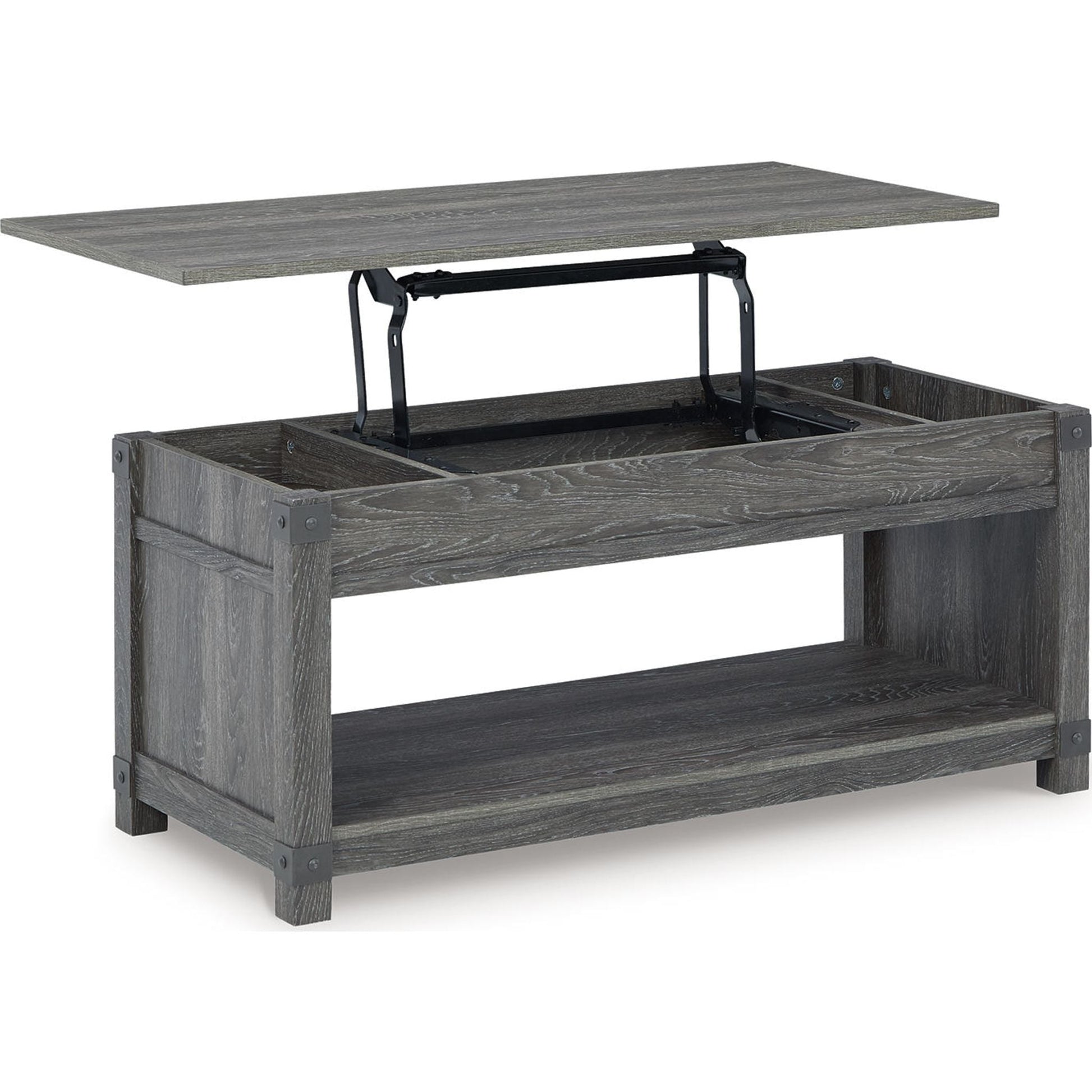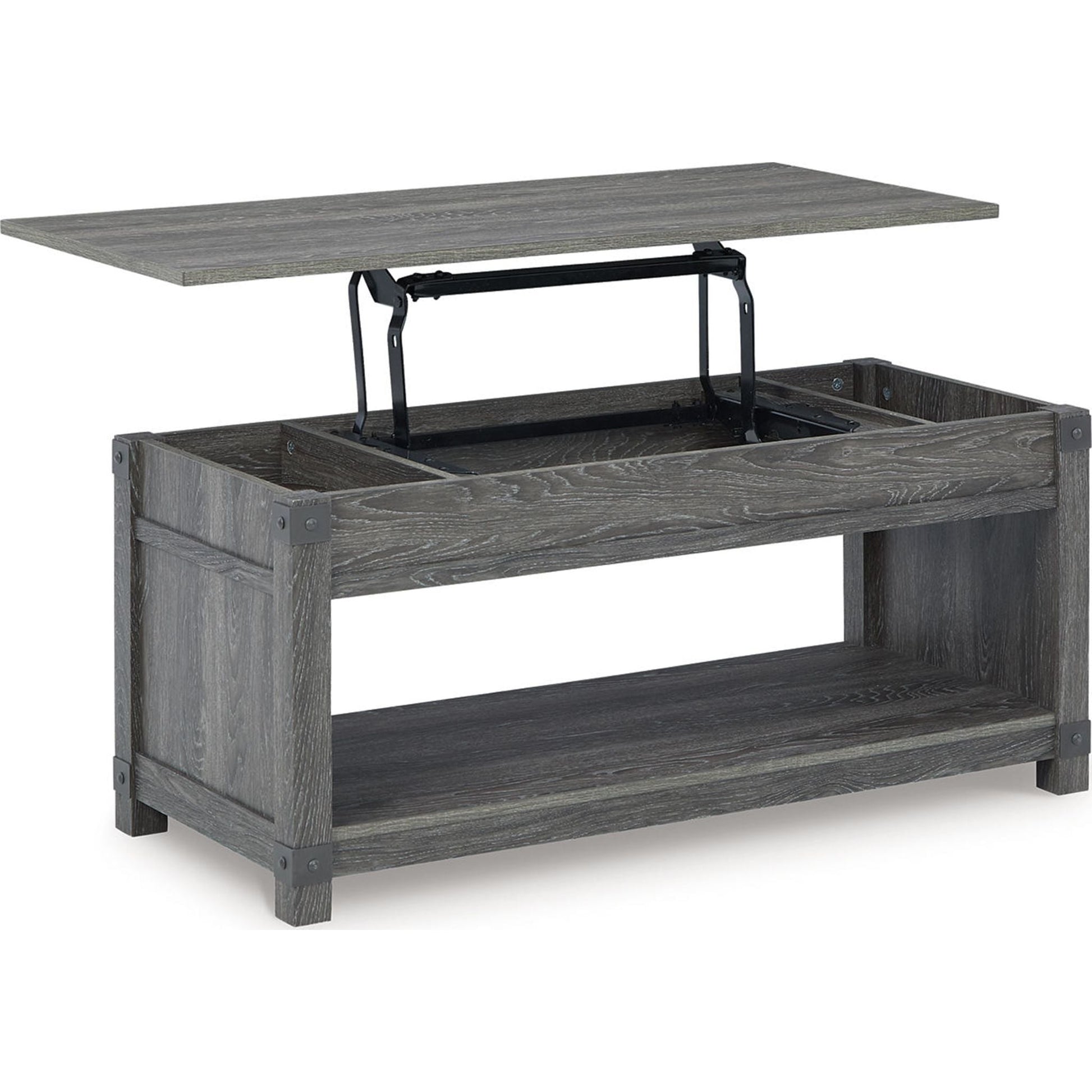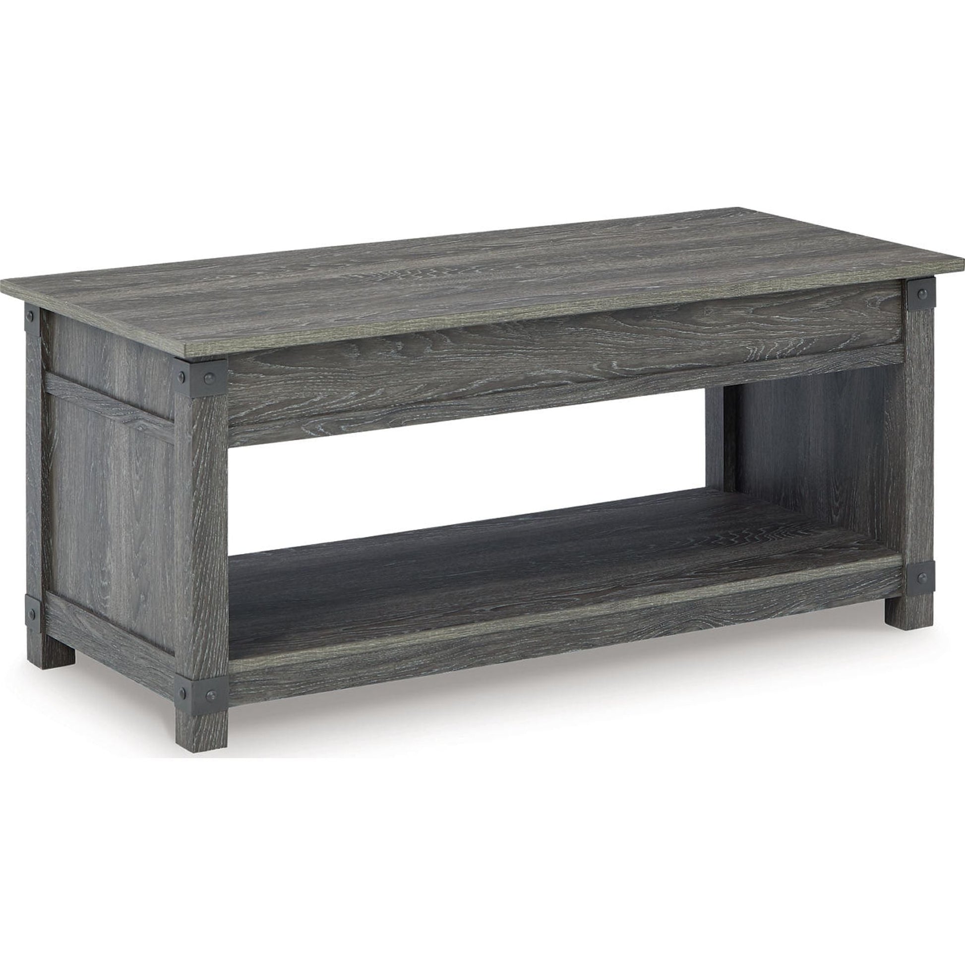 Découvrez le style champêtre moderne avec la table basse relevable Freedan. Son magnifique aspect bois et ses accents métalliques classiques en forme de croix apportent une touche d'élégance, tandis que l'étagère inférieure offre un espace pratique pour vos accessoires de décoration. Dotée d'un revêtement gris imitation bois, sa table est équipée d'un mécanisme à ressort ingénieux qui rapproche le plateau de vous. Polyvalente, elle vous permet de manger, travailler ou vous divertir confortablement installé(e) dans votre canapé.
