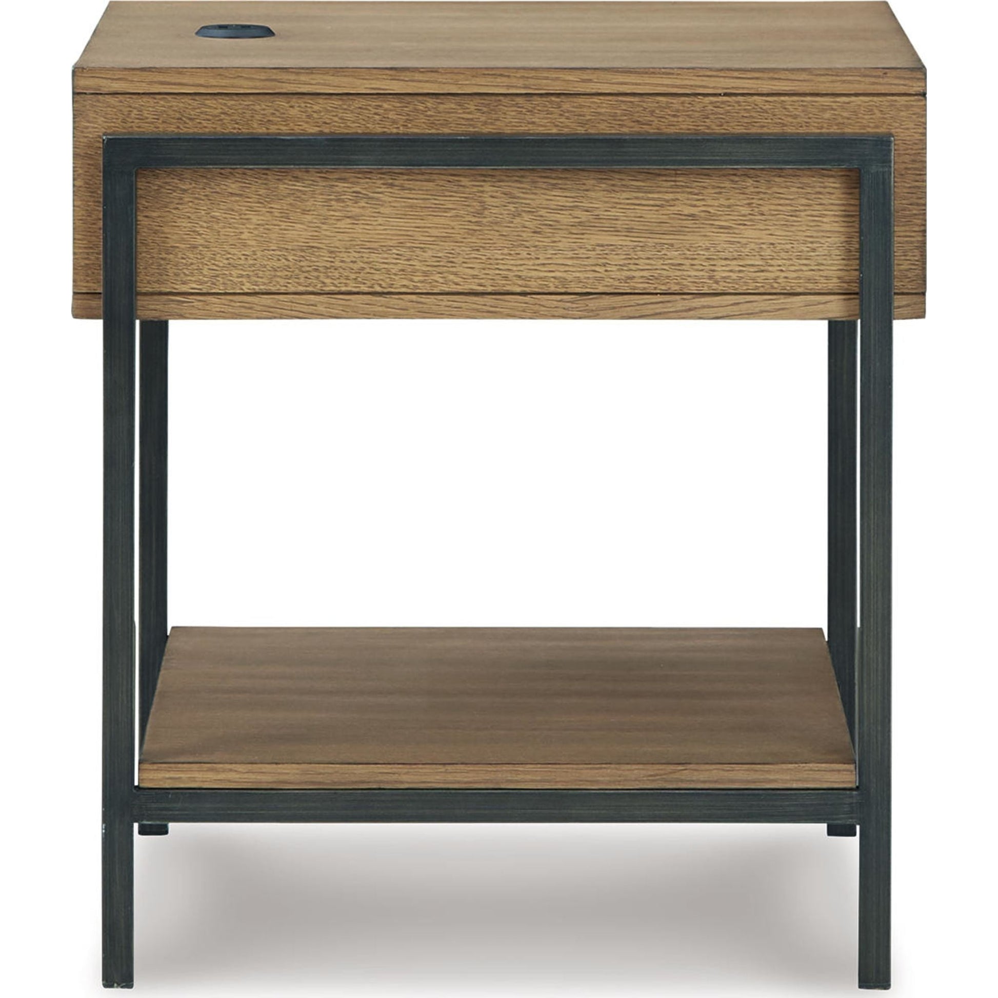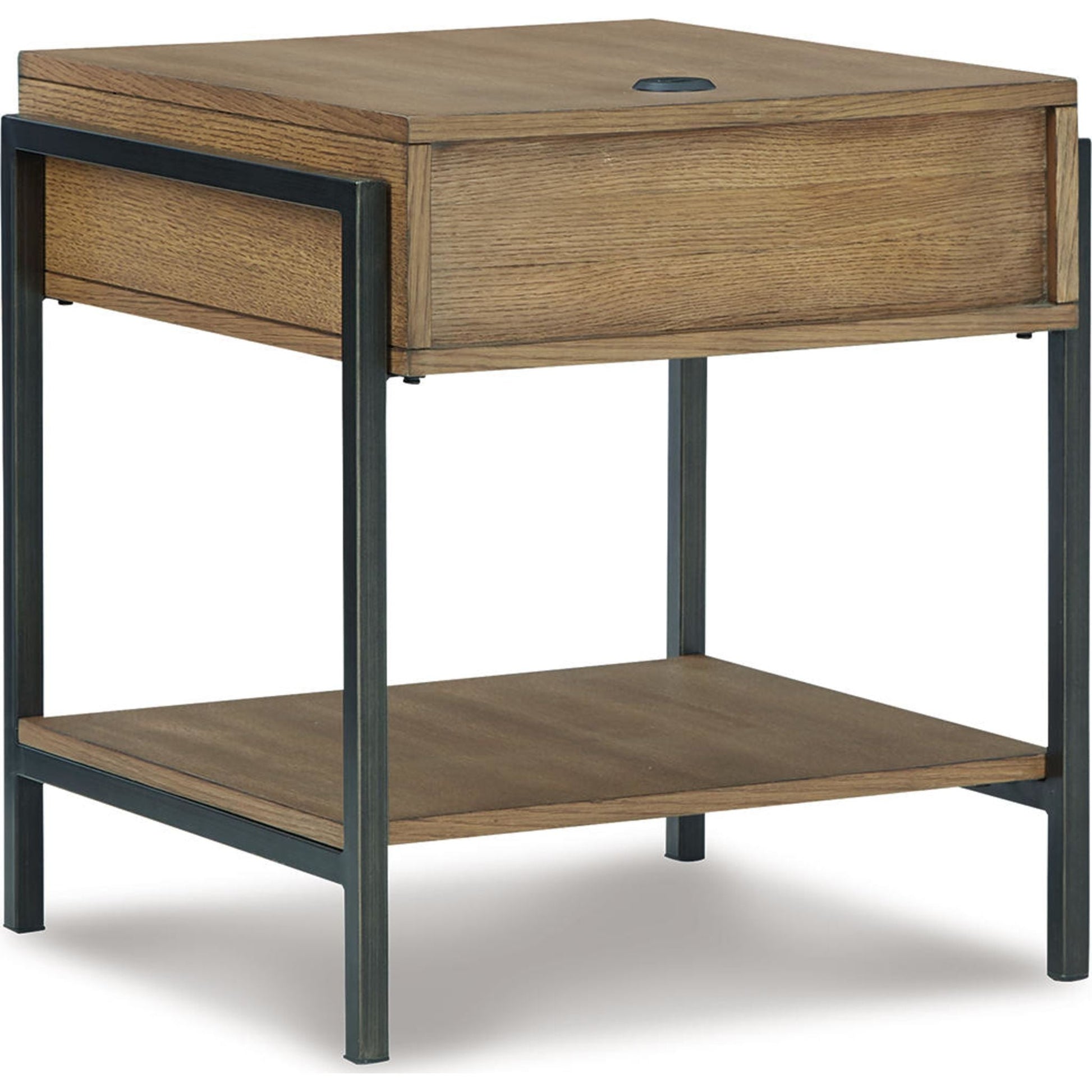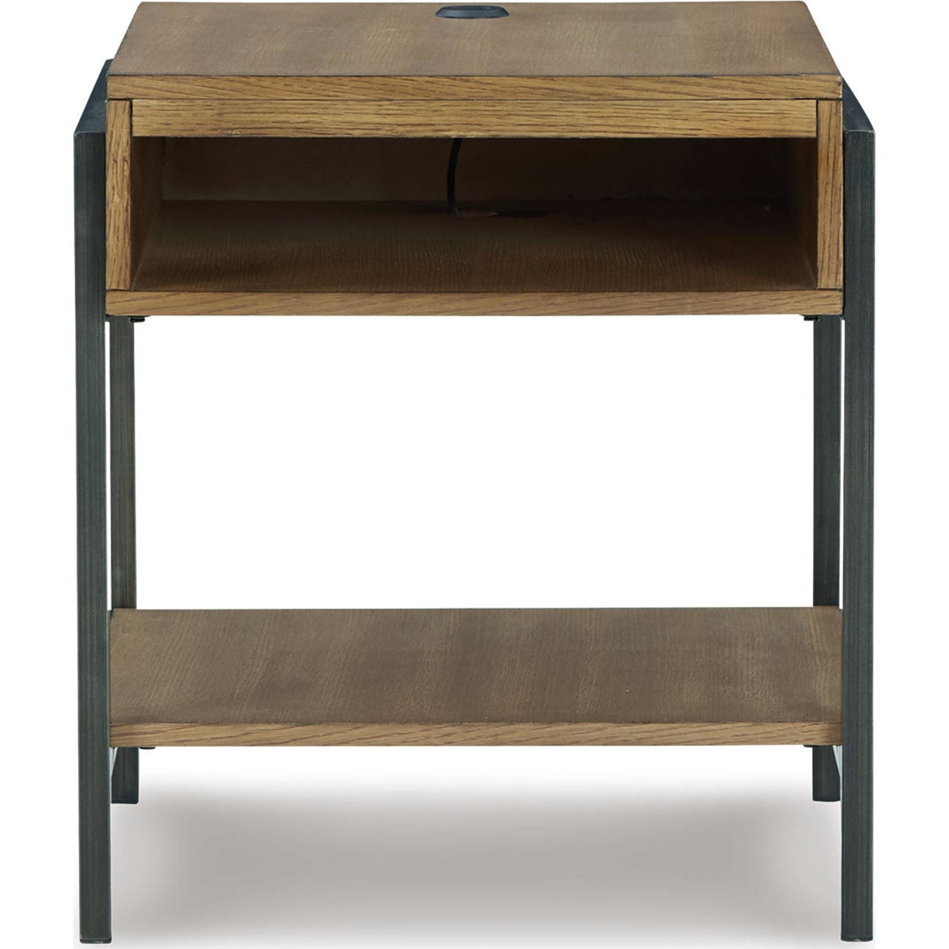 Magnifique à regarder, la table d'appoint Fridley, au style urbain et contemporain, allie style et praticité. Son bois arbore une finition claire et naturelle qui contraste élégamment avec la structure en métal noir. Son compartiment ouvert est idéal pour ranger livres et magazines. Un port de chargement secteur/USB astucieusement placé sur le dessus vous permet de recharger vos appareils sans effort.