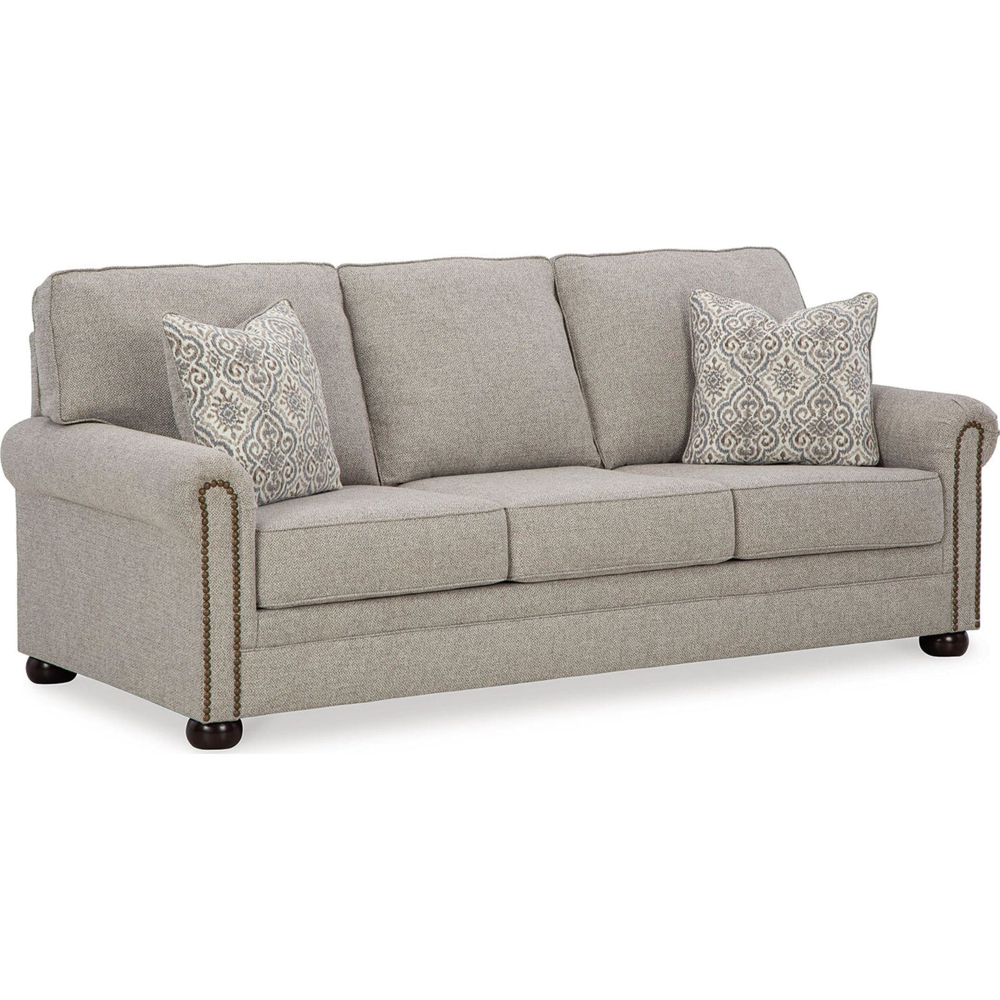 Inspiré du passé mais résolument ancré dans le présent, le canapé Gaelon s'intègre parfaitement à votre salon. Son revêtement polyvalent est orné de détails raffinés, créant un subtil effet chevrons. Des finitions soignées, comme les clous décoratifs et les pieds boule, lui confèrent un charme traditionnel. Avec son style et son confort éprouvés, ce canapé vous invite à la détente.