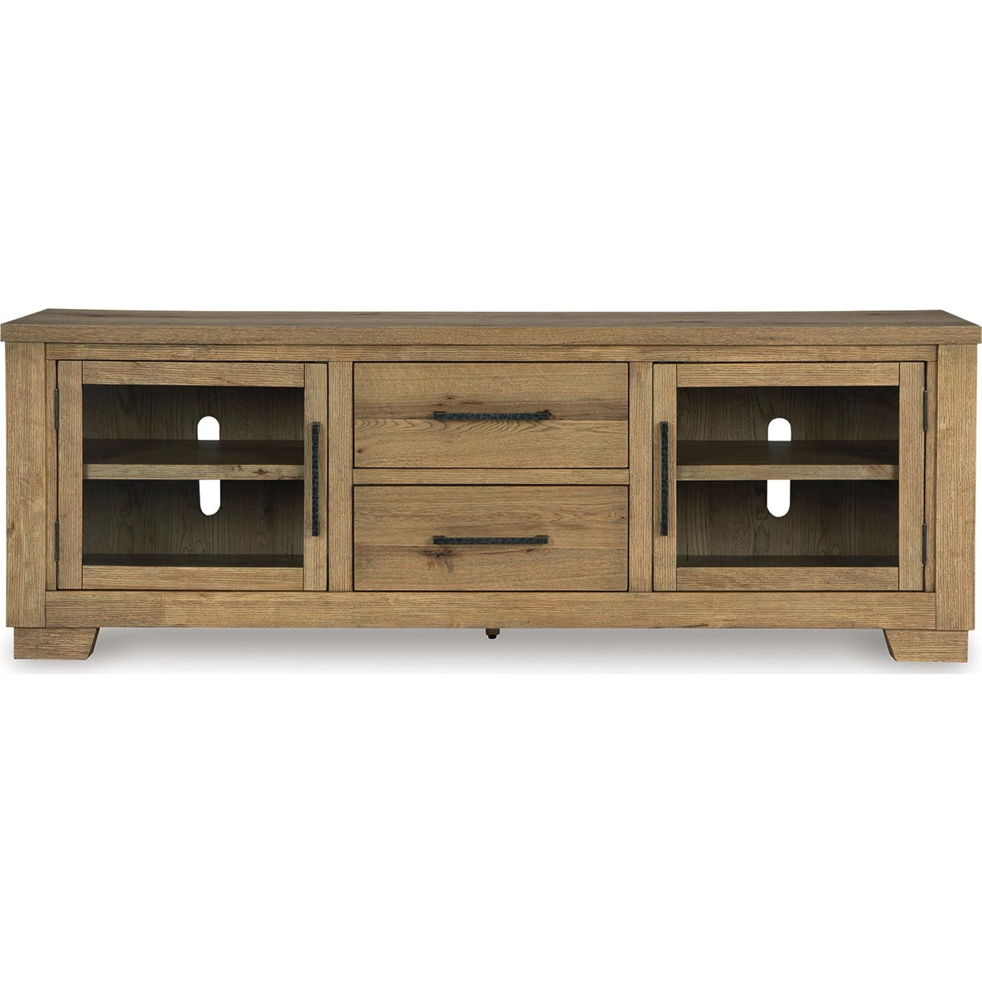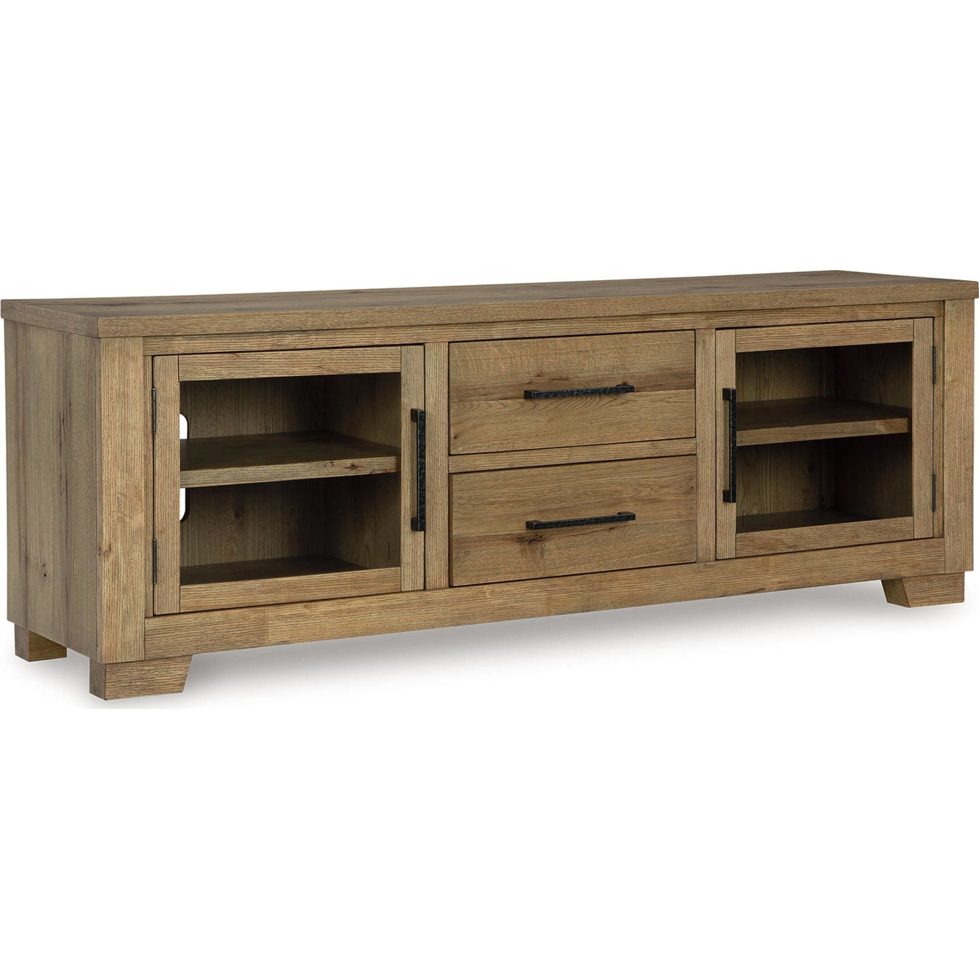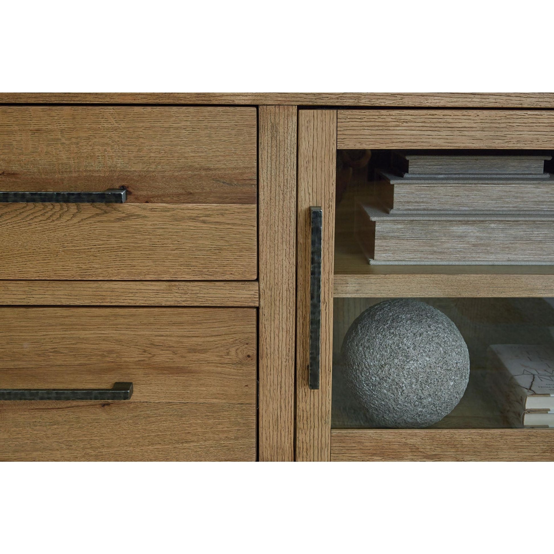 Le meuble TV Galliden sublime la beauté brute du bois, insufflant une touche rustique à un design contemporain urbain. Il crée une ambiance naturellement belle dans votre salon ; les détails naturels du bois rendent chaque pièce unique. Les rangements intégrés (console et appareils multimédias) sont facilités par des placards et des tiroirs. Enfin, la simplicité élégante des matériaux vous permet d'harmoniser facilement ce meuble TV avec votre décoration existante.