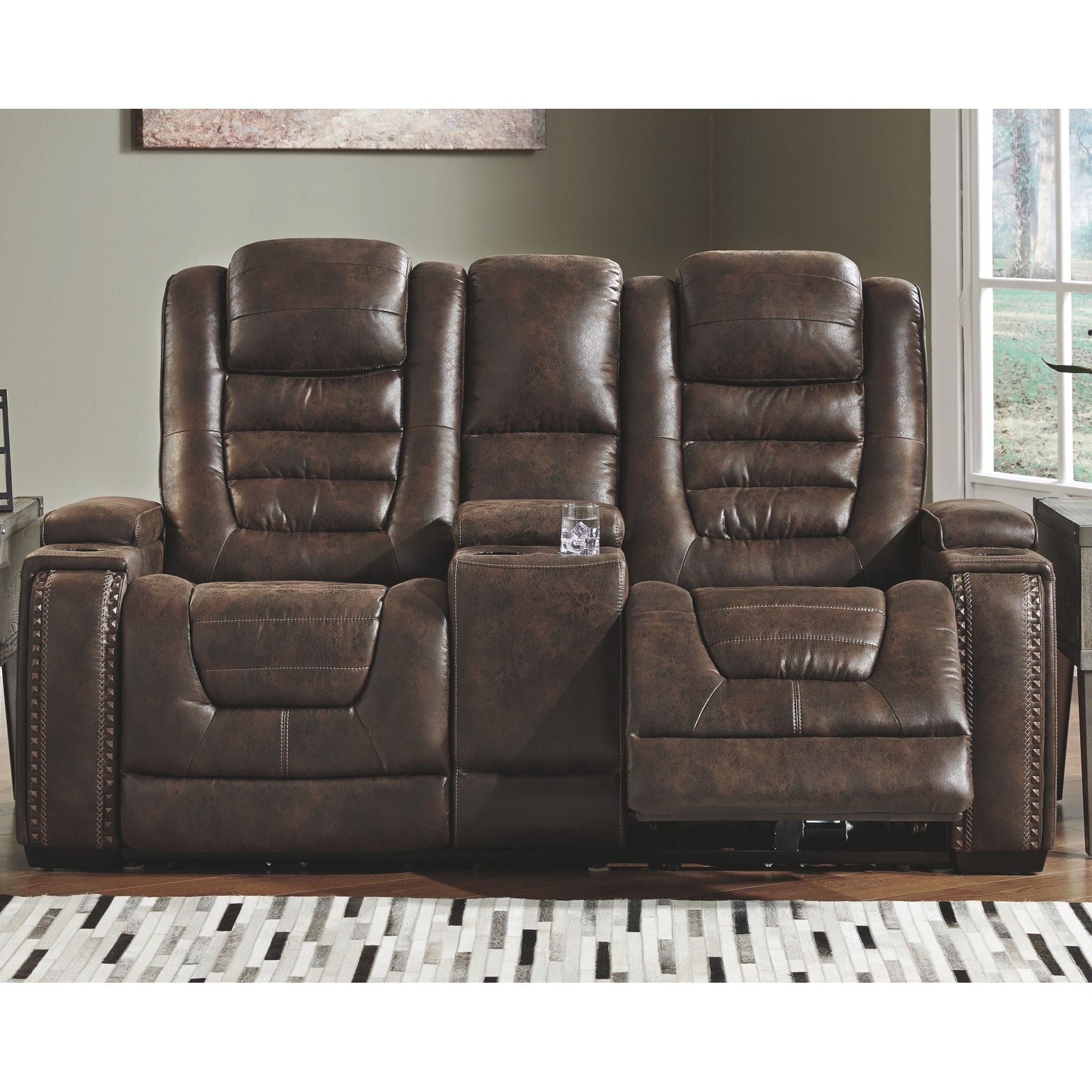 Si vous recherchez le siège idéal pour jouer, vous détendre ou simplement vous relaxer, ne cherchez pas plus loin que le canapé inclinable électrique Game Zone. Doté de commandes électriques intuitives, d'appuie-tête réglables électriques Easy View™, de porte-gobelets, d'espaces de rangement et de chargeurs, ce canapé inclinable deux places a tout ce qu'il vous faut pour des sessions de jeu endiablées ou des heures de divertissement. Ses coussins rembourrés, son dossier incurvé et ses accoudoirs moelleux offrent un excellent maintien, tandis que son revêtement en similicuir est rehaussé d'un capitonnage élégant. La console centrale du canapé comprend un espace de rangement, des porte-gobelets et un port USB pour recharger vos appareils. Pratique, non ?