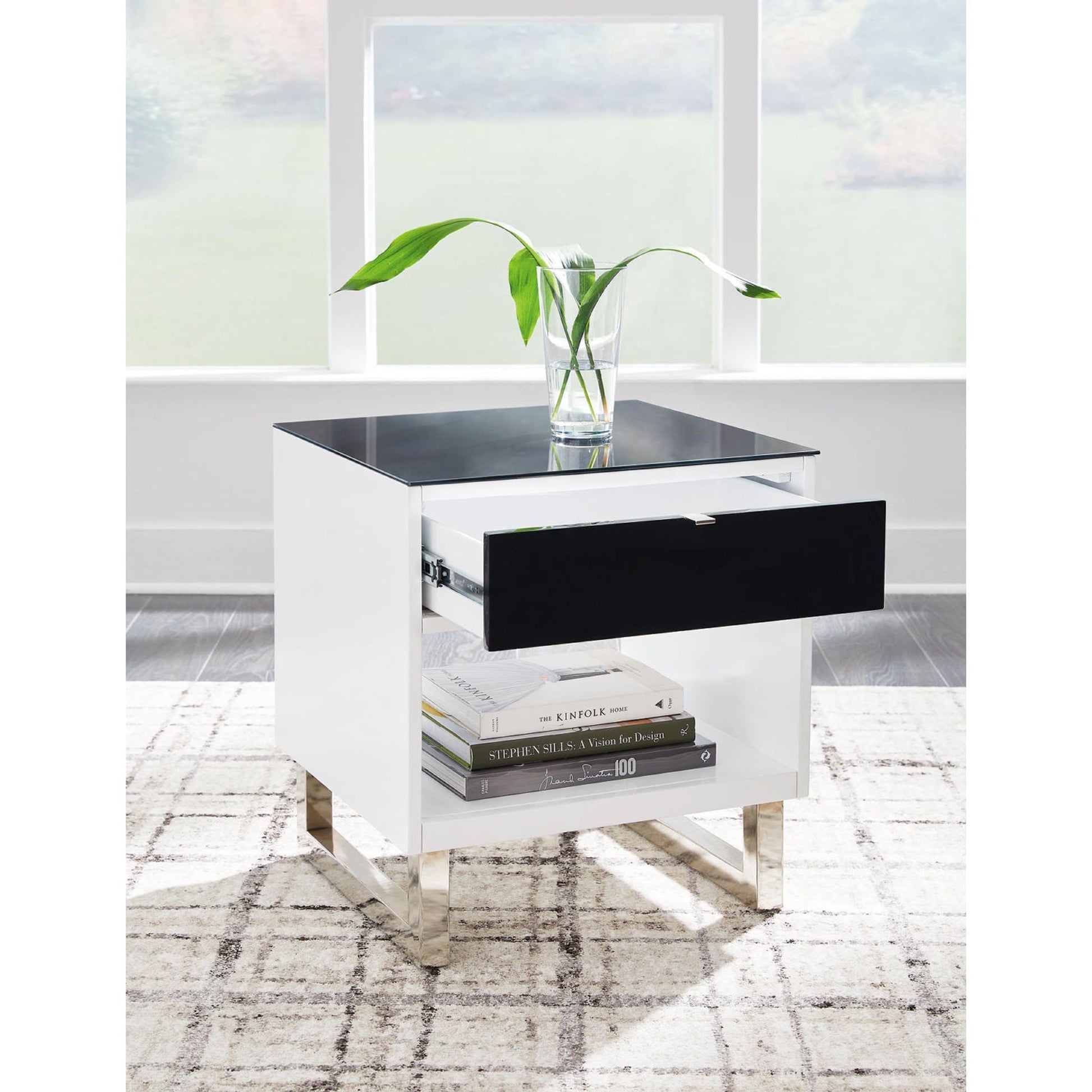 Avec sa finition blanche brillante et son plateau en verre noir, la table d'appoint Gardoni prouve que les contraires s'attirent. Elle offre un parfait équilibre entre style moderne et fonctionnalité, grâce à son tiroir spacieux et son compartiment ouvert qui permettent de garder vos appareils multimédias à portée de main. Un choix judicieux à tous points de vue.