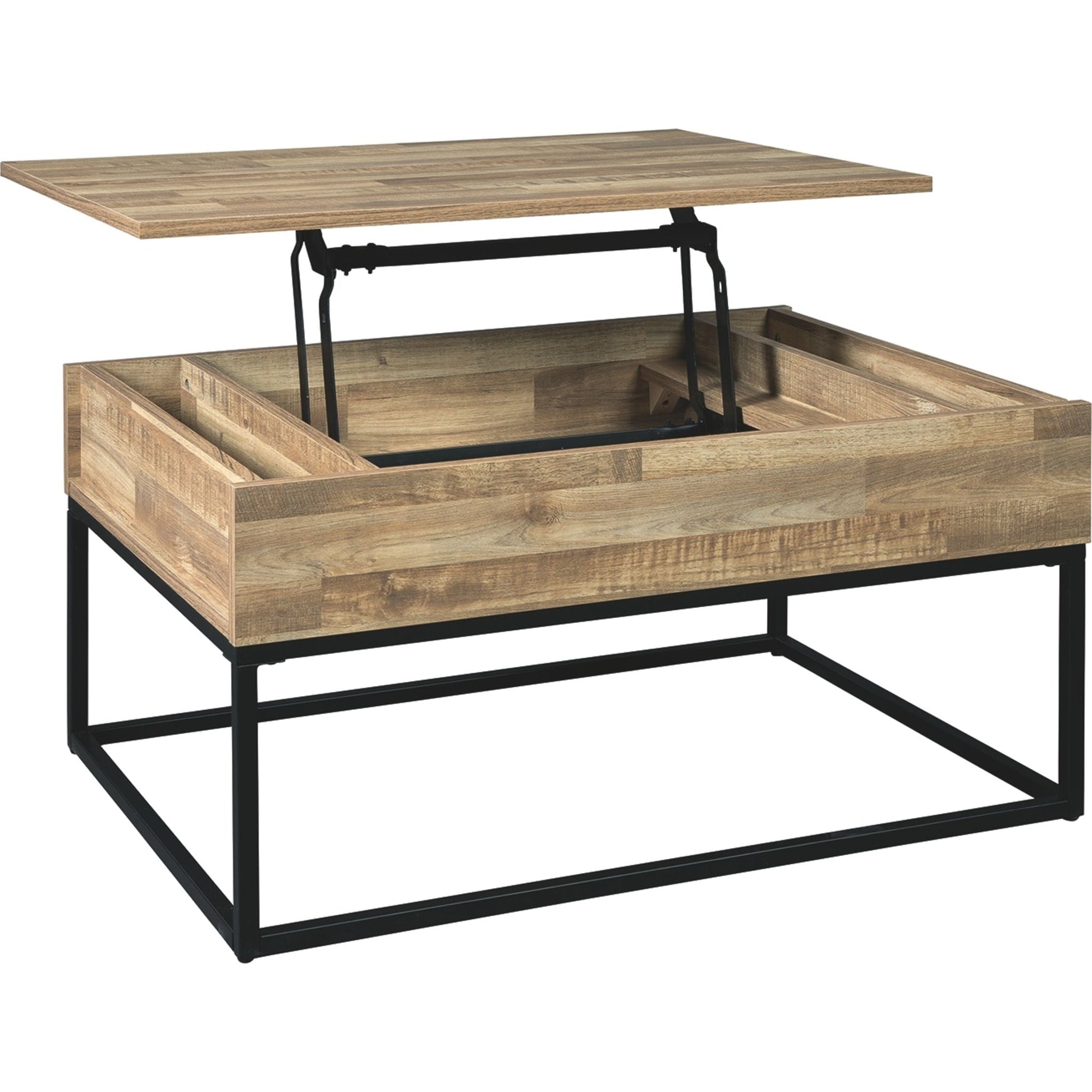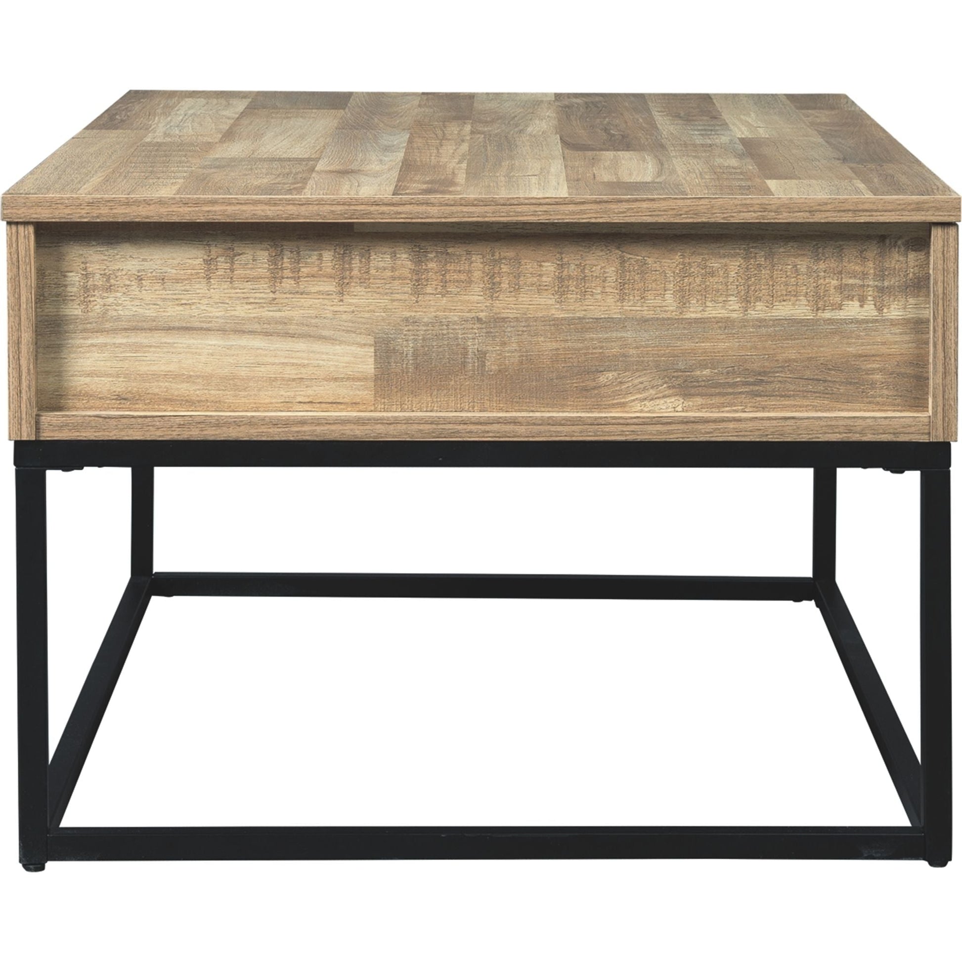 La table basse Gerdanet revisite le style urbain avec son plateau relevable décontracté et sa finition imitation bois massif. Son piètement en métal surélève la table et crée un espace aéré qui allège la pièce.