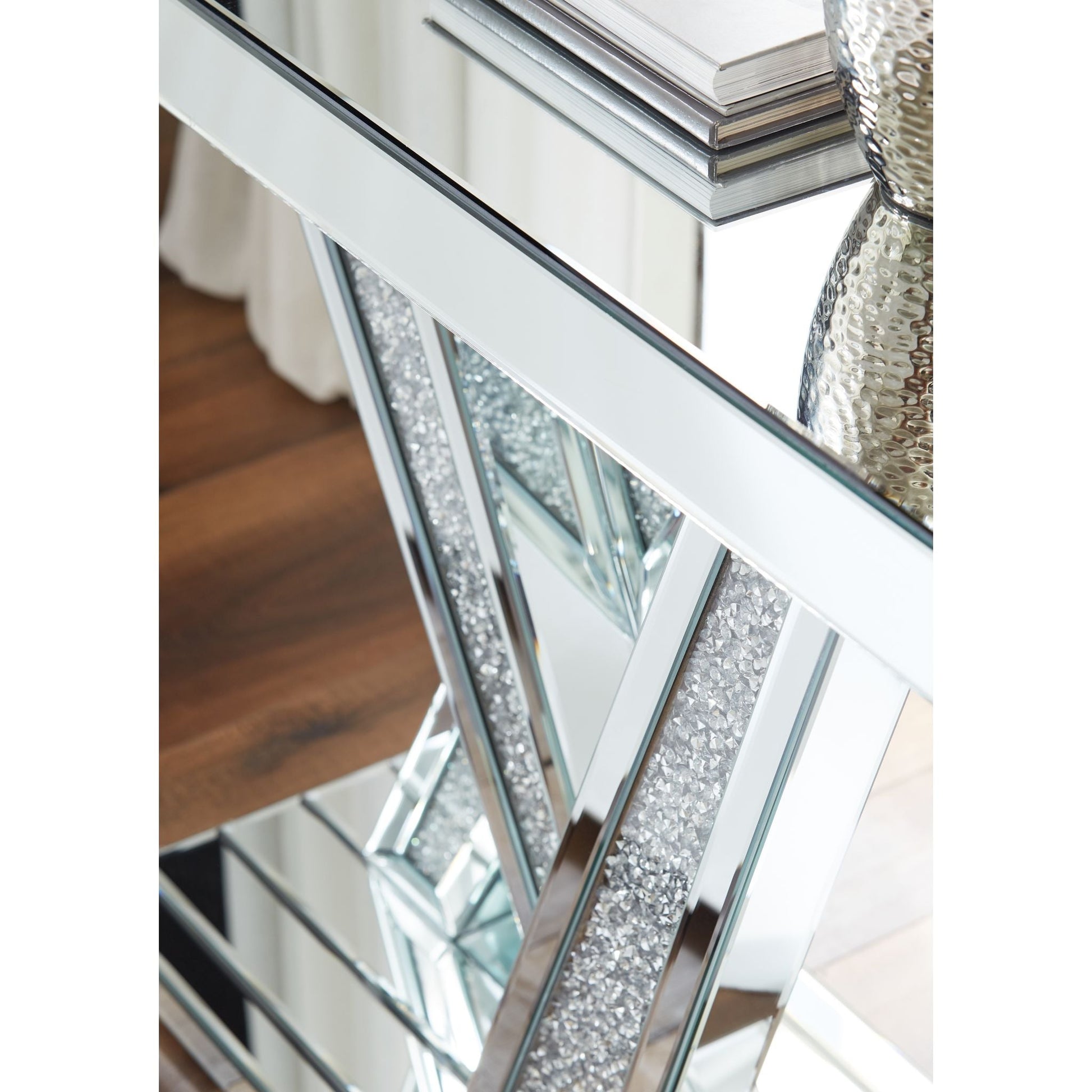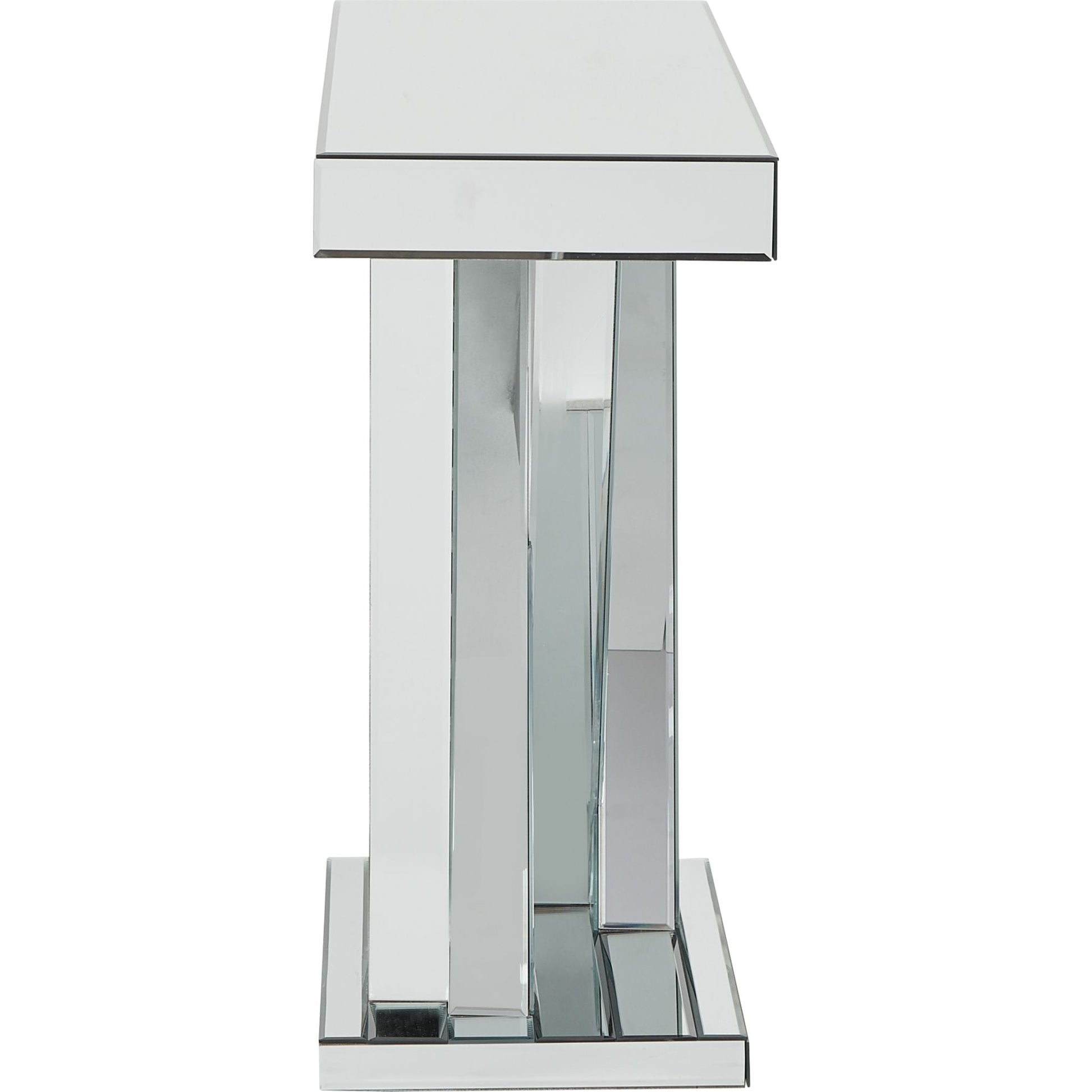 Dynamique et raffinée, la console Gillrock ne manquera pas de faire sensation. Son design géométrique en miroir biseauté est unique et contemporain. Avec ses pieds entrecroisés ornés de perles métalliques qui ajoutent une touche d'éclat, cette console est l'élément parfait pour sublimer n'importe quelle pièce.