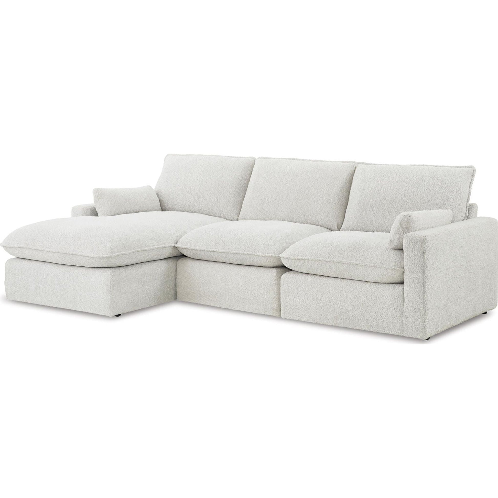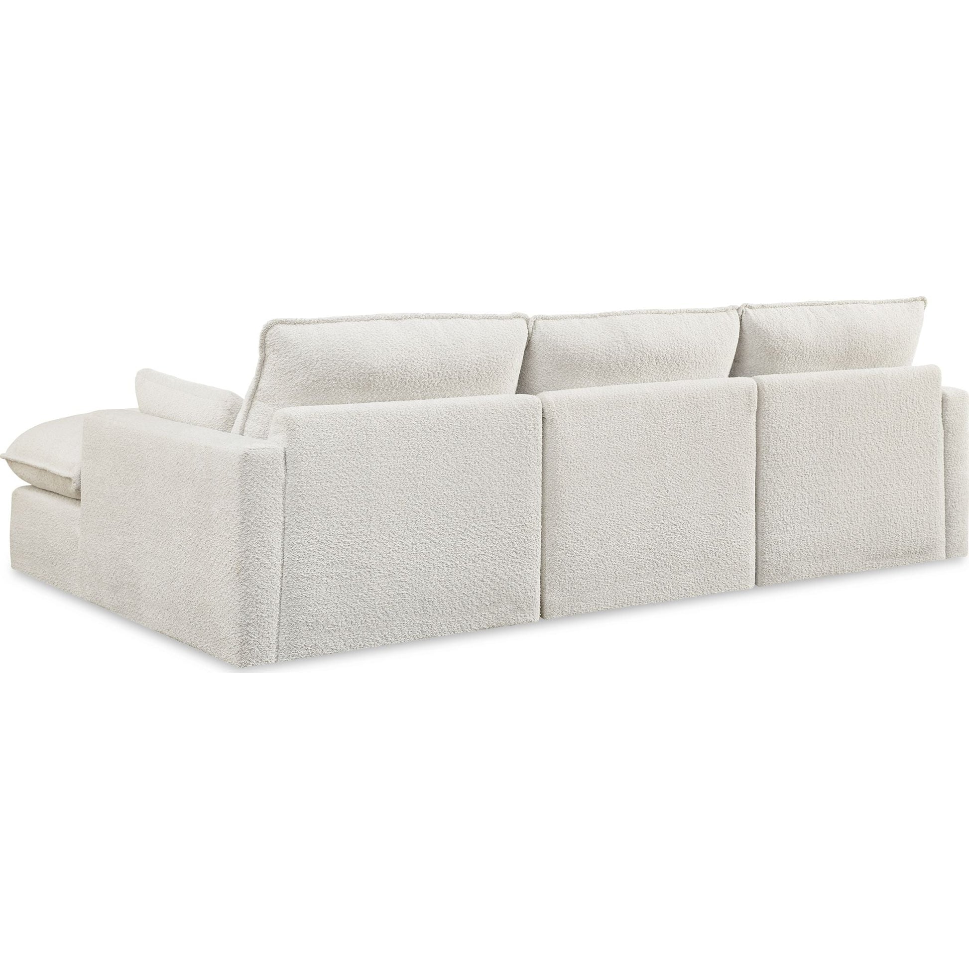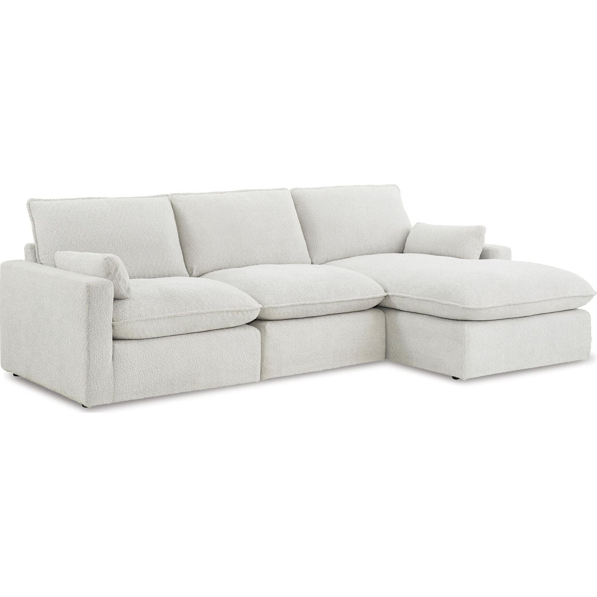 Détendez-vous dans un confort absolu avec le canapé d'angle Gimma, au design audacieux et doté d'une méridienne. Son revêtement neutre est rehaussé d'une touche spectaculaire grâce à un passepoil et un tissage bouclé. Coussins moelleux en mélange de plumes et de fibres, assises profondes et accoudoirs tendance : un confort douillet allié à une esthétique contemporaine.