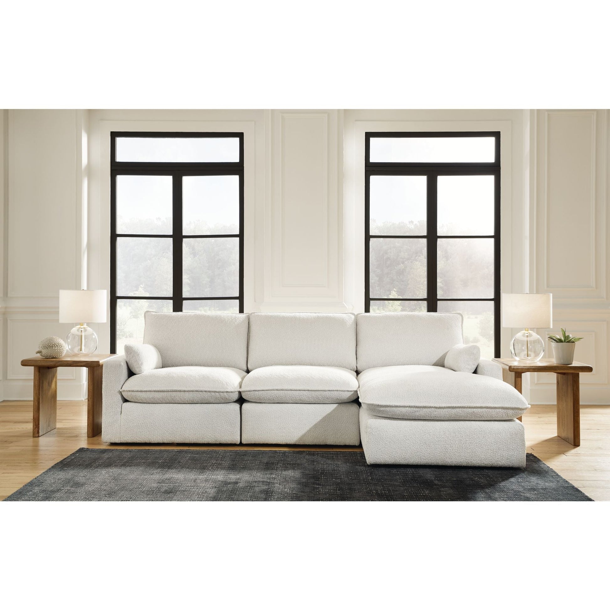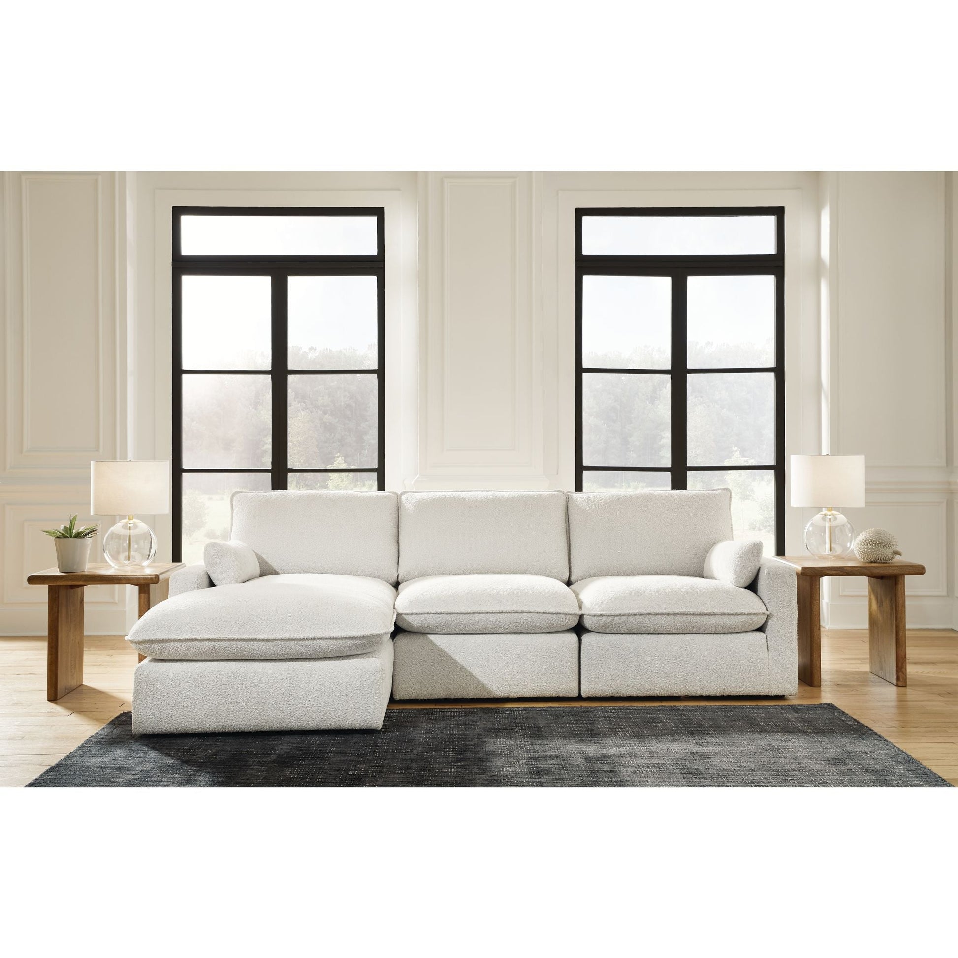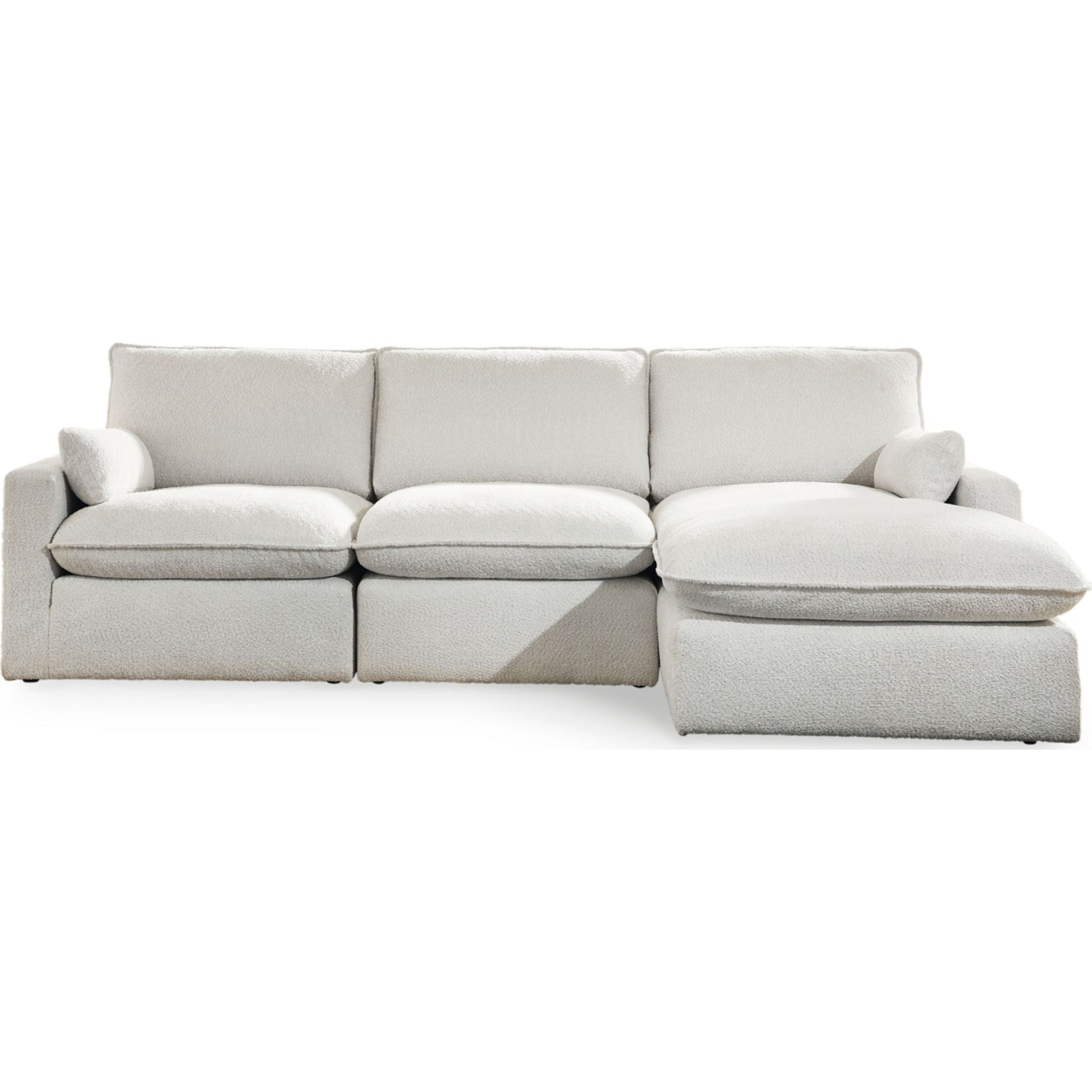 Détendez-vous dans un confort absolu avec le canapé d'angle Gimma, au design audacieux et doté d'une méridienne. Son revêtement neutre est rehaussé d'une touche spectaculaire grâce à un passepoil et un tissage bouclé. Coussins moelleux en mélange de plumes et de fibres, assises profondes et accoudoirs tendance : un confort douillet allié à une esthétique contemporaine.