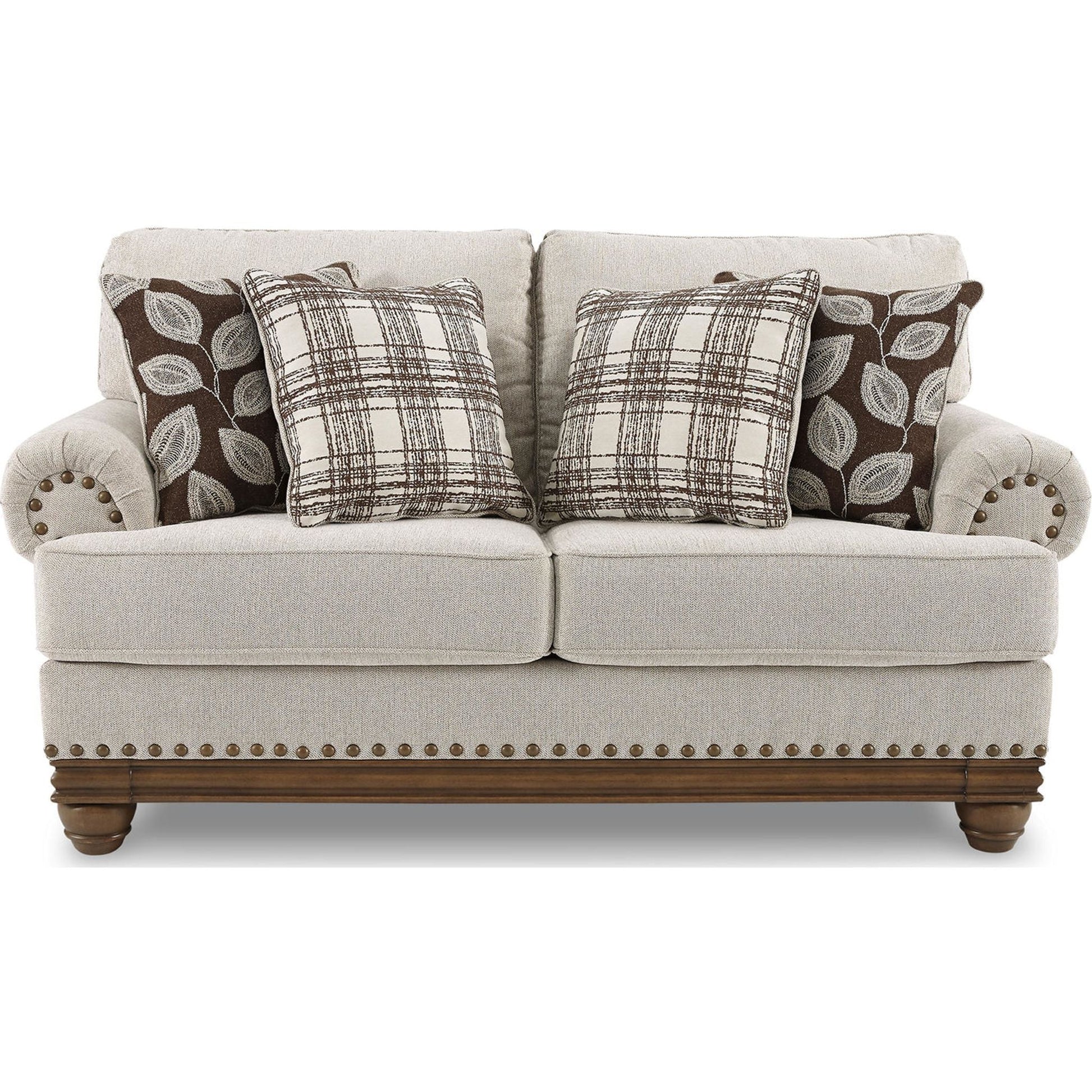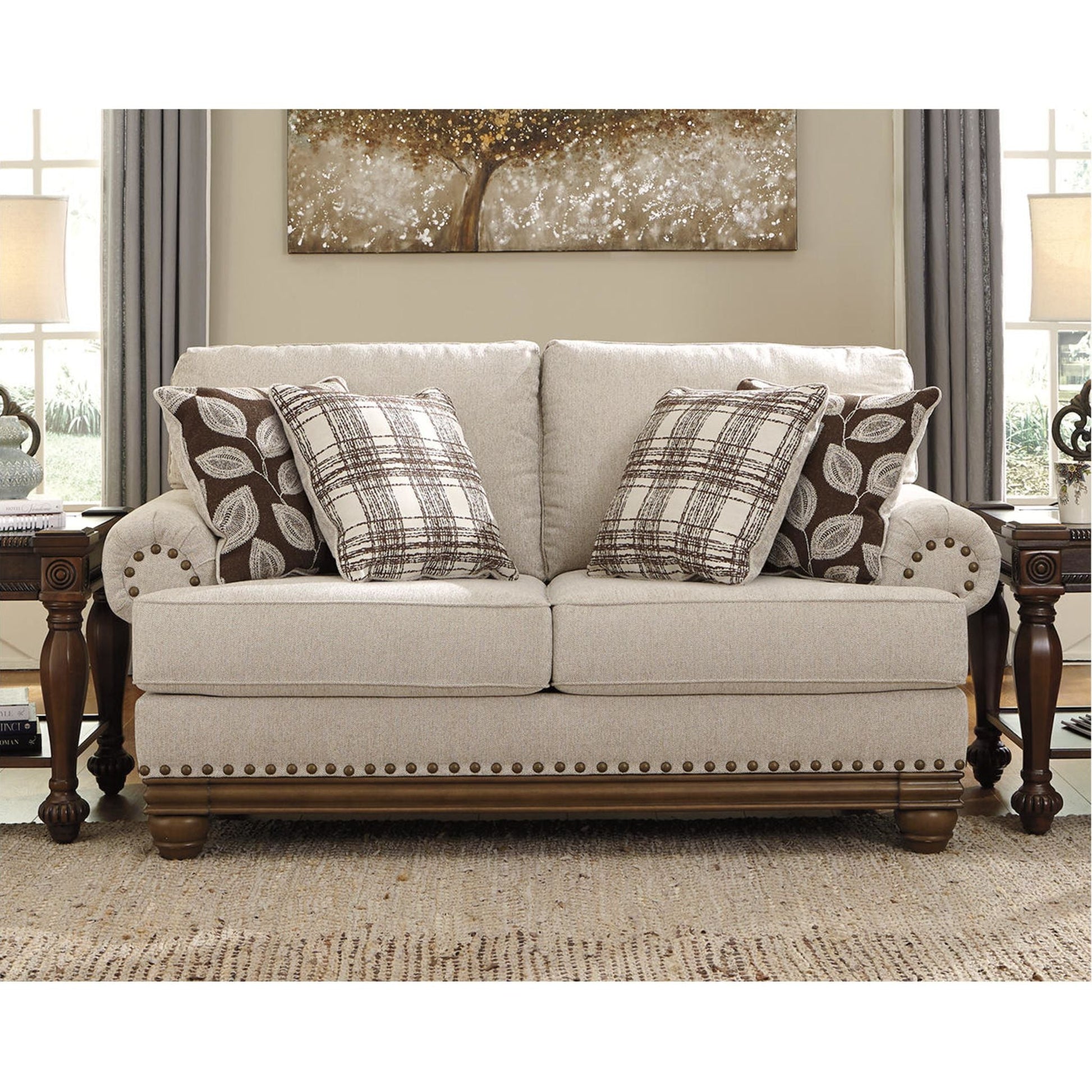 Le canapé deux places Harleson incarne un véritable classique. Ses accoudoirs plissés et arrondis, sa structure apparente brun chaud et ses pieds boule lui confèrent une élégance traditionnelle. De jolis détails se retrouvent dans le tissage à chevrons du revêtement doux. Les coussins d'assise sont réversibles pour un confort durable. Une garniture cloutée de style vintage rehausse le design. Des coussins à carreaux et à motifs floraux brun foncé apportent une touche intemporelle.