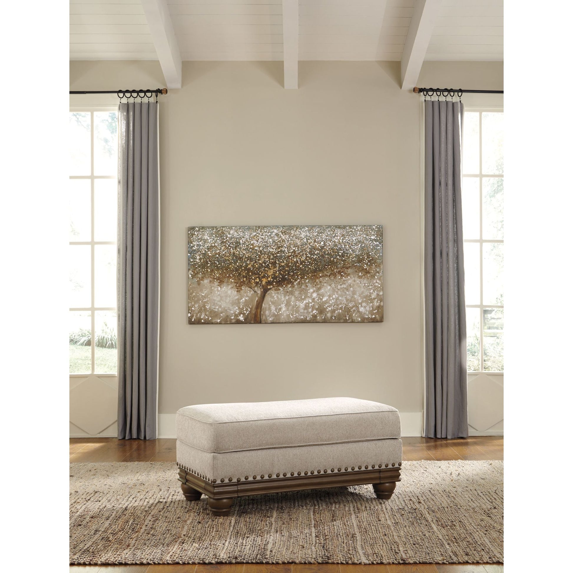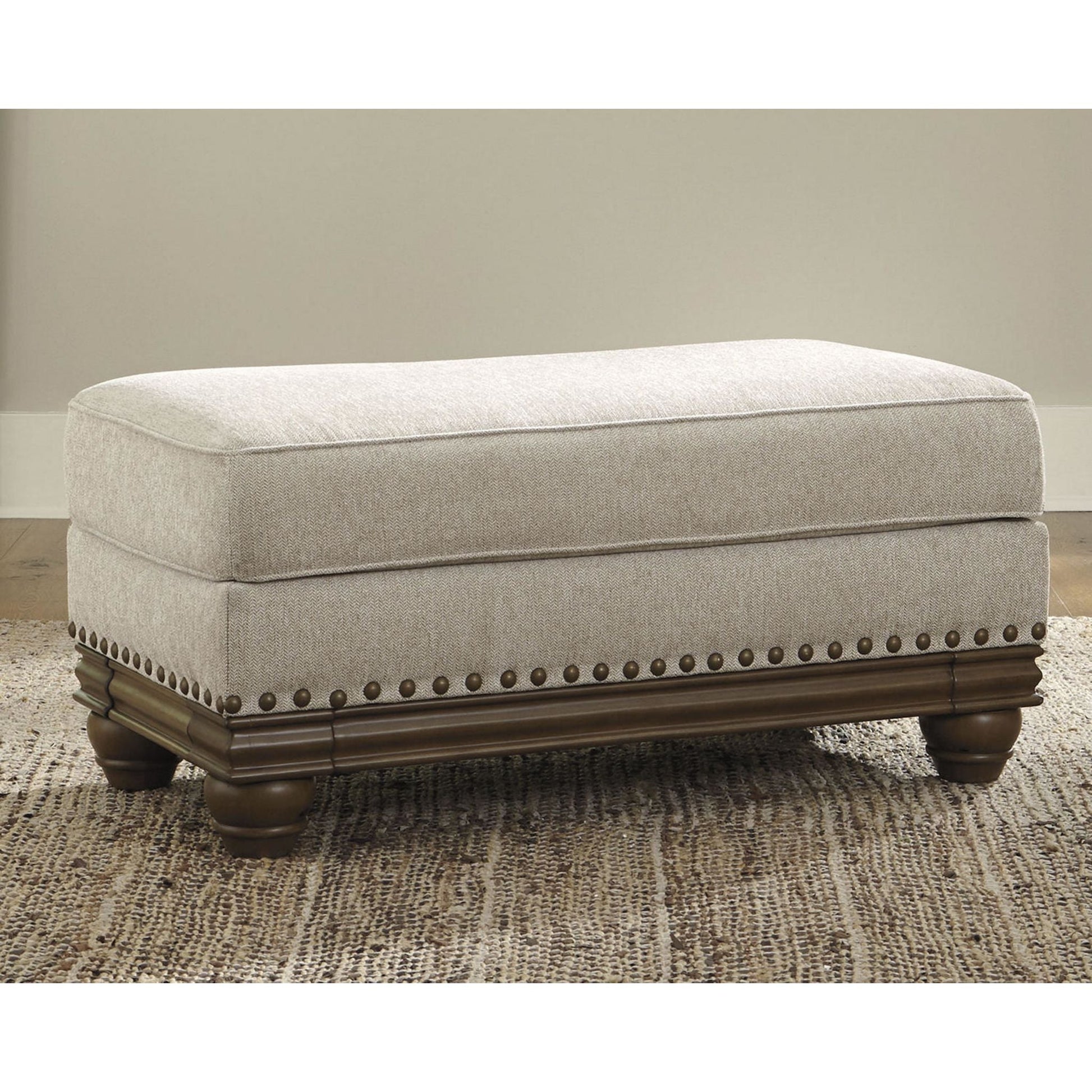 Ce pouf incarne un véritable classique. Sa structure apparente marron chaud, reposant sur des pieds boule, lui confère une élégance traditionnelle. De jolis détails se retrouvent dans le tissage à chevrons du doux revêtement. Sa teinte neutre permet de l'associer à n'importe quelle couleur. Une garniture de clous décoratifs de style vintage orne l'ensemble.