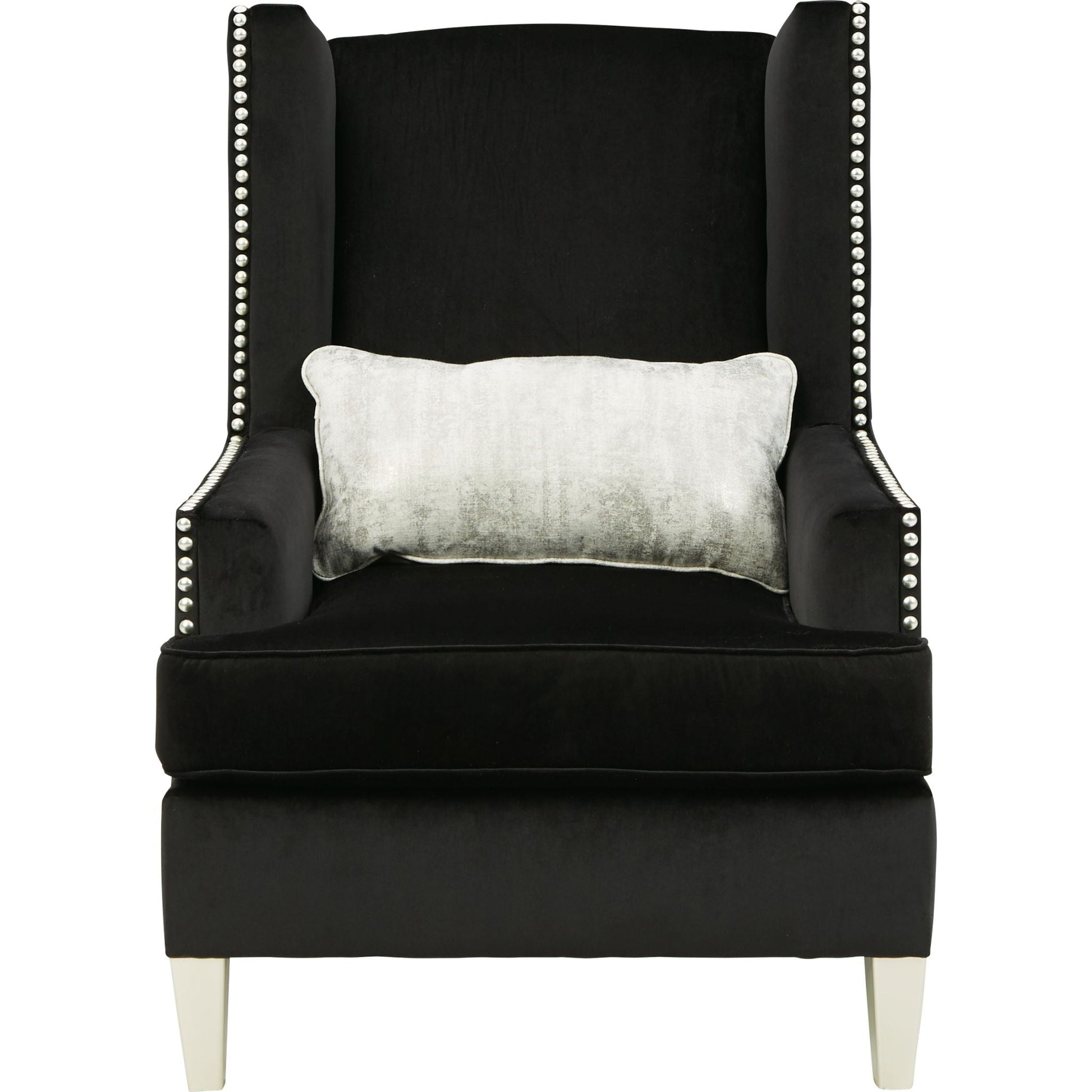 Un style digne des Oscars ! Inspiré du style Hollywood Regency, le superbe fauteuil d'appoint Harriotte, revêtu d'un tissu noir, apporte glamour et raffinement à notre intérieur. Son dossier à oreilles et ses clous décoratifs lui confèrent une élégance classique. Ses pieds tournés, à la finition argentée éclatante, complètent à merveille son allure. Bravo !