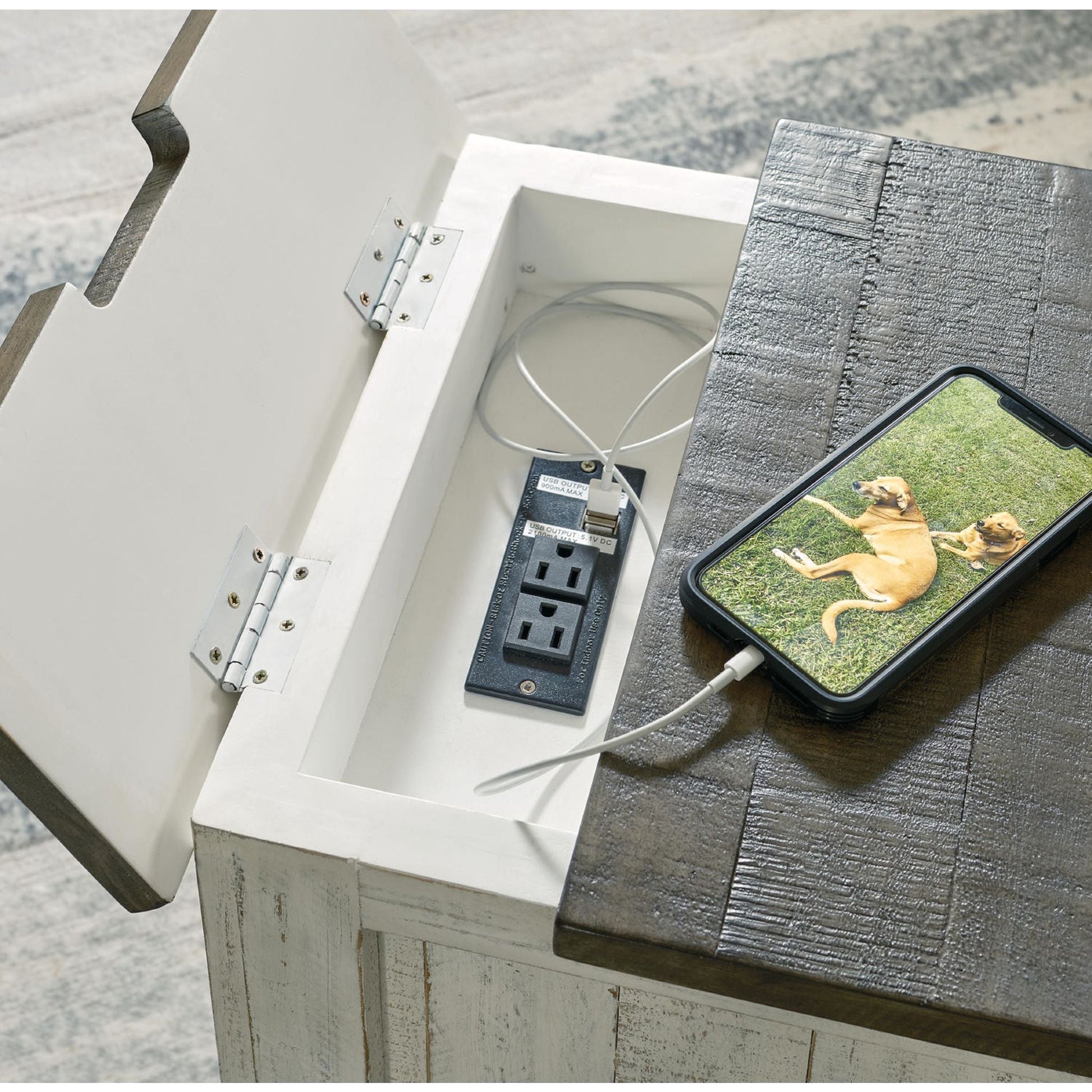 Quelle réinterprétation moderne du style champêtre classique ! Inspirée du savoir-faire des fermes américaines, mais avec une touche d'élégance, la table d'appoint Havalance allie des détails distinctifs, tels que des montants tournés et des portes à charnières, pour un style affirmé qui s'intègre parfaitement à votre intérieur. Les amateurs de charme rustique apprécieront la moulure épaisse de la table, sublimée par une finition bicolore vintage. Un petit couvercle rabattable dissimule une prise électrique et des ports USB, permettant de garder vos appareils électroniques chargés et à portée de main.