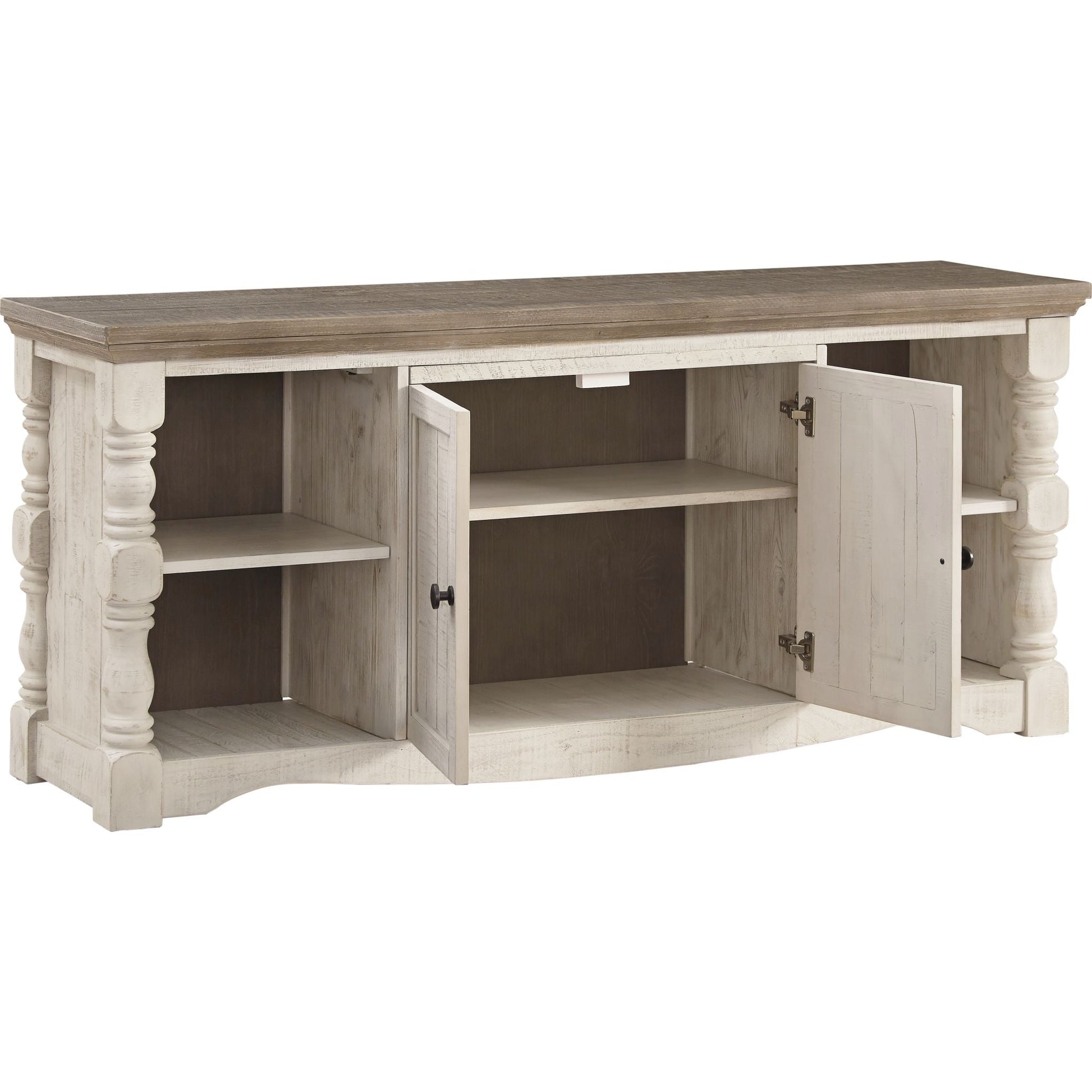 Adoptez un style campagnard moderne avec le meuble TV Havalance. Son traitement bicolore vieilli associe un gris patiné à un blanc vintage pour un effet absolument charmant. Les montants tournés lui confèrent une allure robuste et imposante qui s'intègre parfaitement à votre intérieur, tandis que les nombreuses étagères ouvertes allègent l'ensemble.