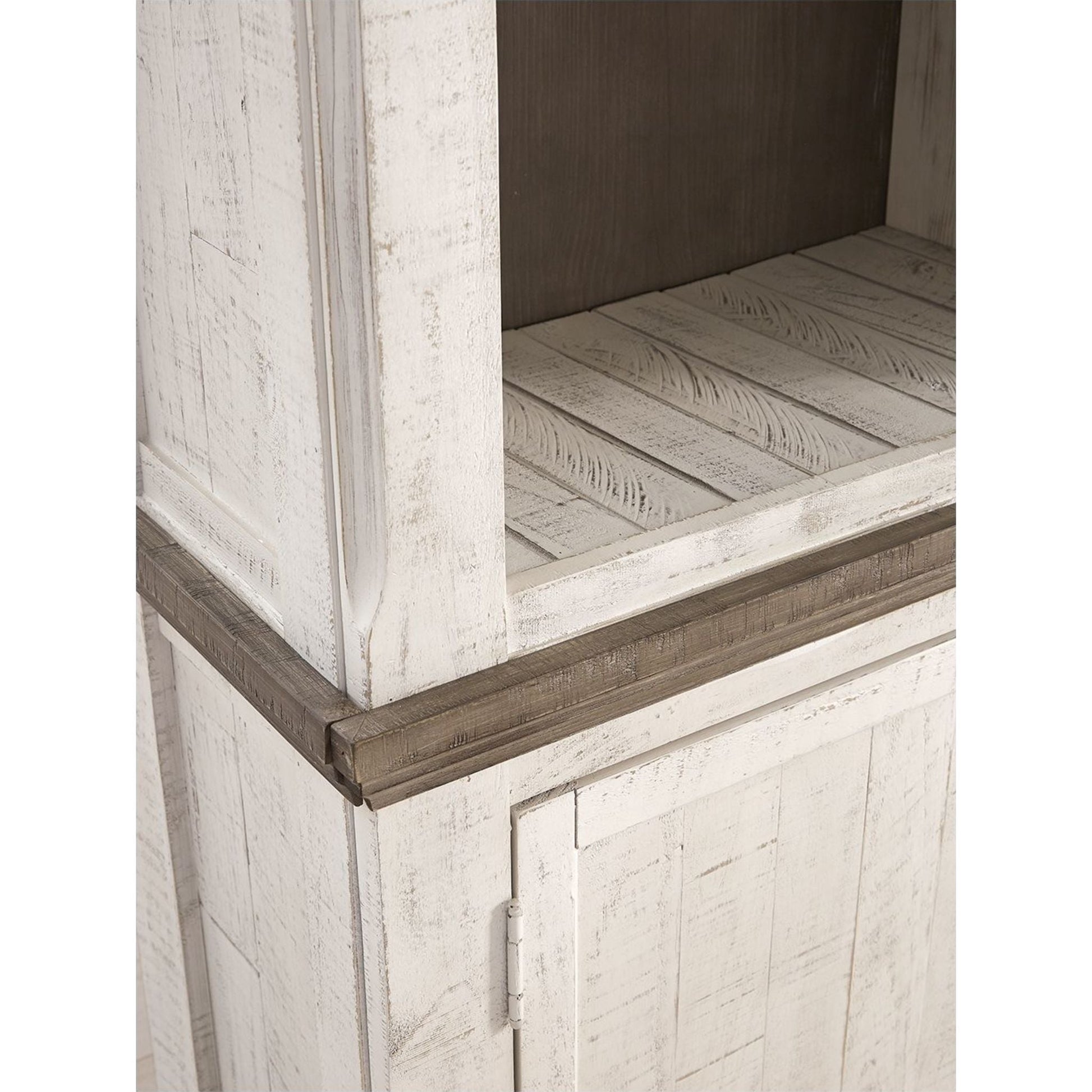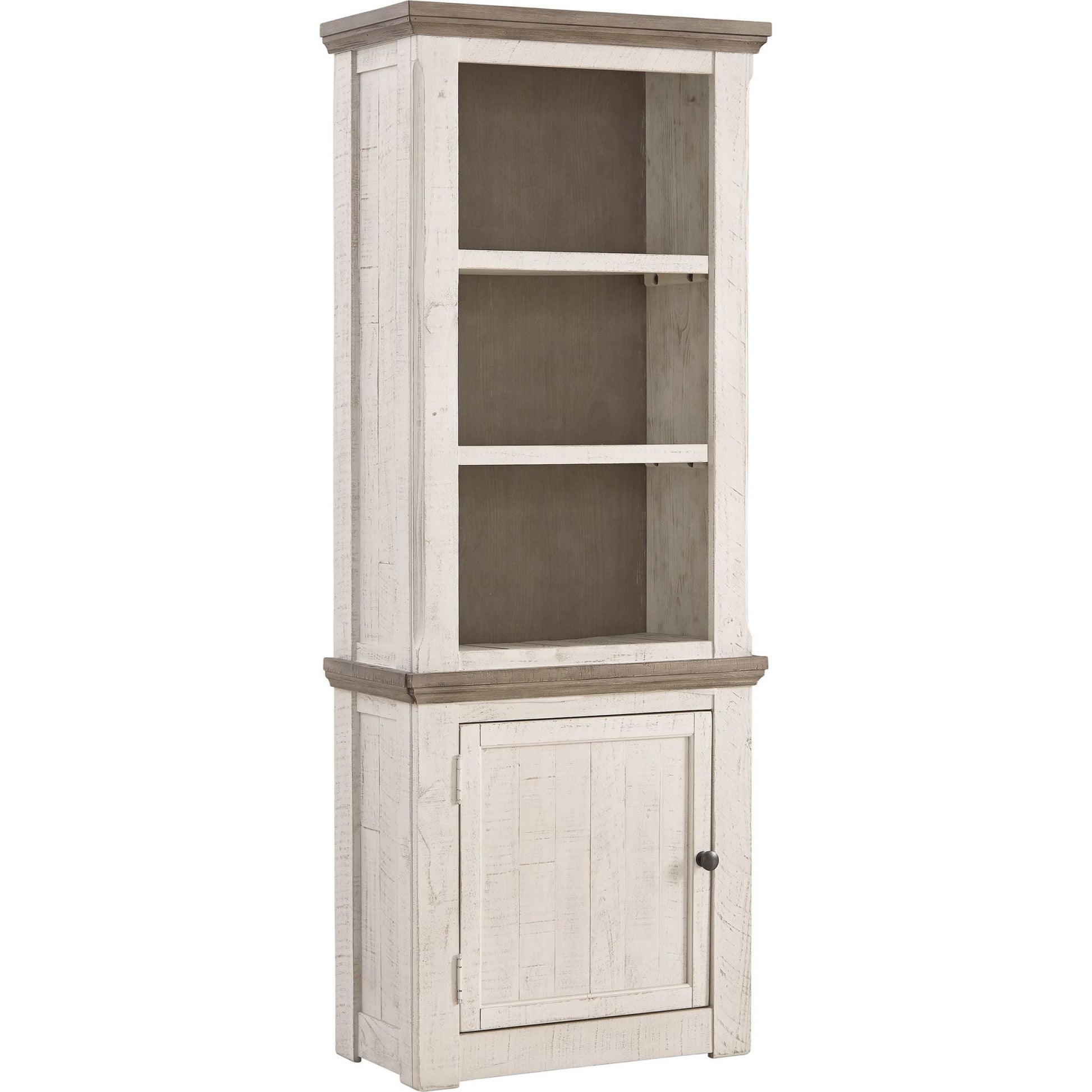 Adoptez un style champêtre moderne avec le meuble Havalance. Son traitement bicolore vieilli associe un gris patiné à un blanc vintage pour un effet absolument charmant. Les montants tournés lui confèrent une allure robuste et imposante qui s'intègre parfaitement à votre intérieur, tandis que trois étagères ouvertes et un placard répondent à tous vos besoins de rangement.
