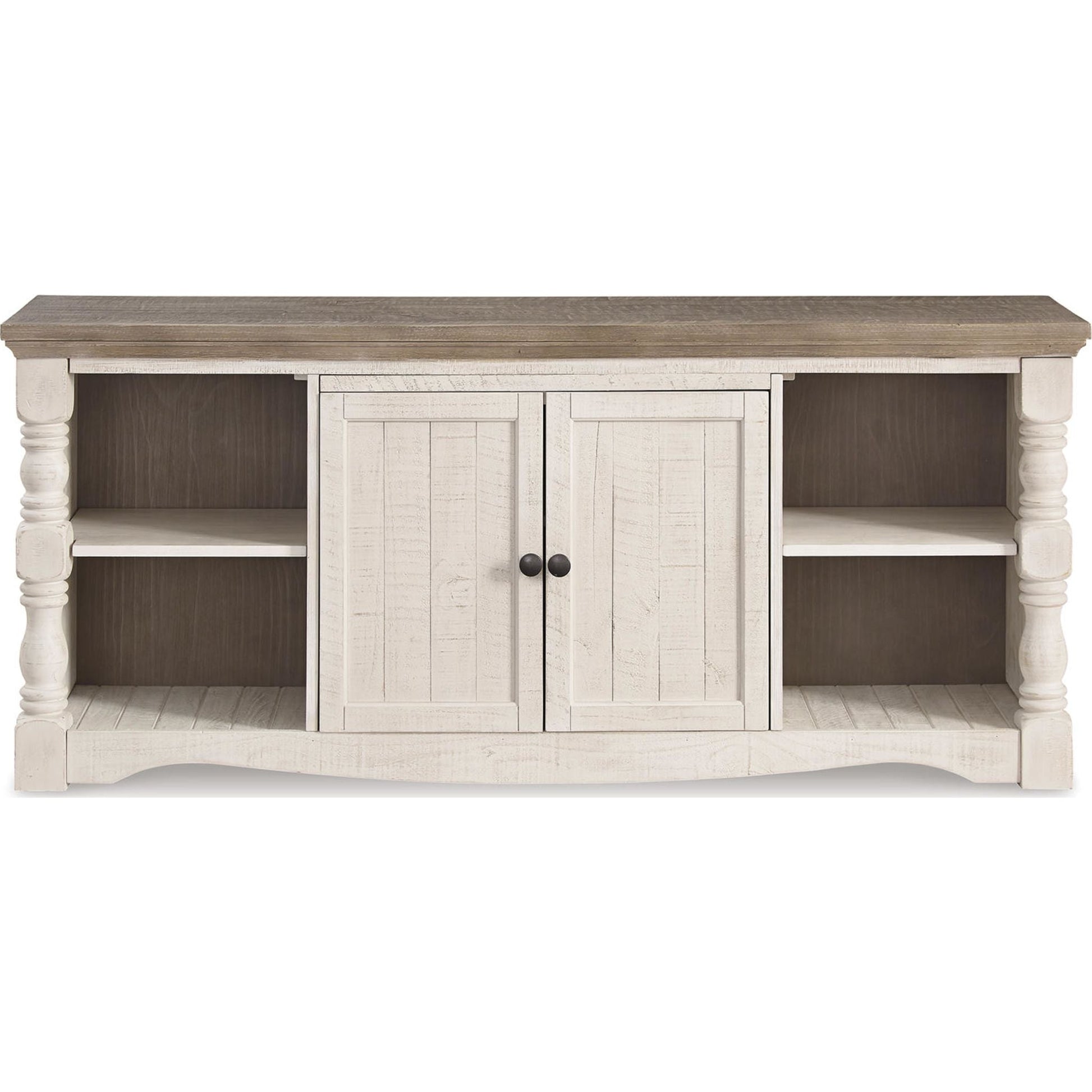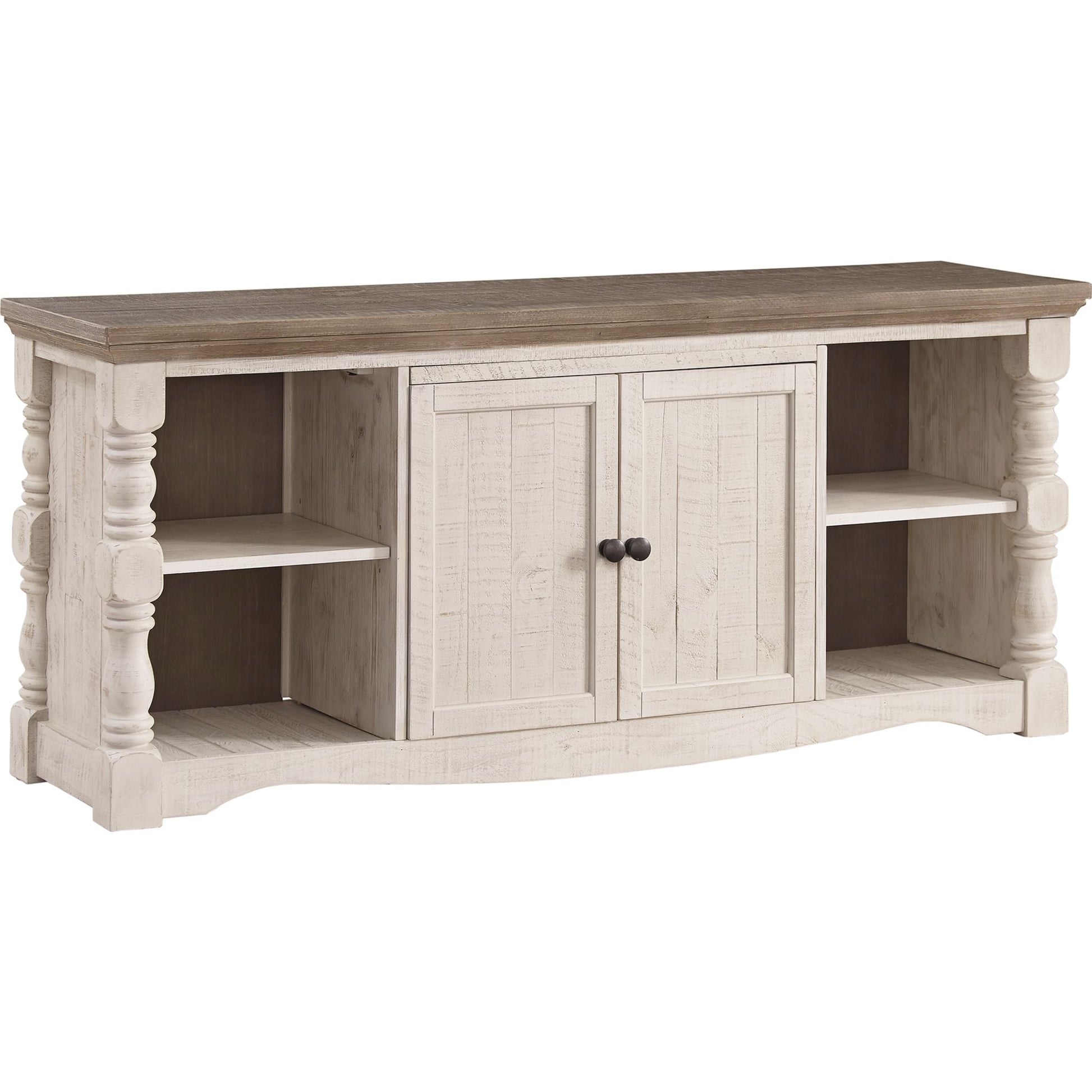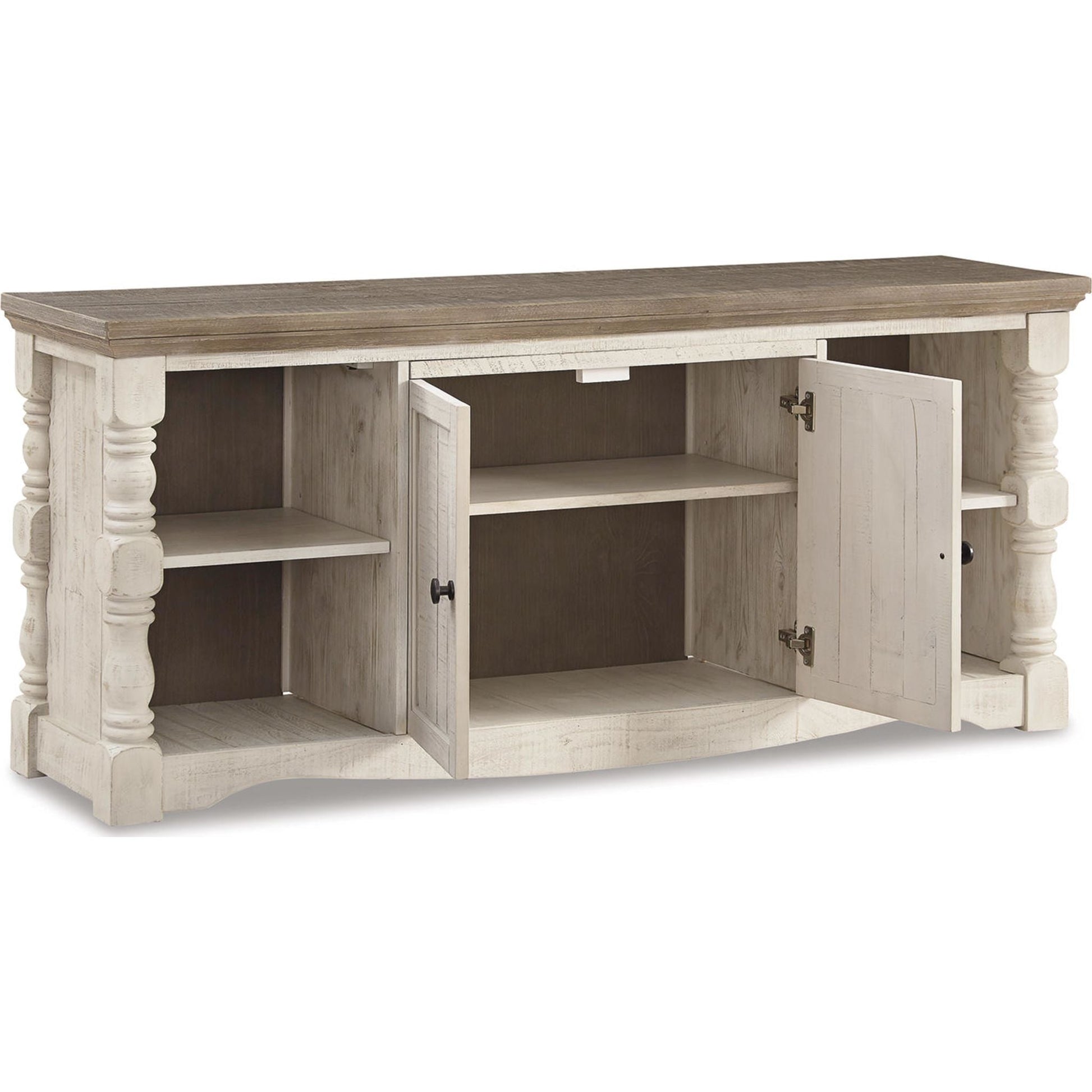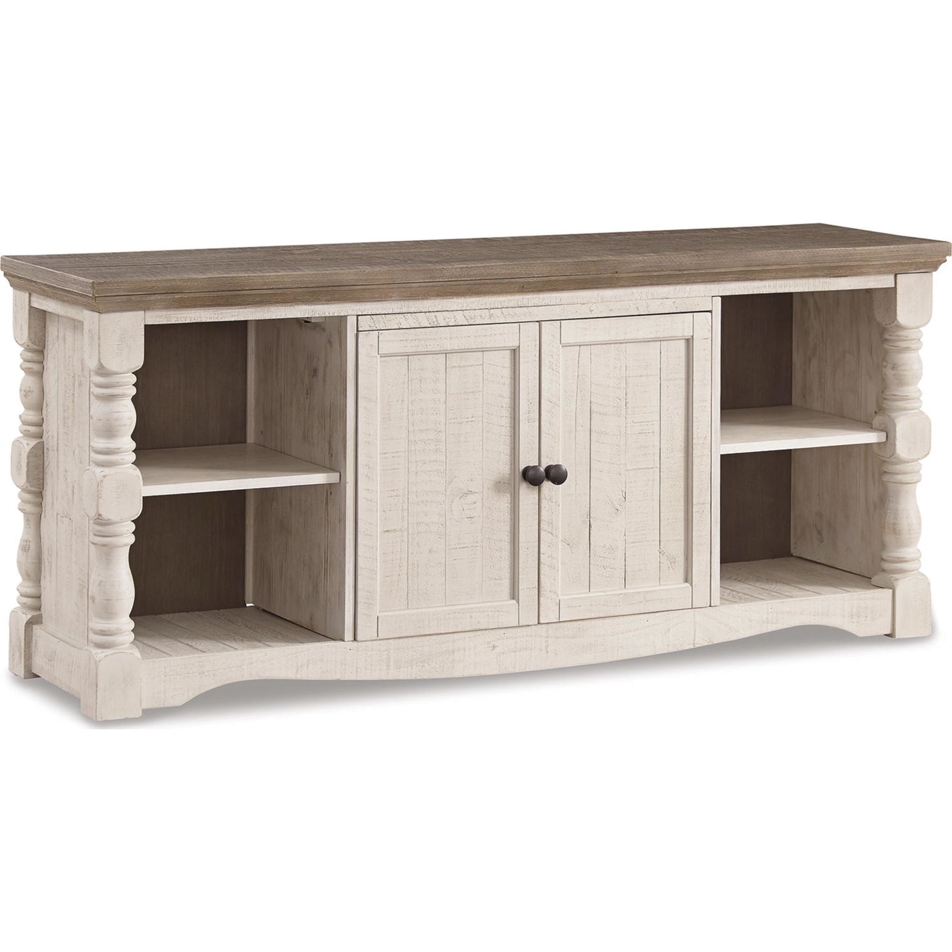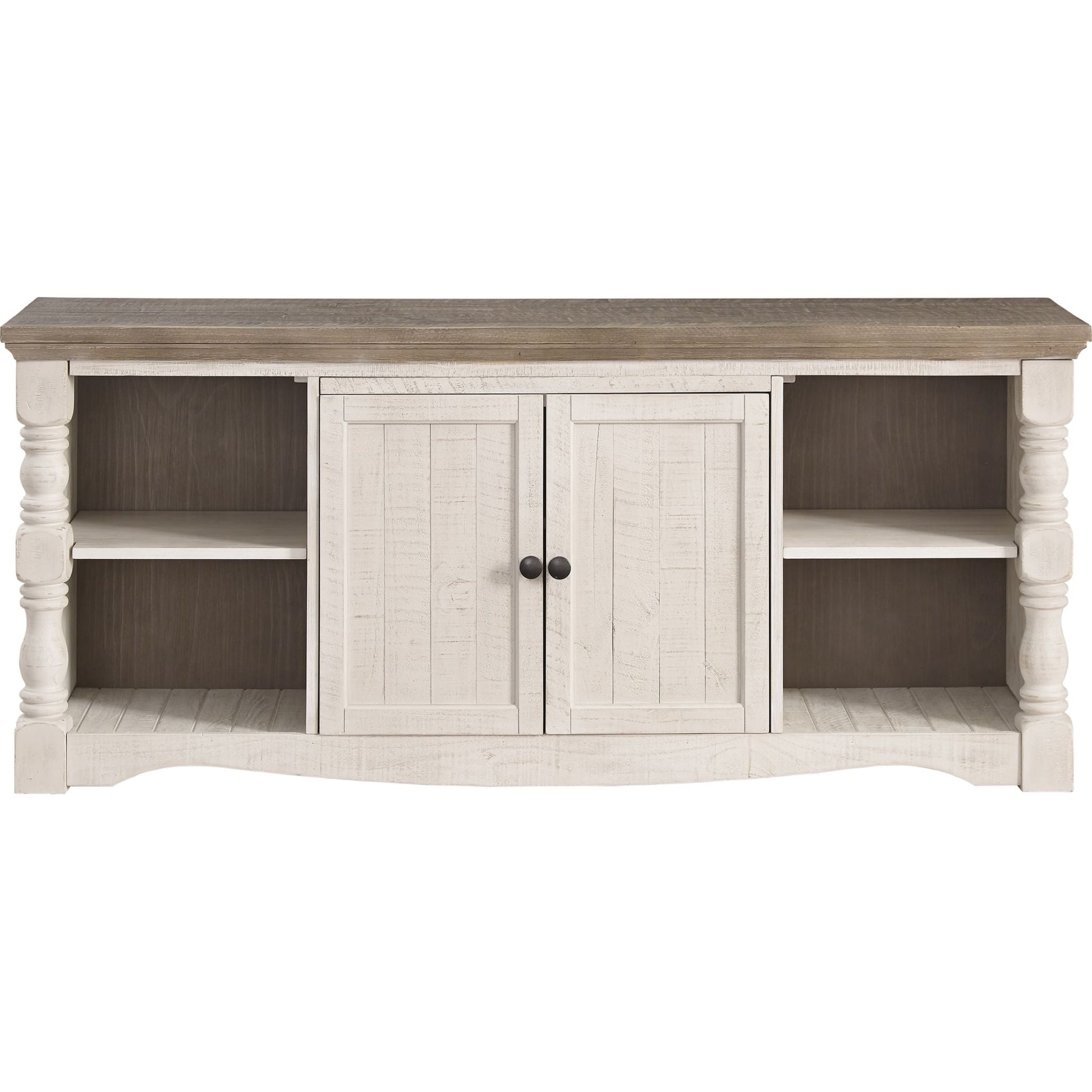 Adoptez un style campagnard moderne avec le meuble TV Havalance XL. Son traitement bicolore vieilli associe un gris patiné à un blanc vintage pour un effet absolument charmant. Les montants tournés lui confèrent une allure robuste et imposante qui s'intègre parfaitement à votre intérieur, tandis que les nombreuses étagères ouvertes allègent l'ensemble.
