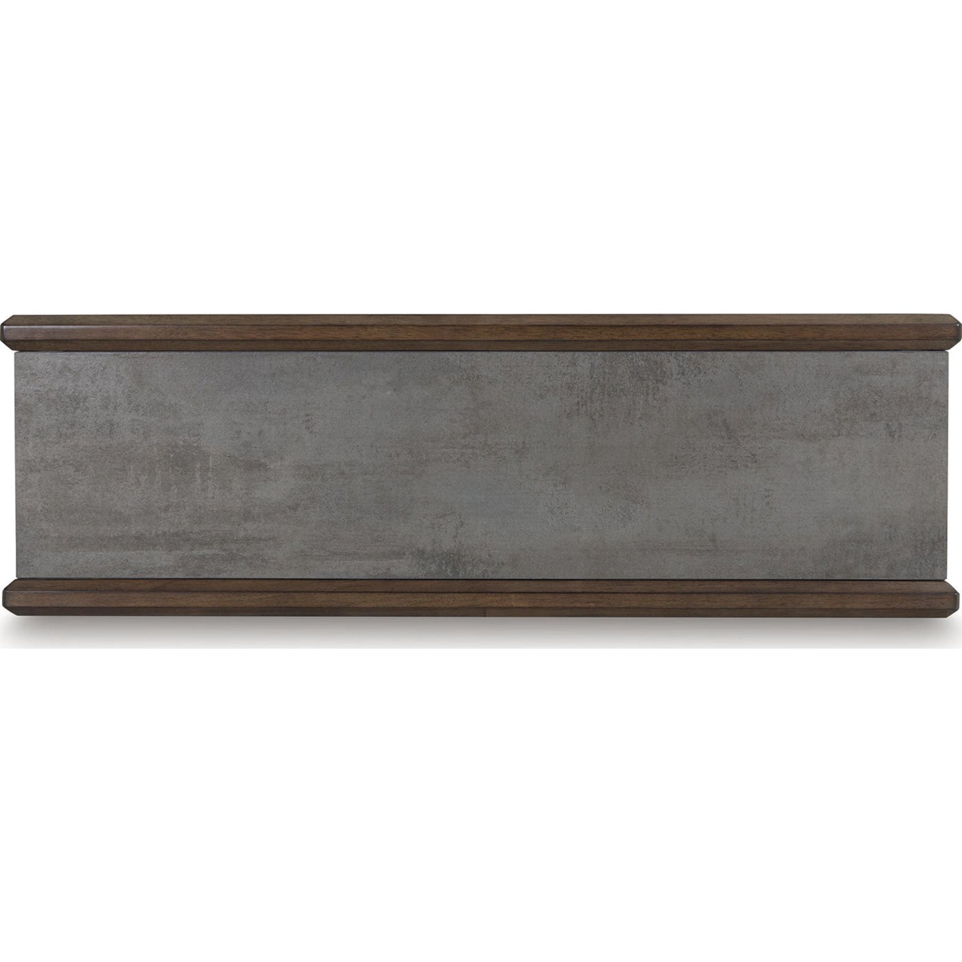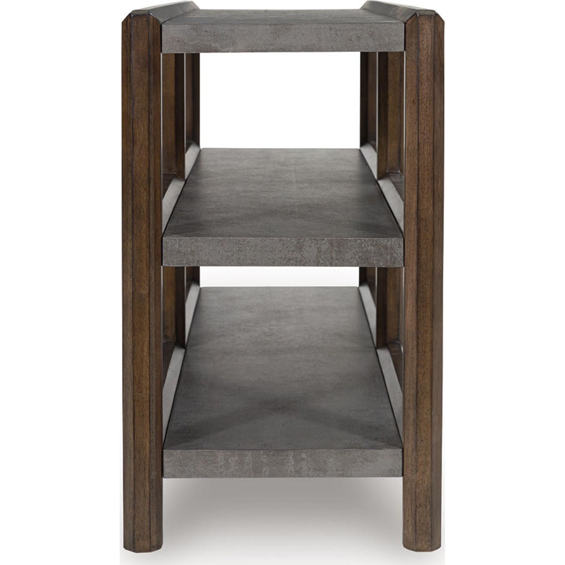 Maîtrisez l'art du mélange des matériaux avec la table basse Kallenny. Son style urbain affirmé associe un effet ciment à une finition brun foncé contrastante, lui conférant une touche industrielle. Pratiques et élégantes, ses étagères inférieures mettent en valeur vos objets de décoration. Enfin, ses moulures latérales travaillées ajoutent une note de caractère.