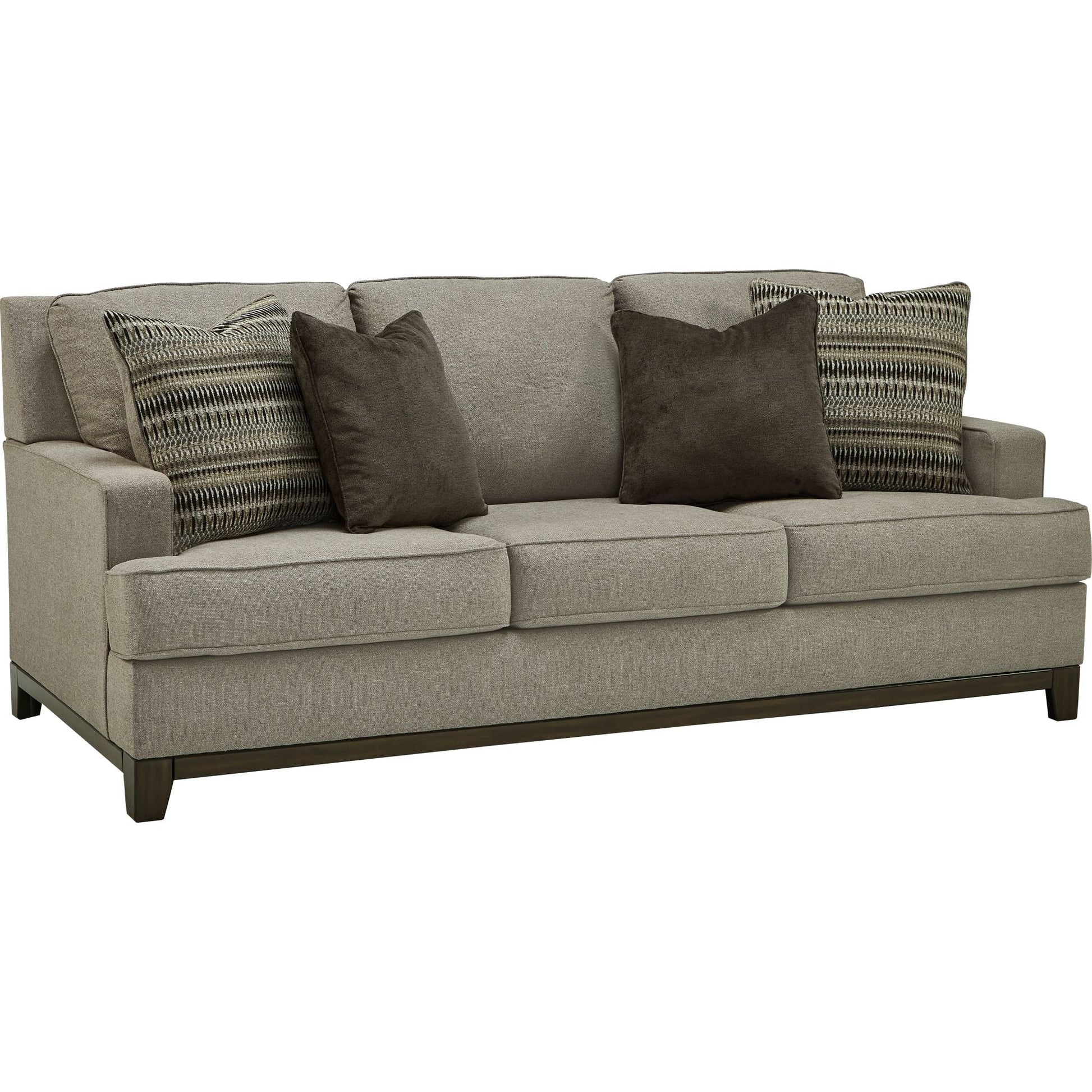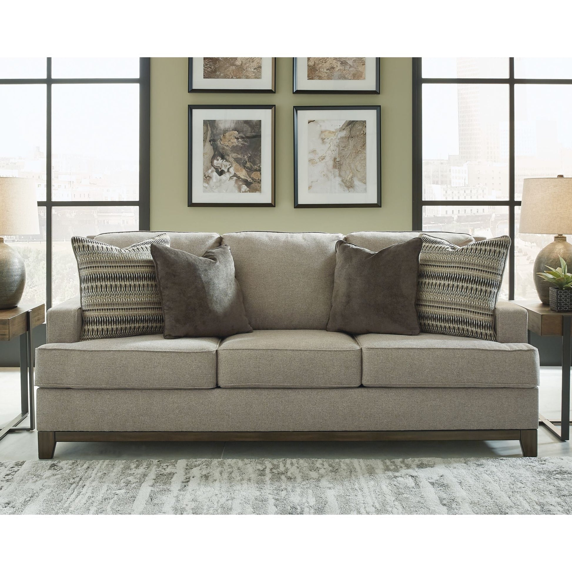 Que votre style soit classique américain, contemporain ou un mélange éclectique, le canapé Kaywood, d'une grande polyvalence, trouvera assurément sa place dans votre intérieur. Parmi ses atouts, on note une traverse apparente, des coussins décoratifs design et un somptueux revêtement tissé dans une riche teinte neutre, inspirée des costumes masculins.