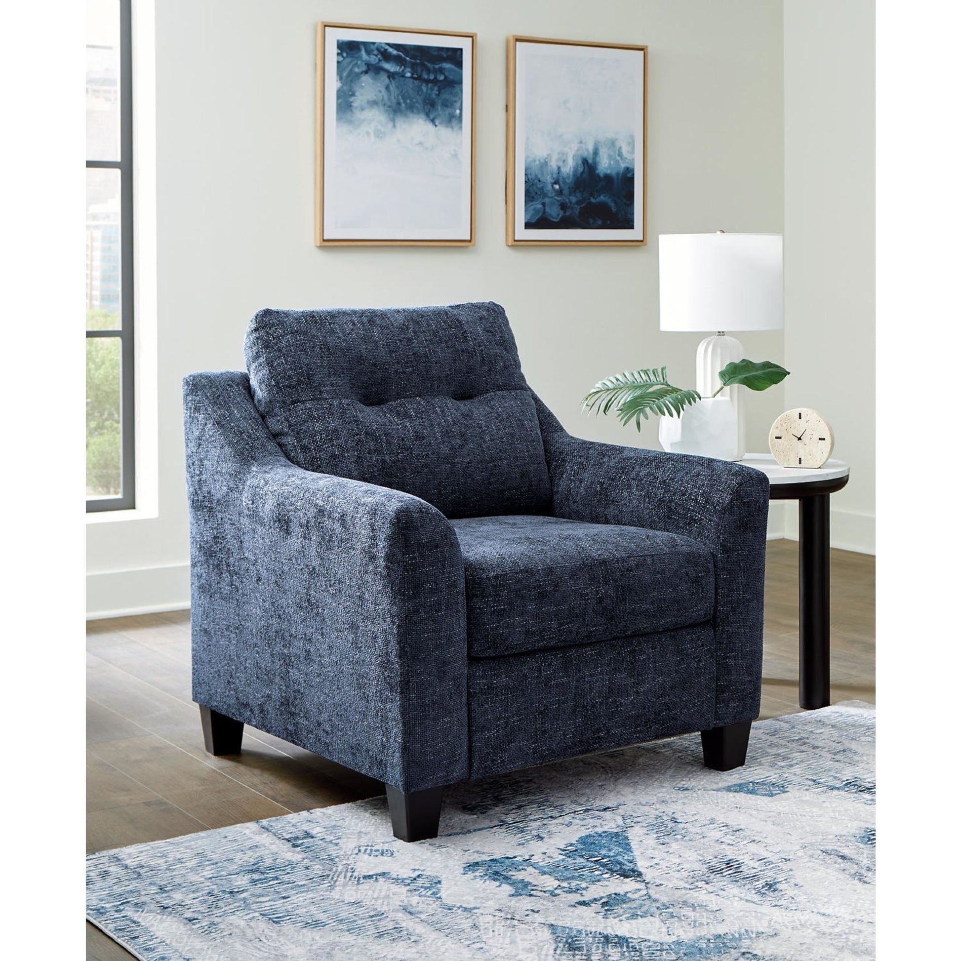 Découvrez un confort luxueux avec le fauteuil contemporain Keenelynn. Son revêtement doux au toucher et ses accoudoirs légèrement évasés créent une ambiance raffinée et décontractée, tandis que sa couleur vibrante rehausse instantanément votre décoration moderne. Avec son assise généreuse, il est idéal pour se détendre après une longue journée. Qui a dit que les meubles ne pouvaient pas être aussi confortables qu'élégants ?