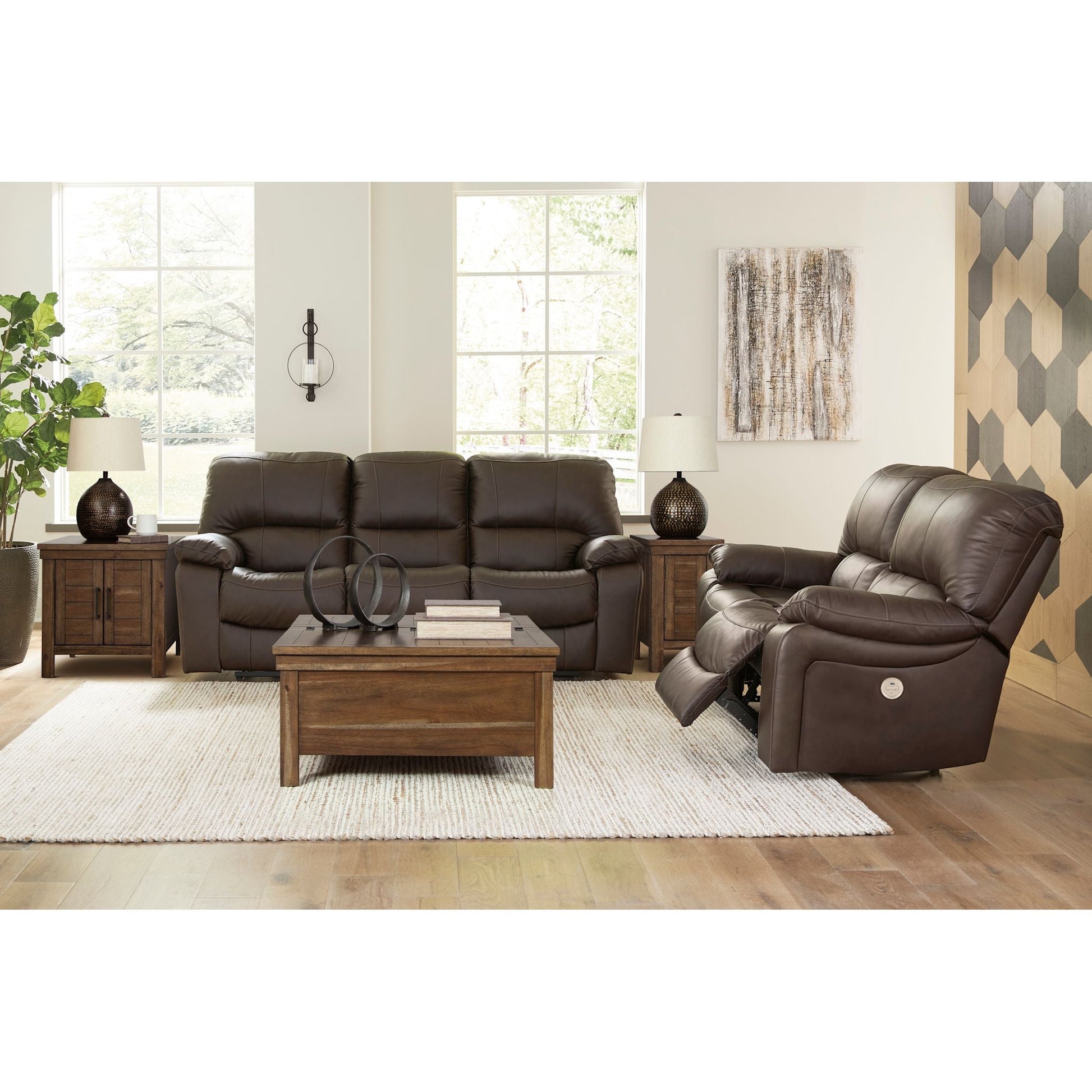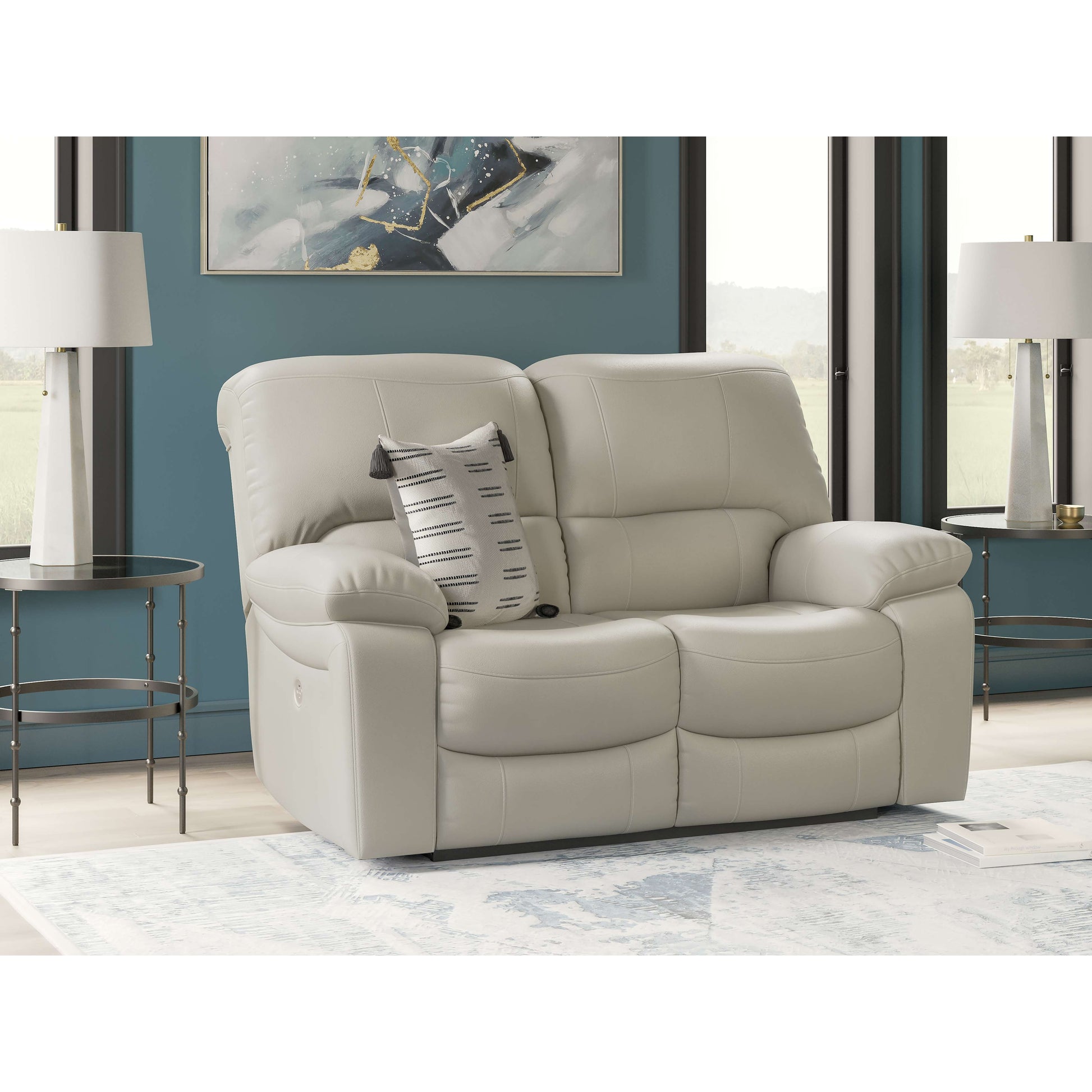 Misez sur la fonctionnalité. Ce canapé inclinable électrique deux places allie style contemporain et confort irrésistible. Son revêtement en cuir et similicuir, à la fois abordable et parfaitement assorti, vous permet de rester à la pointe de la mode sans vous ruiner. S'inclinant d'une simple pression sur un bouton, il s'intègre harmonieusement dans des espaces de détente luxueux, propices aux moments de convivialité.
