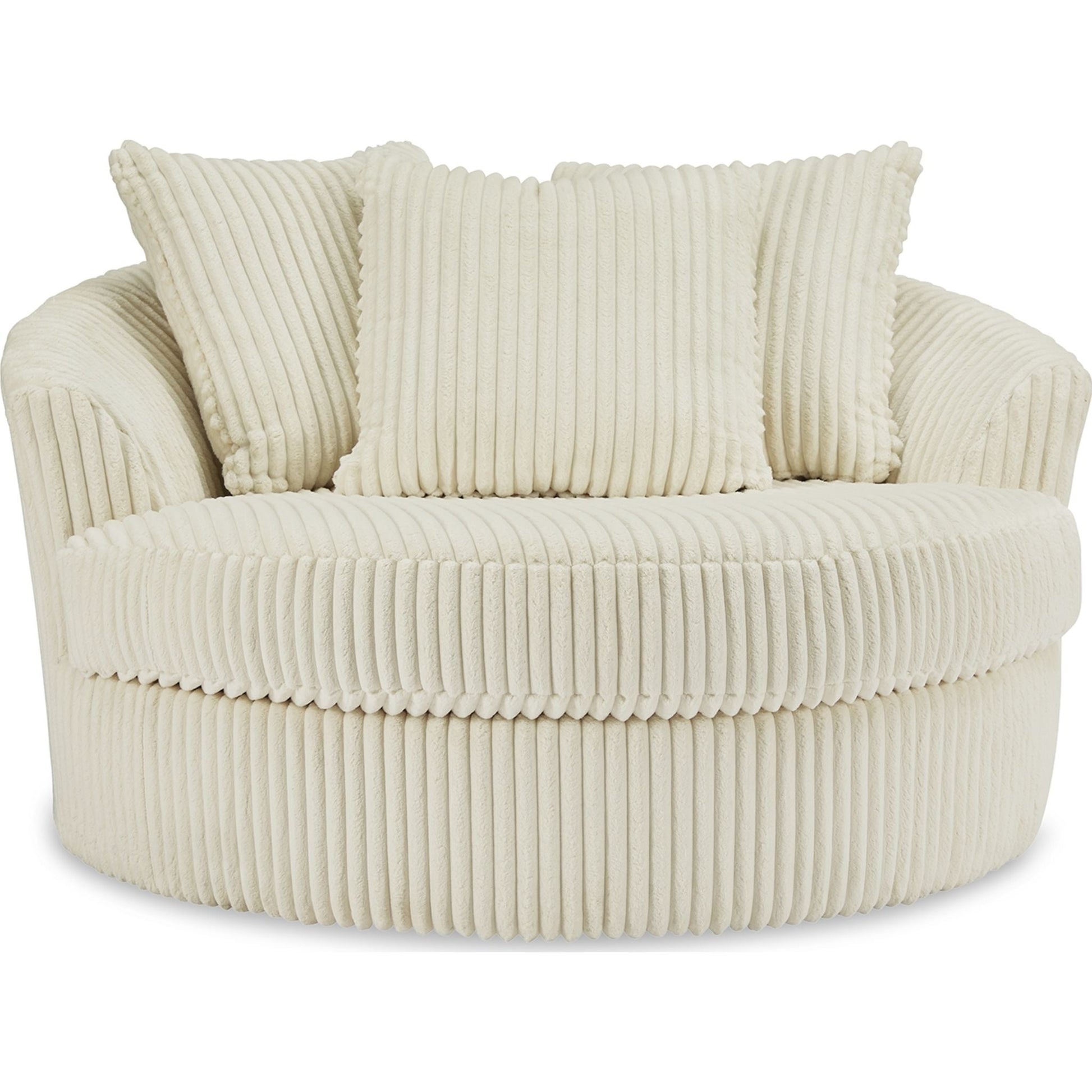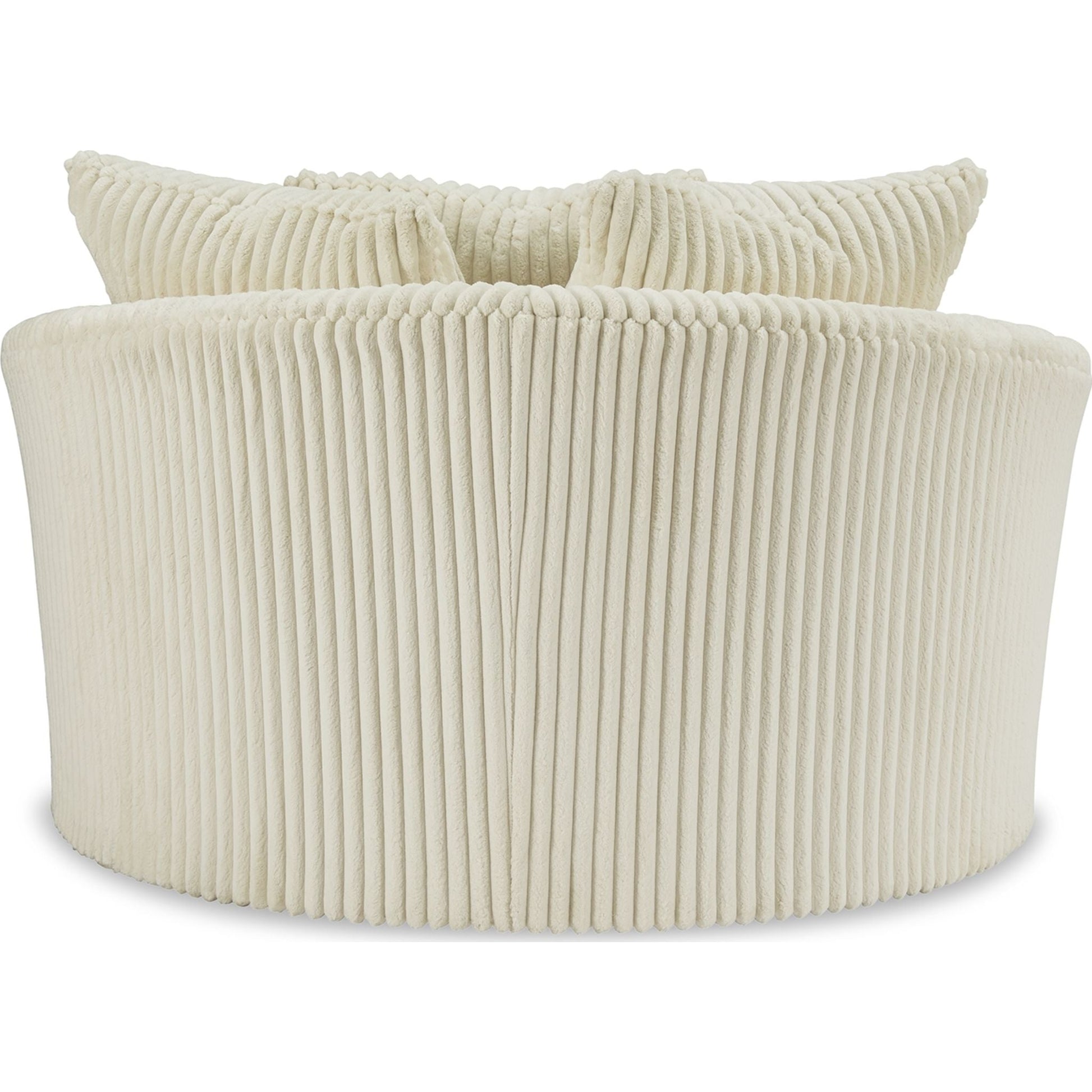 Luxueux et raffiné. Affirmez votre goût pour les textures tendance avec le revêtement en velours côtelé du fauteuil pivotant surdimensionné Lindyn. Son tissu d'une douceur incomparable, couleur ivoire, s'harmonise avec les palettes de couleurs contemporaines. Installez-vous confortablement sur son coussin généreux et profitez d'un moment de détente : ce fauteuil douillet témoigne de votre conception haut de gamme du confort et du style.