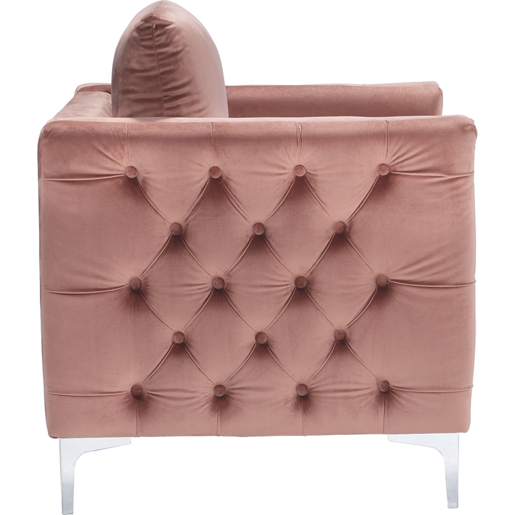 Mesdames, attention ! Nous vous avons réservé une place ! Le fauteuil Lizmont, d'un rose poudré somptueux, est un choix raffiné pour les intérieurs les plus contemporains. Ses lignes épurées, son capitonnage profond, son éclat argenté et son toucher velouté en font un accessoire de choix. Si vous recherchez le glamour absolu, ce fauteuil d'appoint au style sensationnel est fait pour vous.