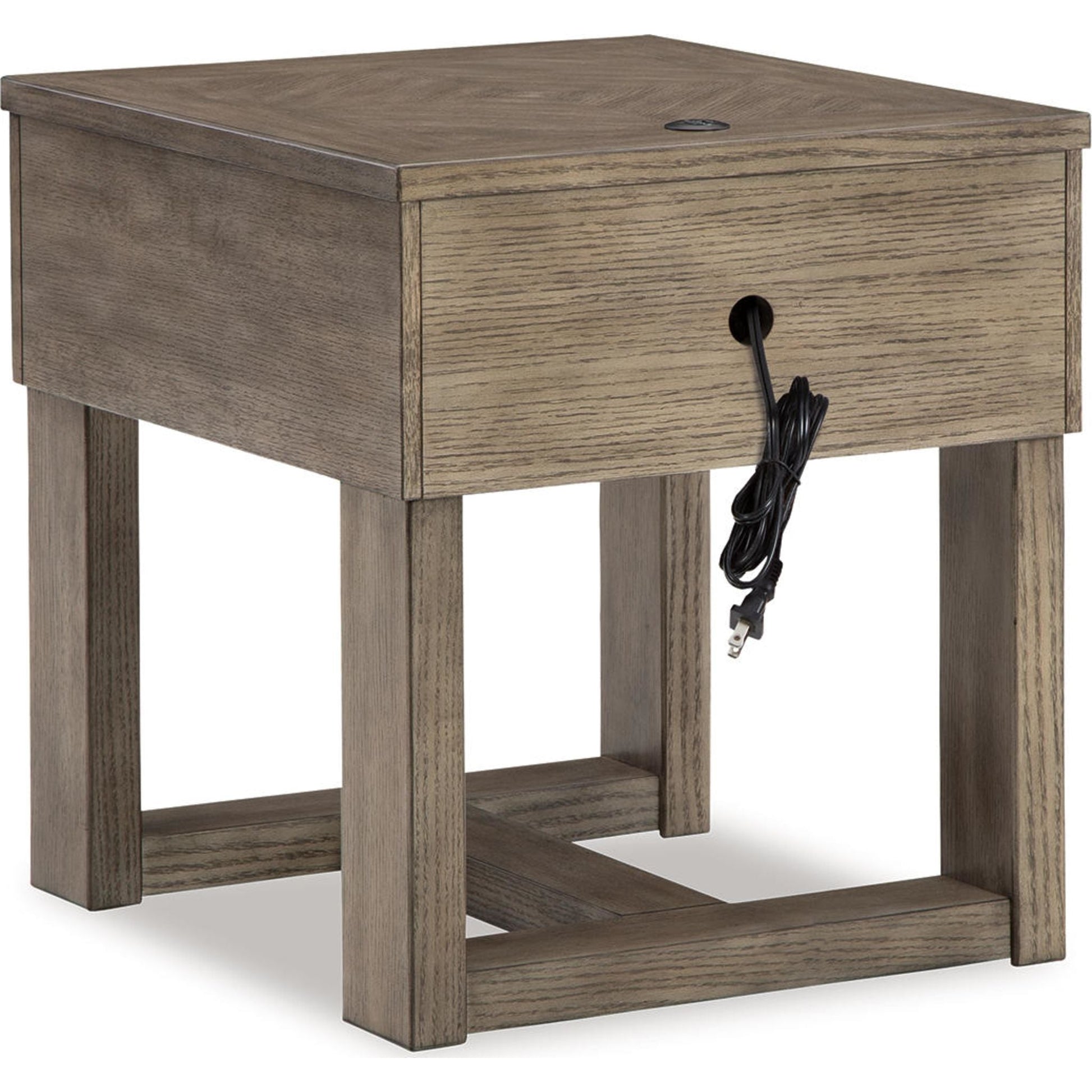 Accueillez dans votre intérieur un meuble à la fois décontracté, contemporain et fonctionnel. La table d'appoint Loyaska est particulièrement pratique pour ranger vos objets du quotidien à côté de votre canapé ou de votre fauteuil, et son port USB vous permet de recharger vos appareils en toute simplicité. Sa finition en bois brun grisâtre lui confère une allure apaisante, idéale après une longue journée.