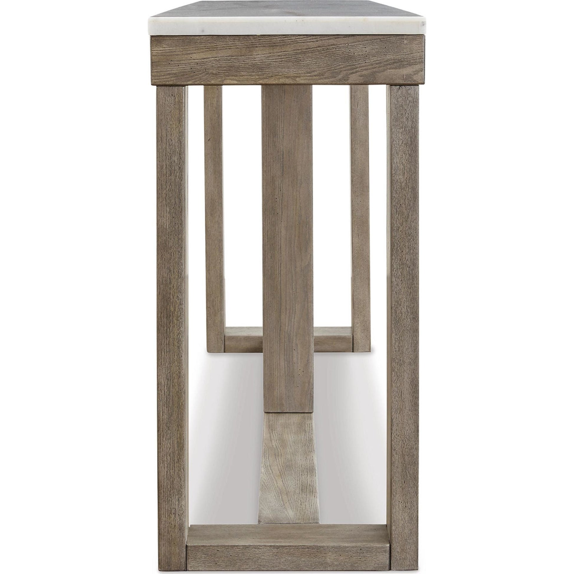 Cette console centrale, au design épuré, n'en est pas moins élégante. Sa finition en bois gris-brun, très tendance, associée à sa silhouette massive et à son plateau en marbre naturel, en fait un choix classique et intemporel. Elle se marie parfaitement avec un pouf pour créer des assises supplémentaires ou se suffit à elle-même pour une touche de sobriété et de modernité. Les variations de couleur, les fissures, les dépôts minéraux et les veinures du marbre sont des caractéristiques naturelles qui ne constituent en aucun cas des défauts.