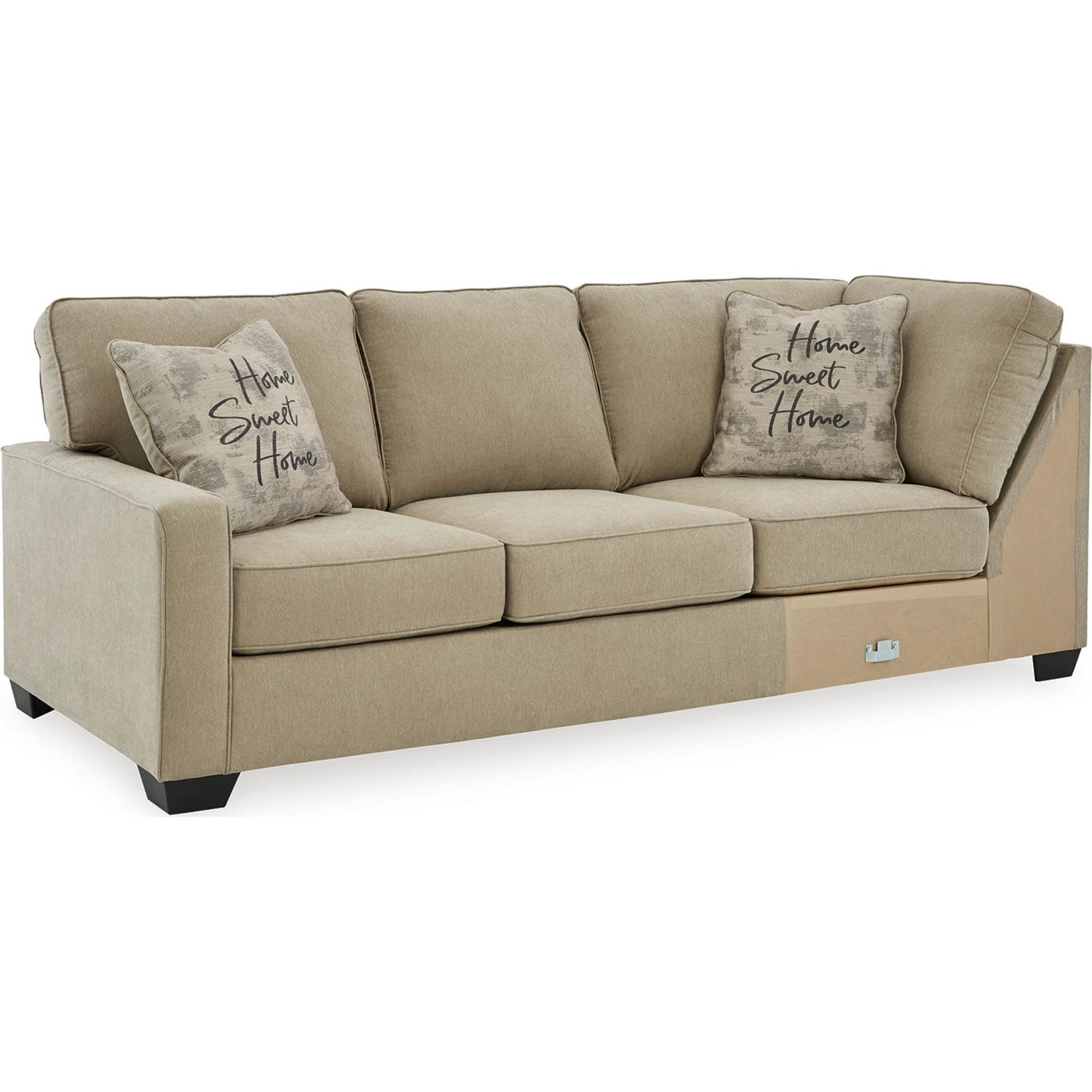 Le canapé d'angle Lucina est la pièce maîtresse de tout espace résolument décontracté. Revêtu d'un doux tissu en microfibre, doté d'accoudoirs droits et de coussins d'assise passepoilés, il est agrémenté de charmants coussins décoratifs qui parachèvent son ambiance relax.