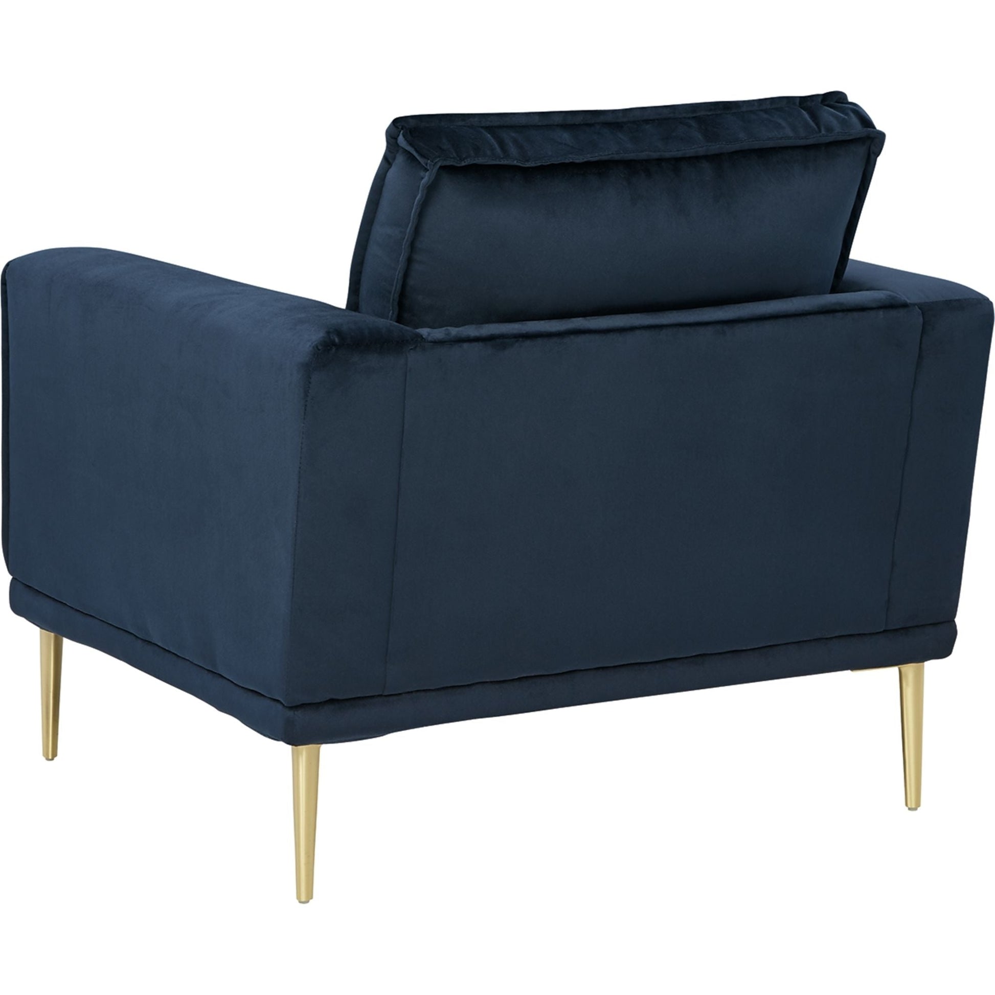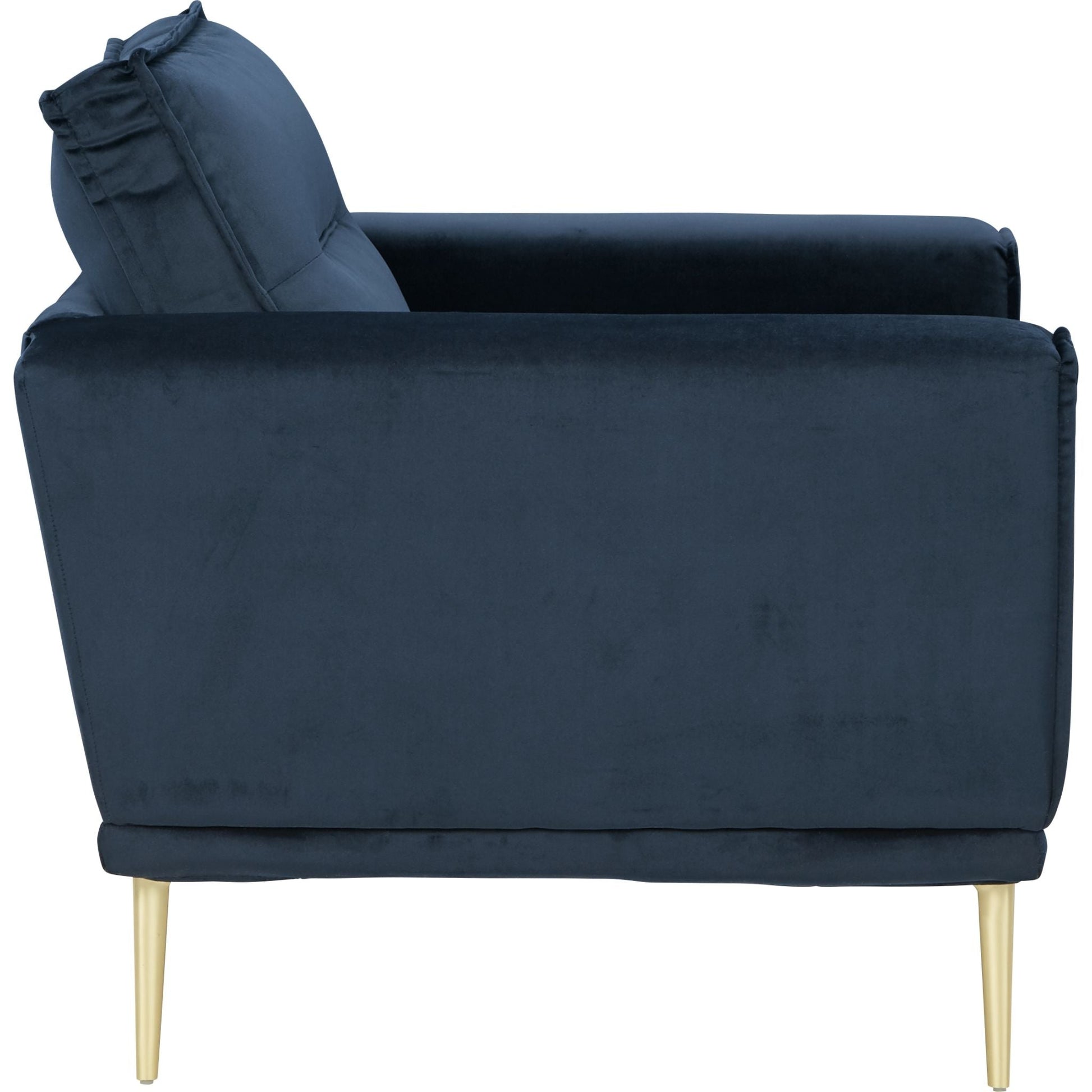 Apportez une touche de modernité à votre intérieur ou votre bureau avec le fauteuil Macleary. Son design épuré et linéaire, d'un bleu marine classique, s'intègre harmonieusement à tout espace raffiné. Revêtu d'un polyester doux au toucher et doté d'un pied en métal finition laiton, ce fauteuil insuffle à votre décoration une élégance résolument contemporaine.