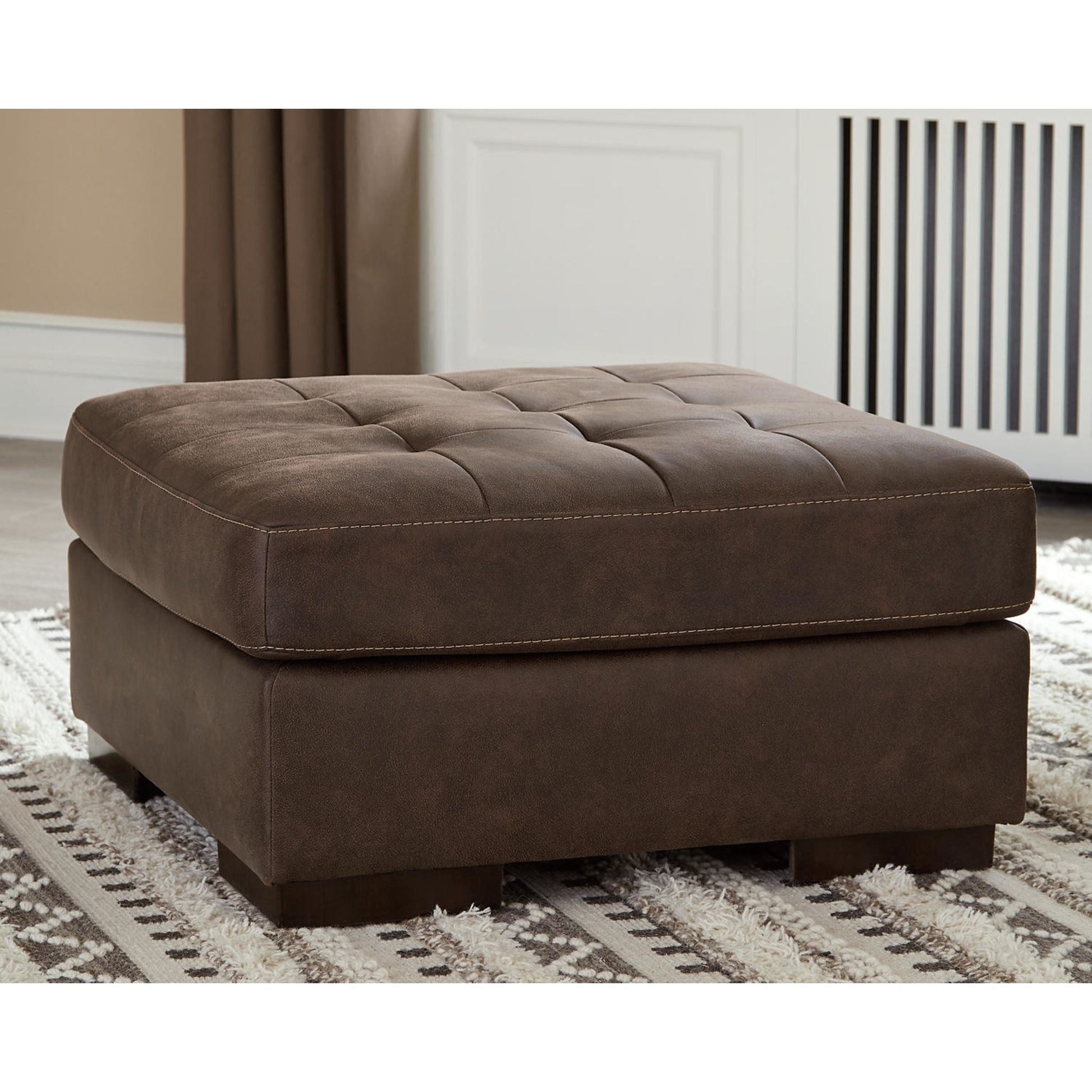 Si vous rêvez d'un style luxueux à prix abordable, laissez-vous séduire par le pouf surdimensionné Maderla couleur noyer. Conçu pour imiter à la perfection le cuir véritable, il est revêtu d'un similicuir pratique aux nuances naturelles et au toucher doux. Ce pouf d'appoint, orné de surpiqûres apparentes, de détails capitonnés et de larges pieds massifs, apporte une touche de modernité et d'élégance qui ravira les amateurs de décoration contemporaine.