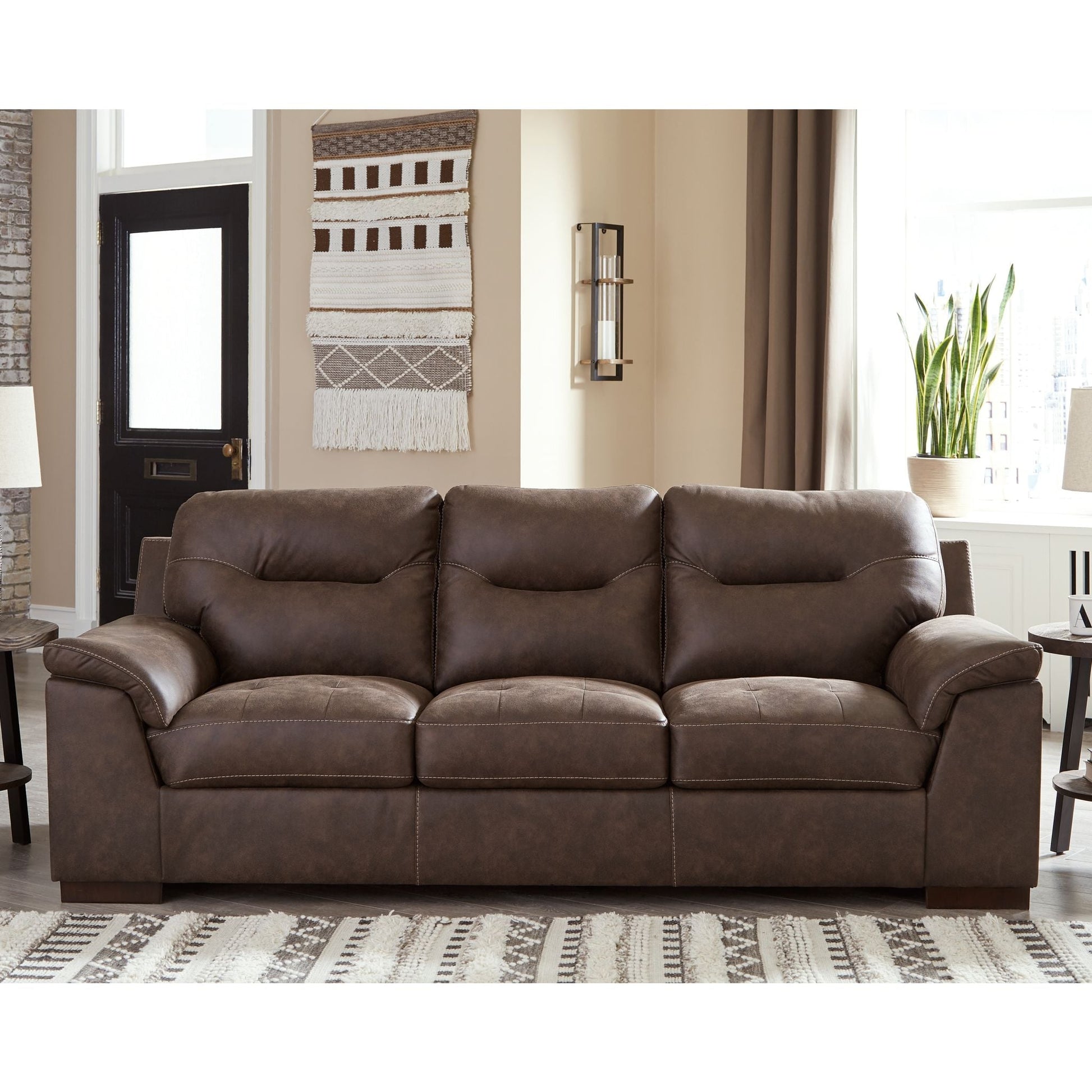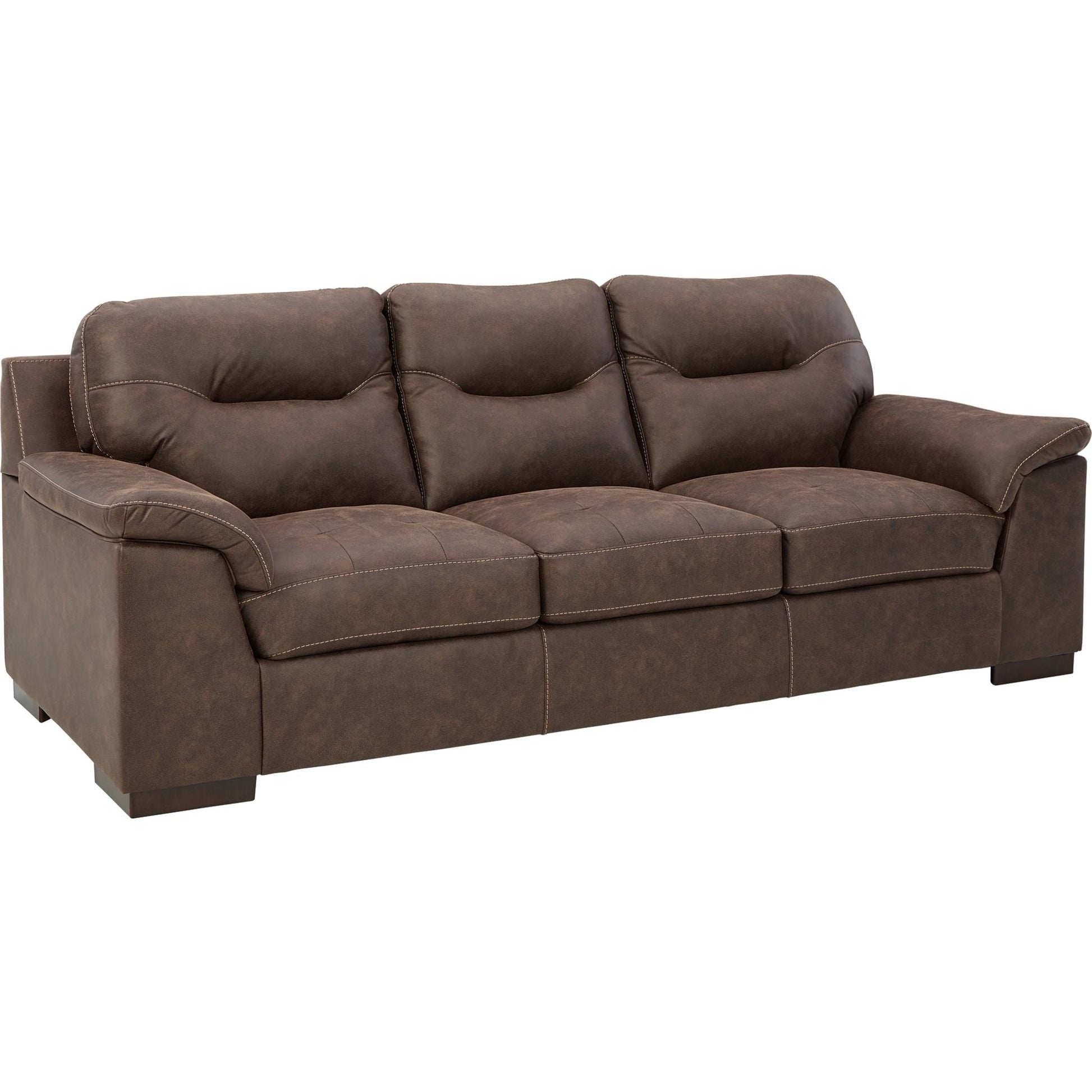 Si vous rêvez d'un style luxueux à prix abordable, laissez-vous séduire par le canapé Maderla couleur noyer. Conçu pour imiter à la perfection le cuir véritable, il est revêtu d'un similicuir pratique aux nuances naturelles et au toucher doux. Répondant à un goût contemporain, ses surpiqûres apparentes, son capitonnage et ses accoudoirs moelleux offrent un confort absolu, tandis que son design épuré sublime une esthétique haut de gamme idéale au quotidien.