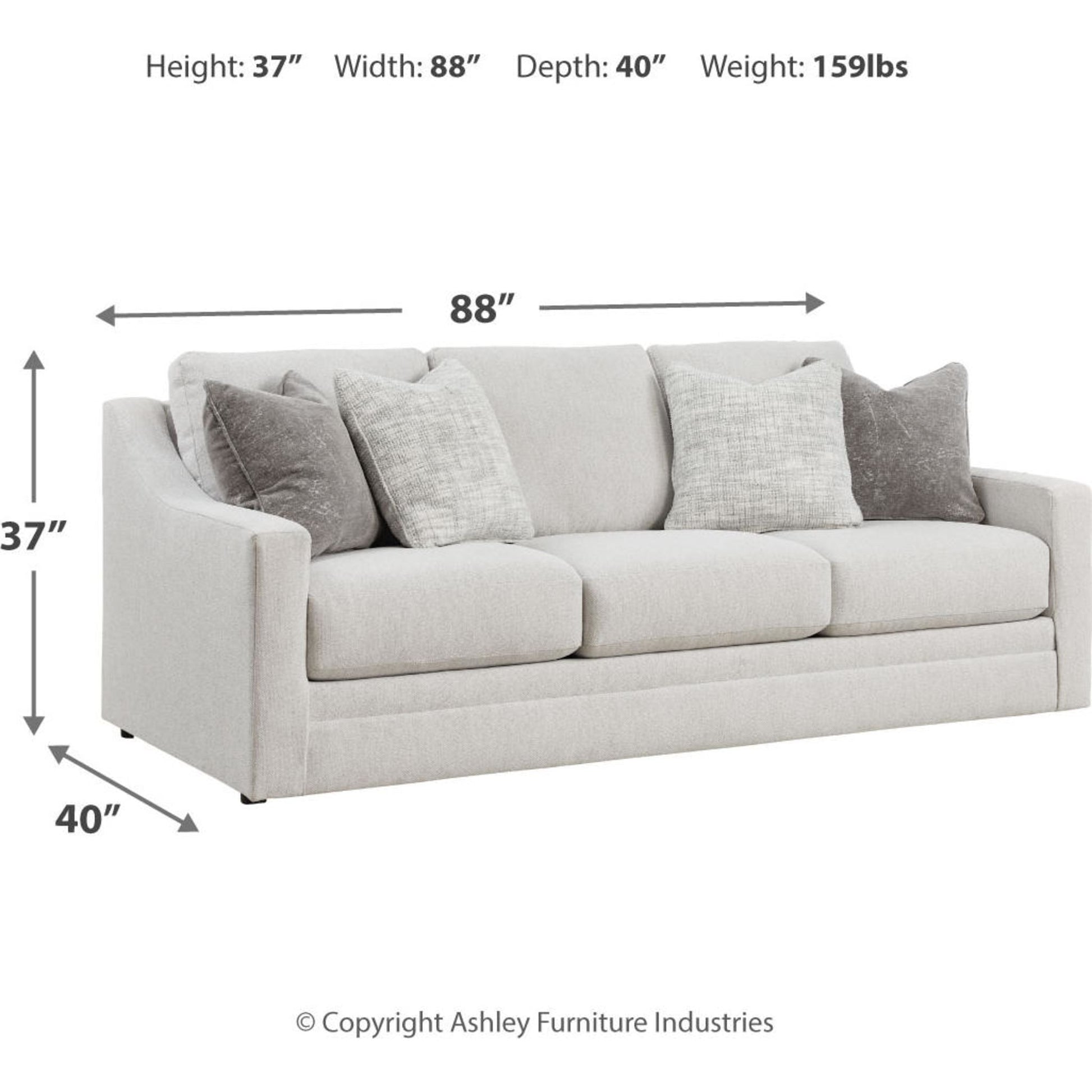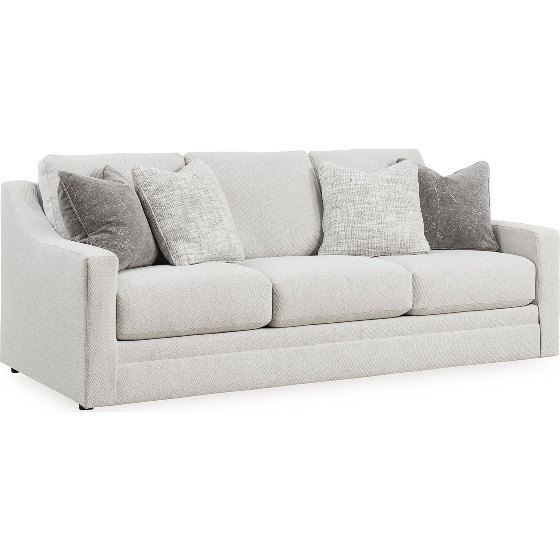 Des lignes épurées et une silhouette élancée définissent le style architectural du canapé Maitelynn. Des coussins texturés aux couleurs complémentaires apportent un contraste subtil, tandis que des coussins réversibles et moelleux invitent à la détente absolue.