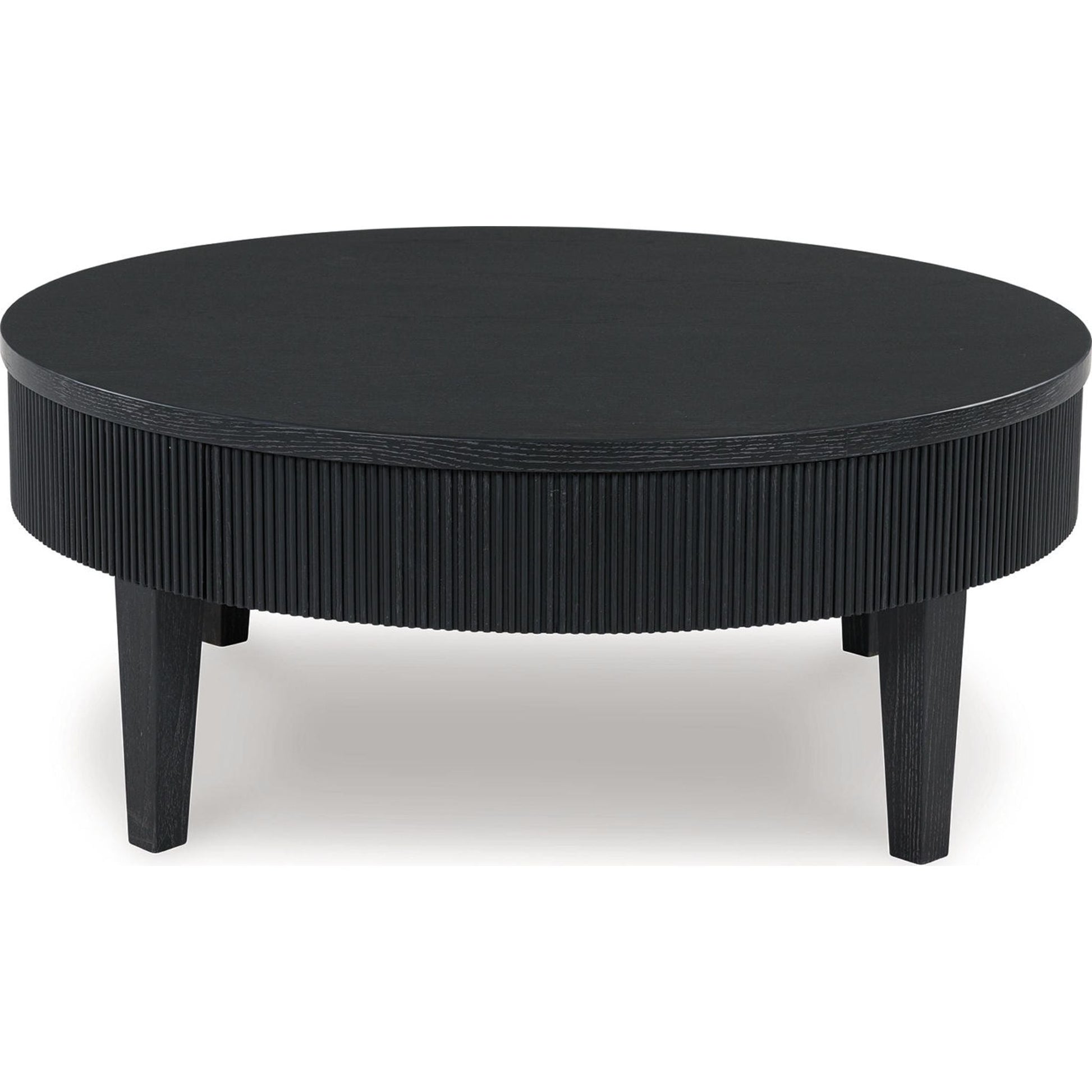 Classique et élégante en gris anthracite, la table basse Marstream apporte une touche de modernité et de praticité à votre salon. Besoin de rangement ? Son élégant plateau cannelé dissimule un tiroir idéal pour les télécommandes, manettes et autres accessoires multimédias. Un mariage parfait entre style et fonctionnalité.