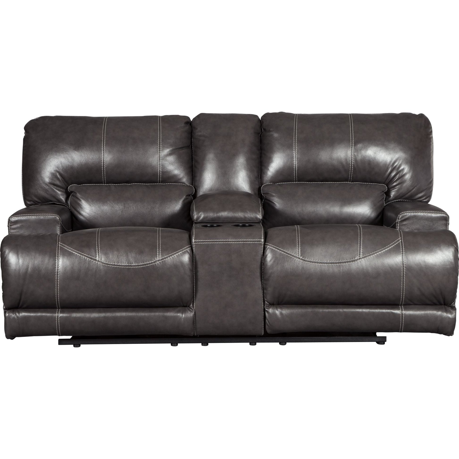 Installez-vous confortablement dans le canapé inclinable McCaskill et laissez-vous séduire par son confort exceptionnel. Ses assises extra-larges et son rembourrage moelleux offrent un confort divin. Revêtu d'un mélange somptueux de cuir et de similicuir, il vous procure une expérience luxueuse, à un prix avantageux sans compromis sur le style. Des surpiqûres apparentes, des accoudoirs aux lignes épurées et une teinte grise passe-partout ajoutent une touche d'élégance. Gardez vos boissons et télécommandes à portée de main grâce à la console centrale et aux porte-gobelets.
