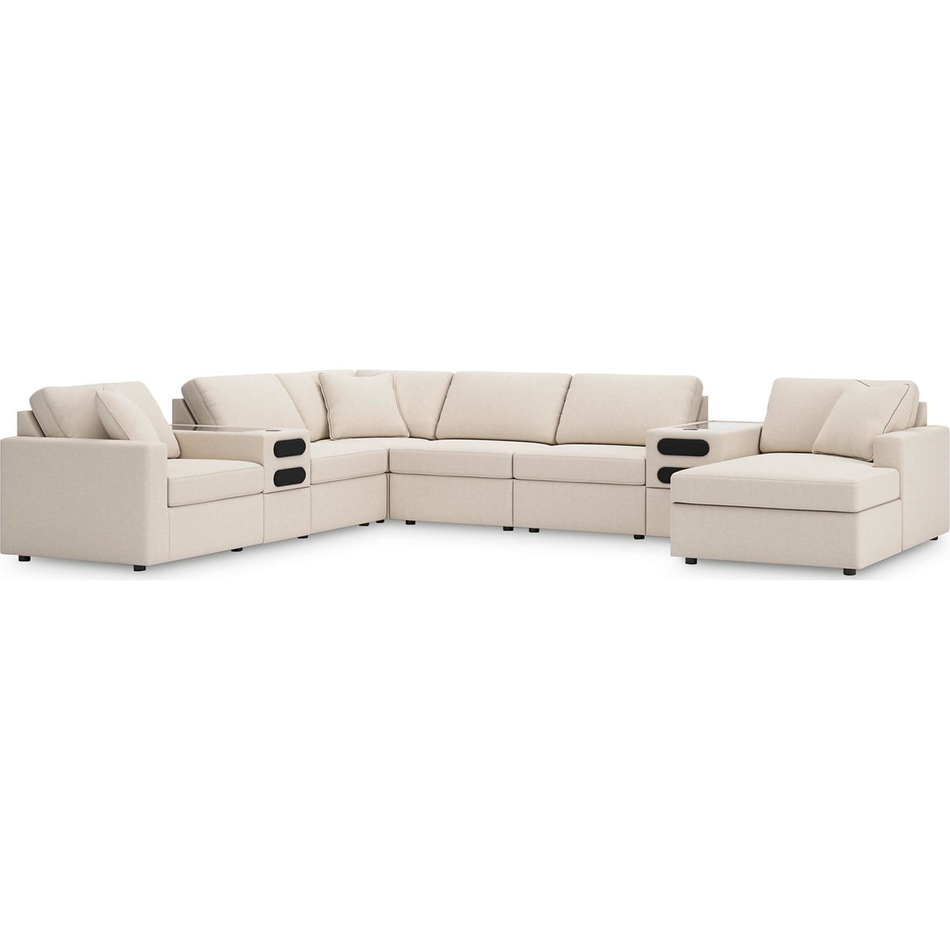 Canapé d'angle modulaire Modmax 8 pièces avec méridienne et consoles audio